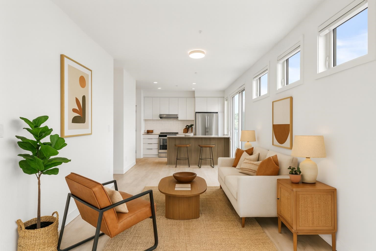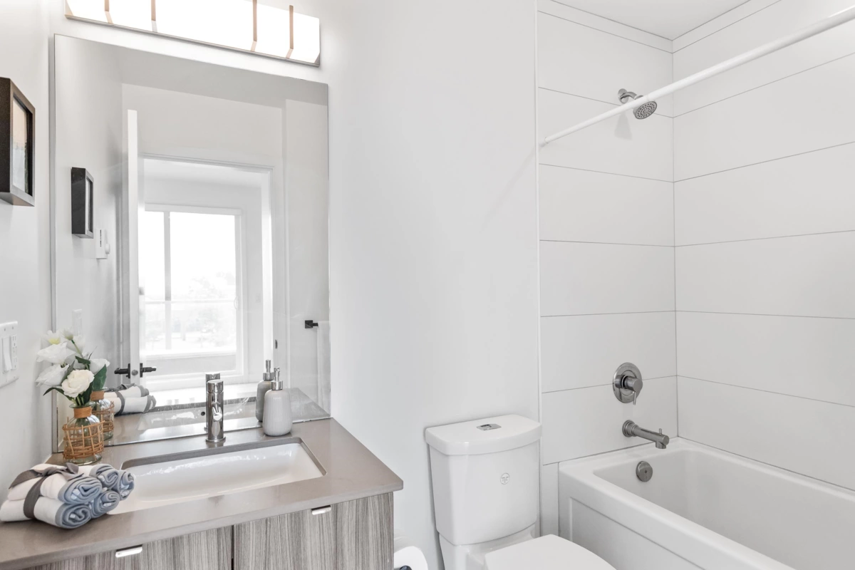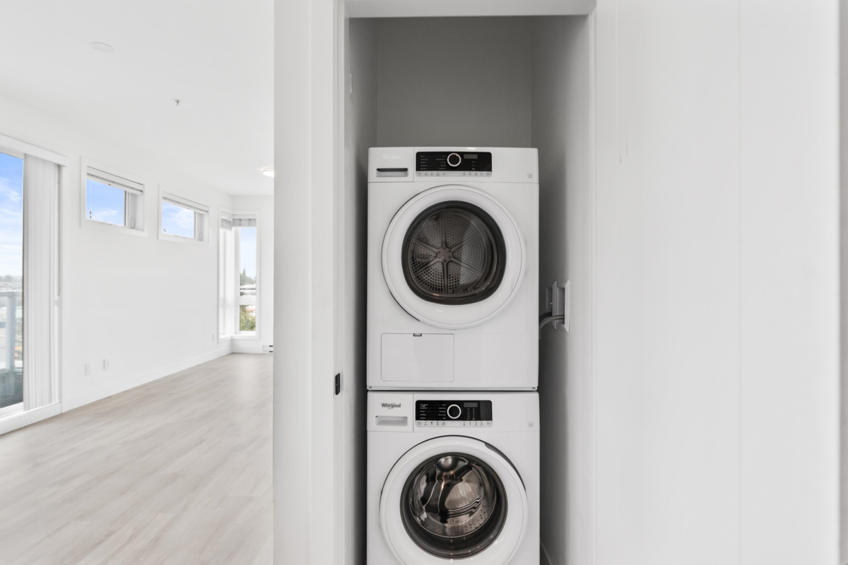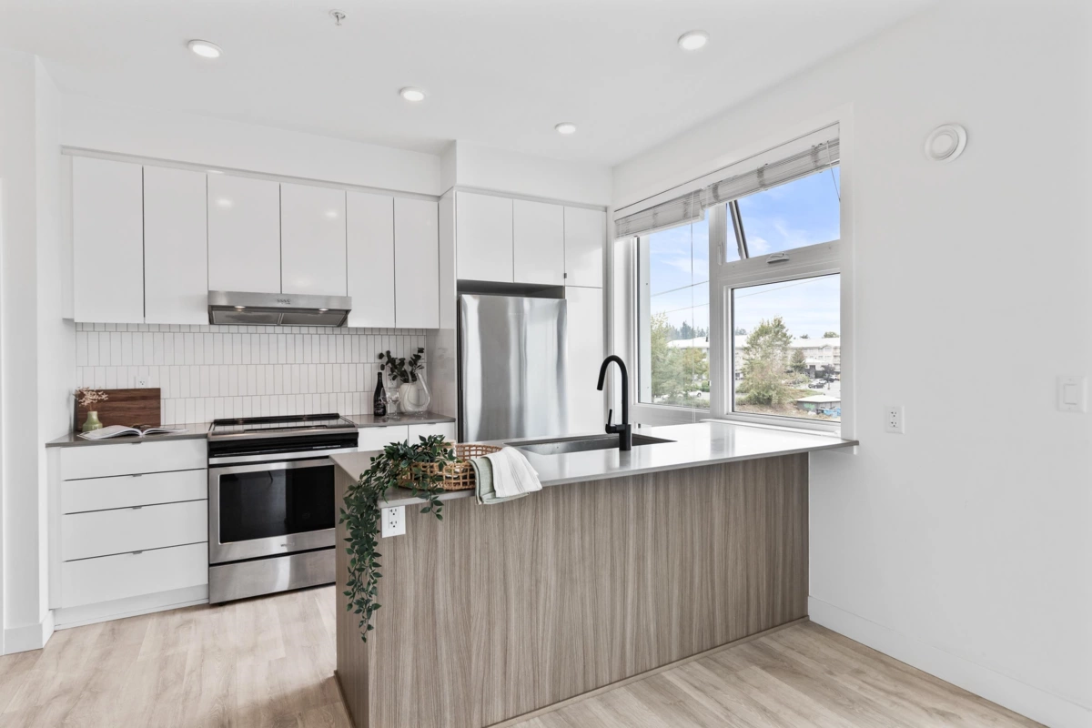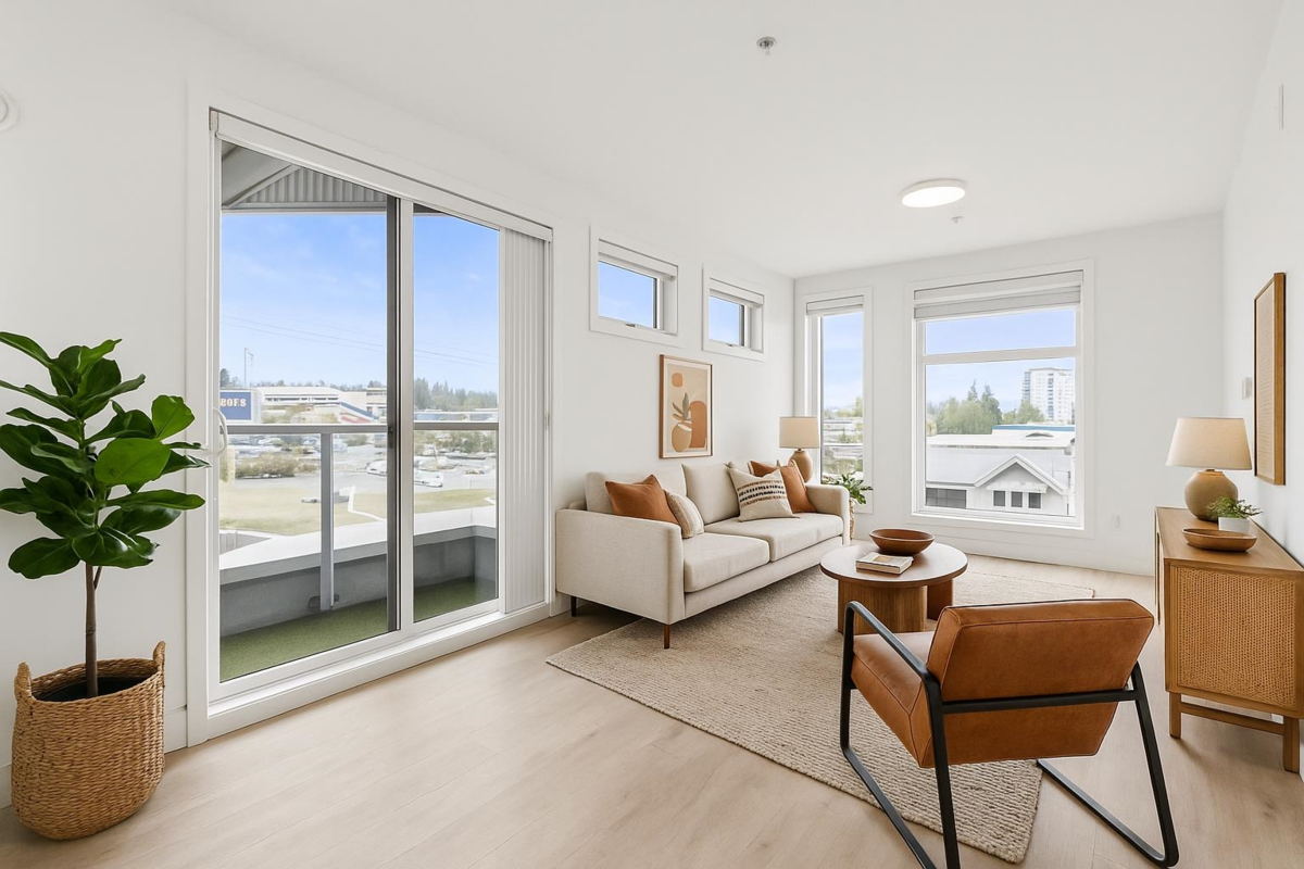 Light-filled and stylish, this Scandinavian-inspired corner condo pairs contemporary design with a prime location. Wide-plank floors and large windows flood the space with natural light, while a Juliette balcony adds fresh air. The kitchen shines with Fisher & Paykel + Whirlpool appliances, quartz counters, and an eating bar. Enjoy in-suite laundry, a versatile pantry/closet, spacious entry, and a quality primary closet organizer. COURT WEST allows 2 pets and offers a massive courtyard with movie nights, shared EV chargers, secure bike room, 1 parking stall, and a large locker—steps to Seven Oaks Mall, Superstore, Trading Post Brewing, Cora’s, transit, and minutes to Mill Lake Park. QUICK COMPLETION POSSIBLE