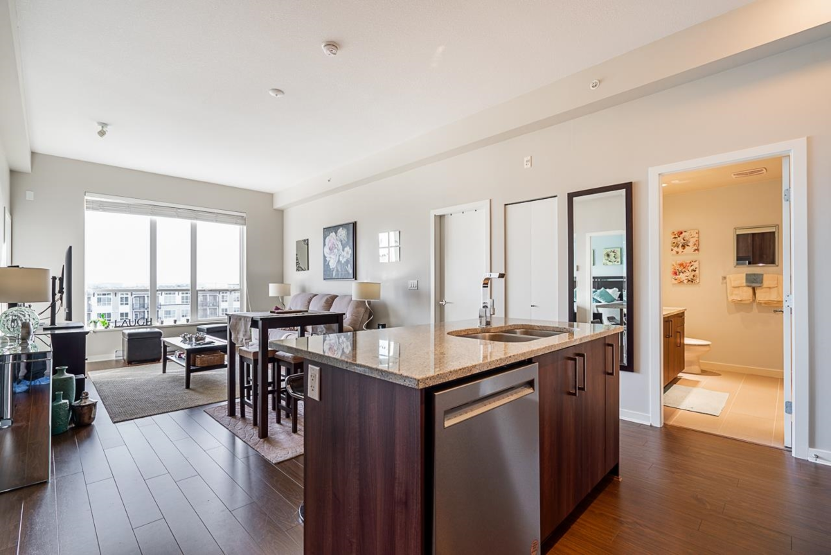 Welcome to Waterstone, where convenience meets luxury & everyday feels like a vacation! On the market for the first time, this TOP FLOOR, CORNER unit comes with 2 bedrooms, 2 bathrooms, 2 PARKING STALLS, soaring 10 ft ceilings, a MASSIVE WRAP AROUND deck, & UNOBSTRUCTED VIEWS of Mt. Baker. Thoughtfully designed, the open-concept layout maximizes nearly 900 square feet of beautifully finished living space. You'll also have access to the exclusive Waterstone amenity centre complete with 17 seat theatre, indoor pool, dry & steam saunas, fully equipped fitness centre, chef's kitchen & more! You'll find the Willowbrook Mall, shops, restaurants & future SKYTRAIN nearby as well as quiet walking trails that wander through the community. Ask you agent to book a private showing.