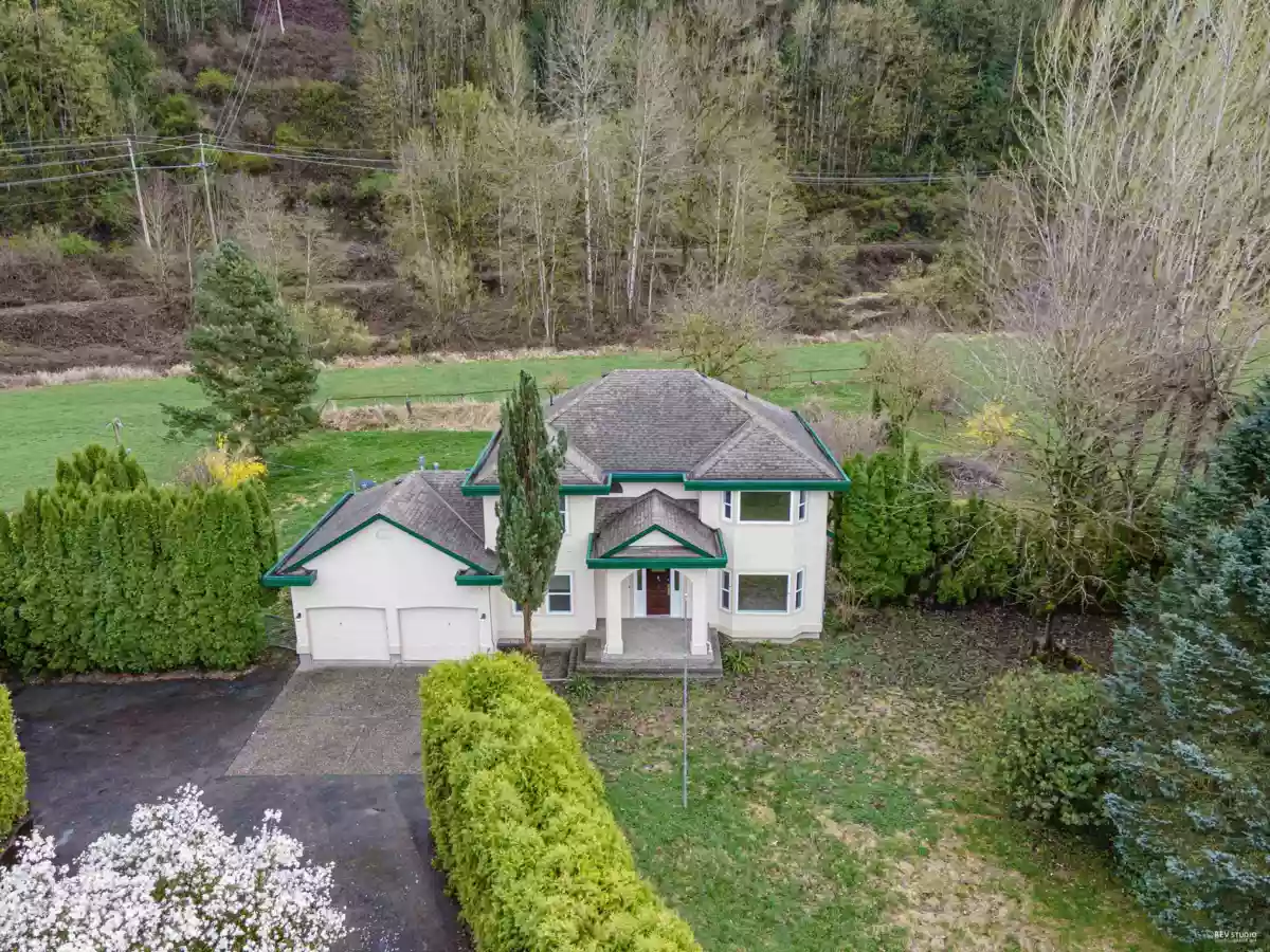 Make this your home and call yourself a true landlord. This property boasts 4.85 acres land nestled at the base of a mountain, adorned with a tranquil stream. Featuring a spacious interior exceeding 2500 sq ft, it offers versatile living arrangements, potentially accommodating 5 bedrooms (if convert the large office on main floor into a bedroom & walk-in closet upstairs into a baby room). Custom built home with recent updates, such as water tank, roof, laminate flooring and windows. Easy access to Highway 1, Close to water park, Cultus lake.