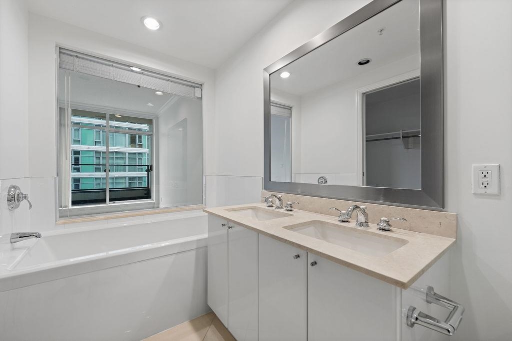 Bright South facing 2 Bedroom plus a Den. Never been lived in. The bedrms are located on opposite sides, and both have ensuites. The primary bedrm has a big walk-in closet, a spa like 5-piece ensuite and its own balcony. The spacious balcony off the living room offers 255 sq.ft. of sunny outdoor space. This home has new carpet in the bedrooms and a new SMEG fridge. The kitchen also features a Bosch dishwasher, oven and gas cook top. You will enjoy the carefree lifestyle of living steps to recreation, shopping, restaurants, Sea bus and the waterfront. Atrium has a 3,000 sq.ft amenity room for drop in or larger gatherings, featuring a full kitchen, games & lounge areas. Atrium owners also enjoy use of the fitness centre next door with its gym, whirlpool, indoor lap pool, steam room & sauna.