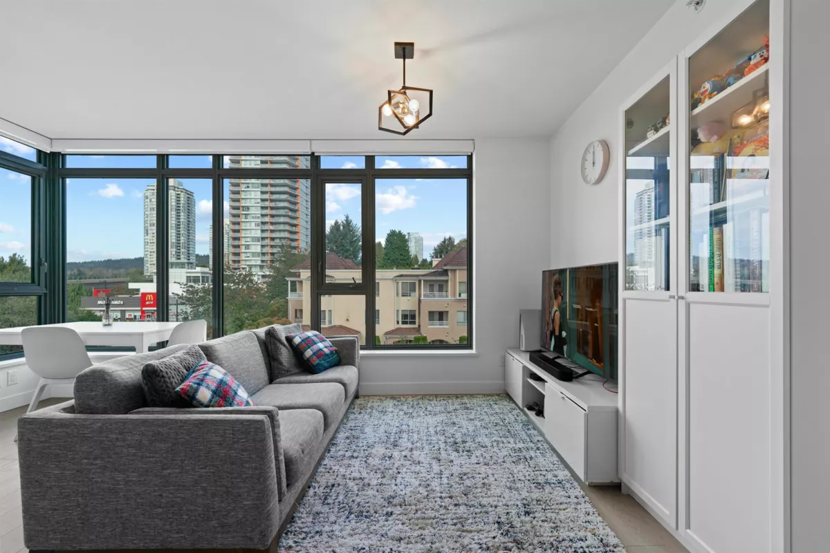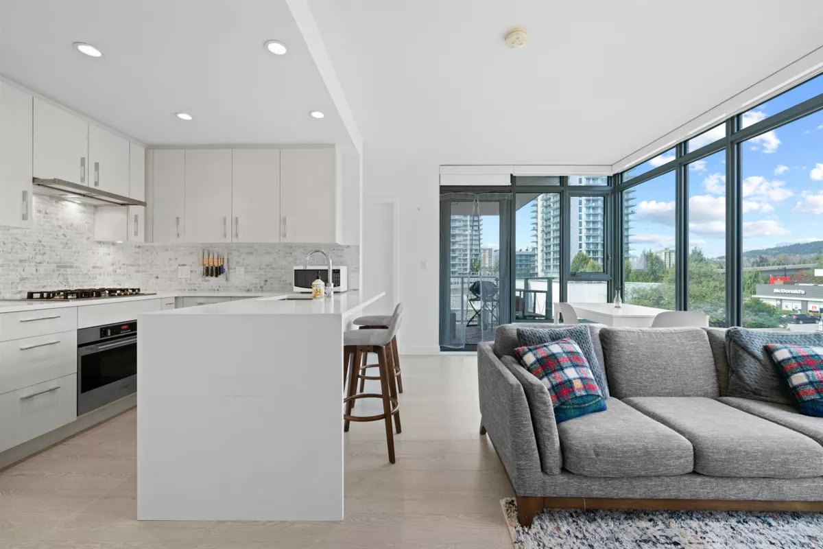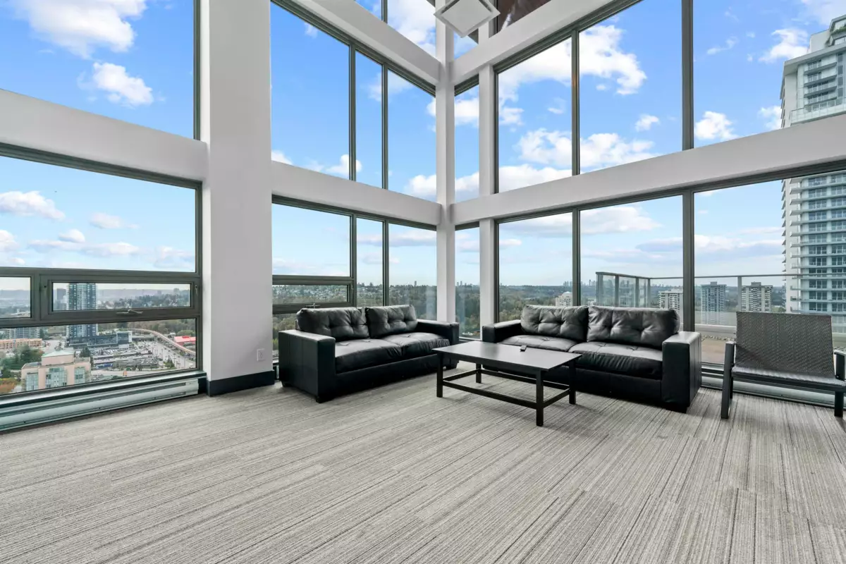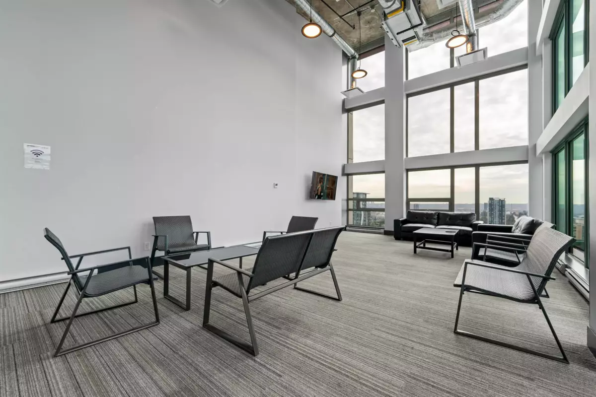 Welcome to the UNION, a boutique style high rise at the crossroads of Burnaby and West Coquitlam. This residence is ideally located for commuters, situated just one block away from the Skytrain, Hwy 1 & Lougheed Hwy. Step inside & fall in love w/ this 814 sq ft 2 bed 2 bath open concept floor plan with floor-to-ceiling windows that flood the space with natural light. Features include: gourmet kitchen, quartz countertops, gas cooktop & top-of-the-line appliances. Great bedroom separation - enjoy privacy in your ample-sized rooms, complete with a spa-like ensuite & walk-thru-closet. Amenities include a fully equipped fitness room, club house with pool table & table tennis, sky lounge for entertaining, club house and landscaped outdoor courtyard. Pets and rentals welcome. 1 parking included.