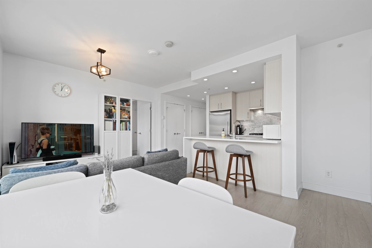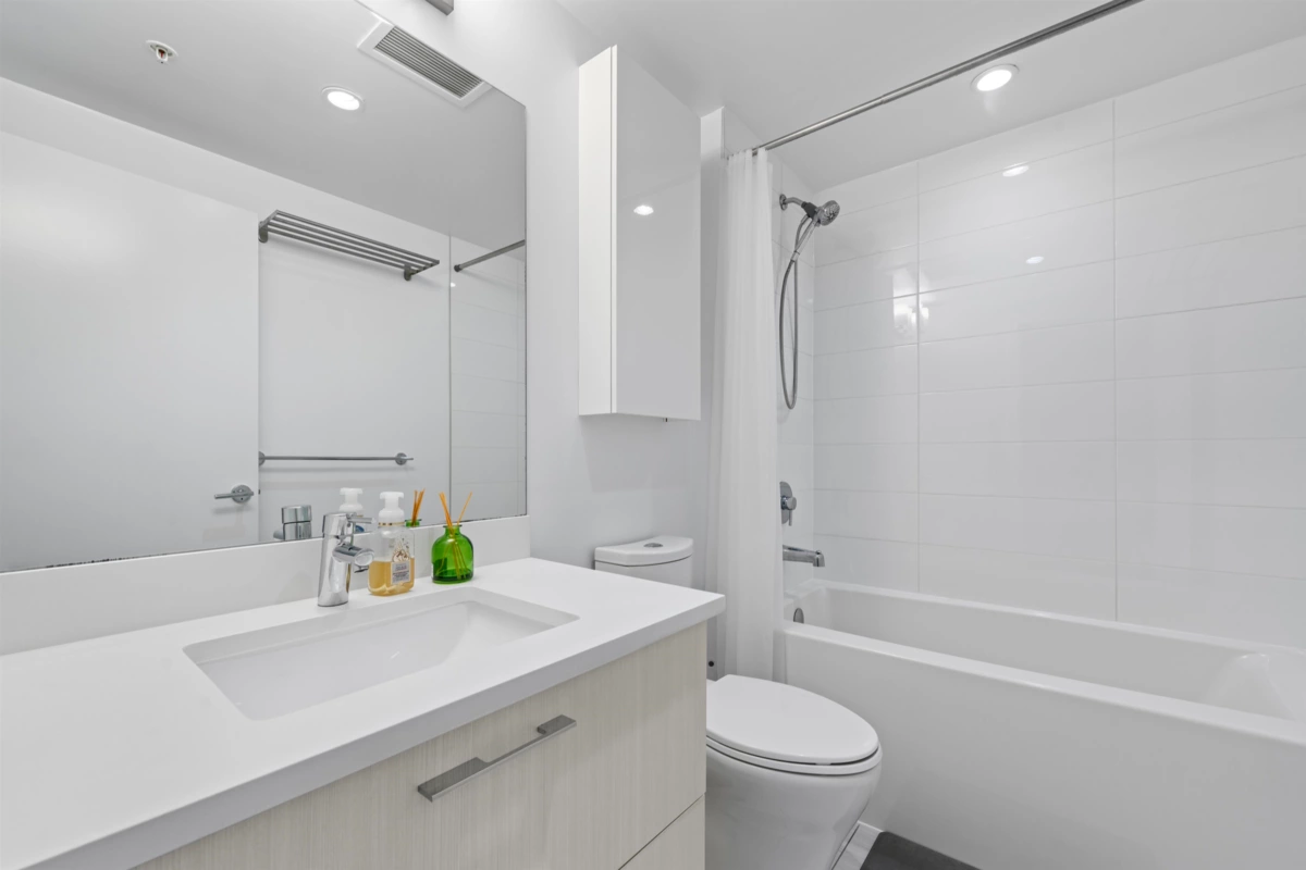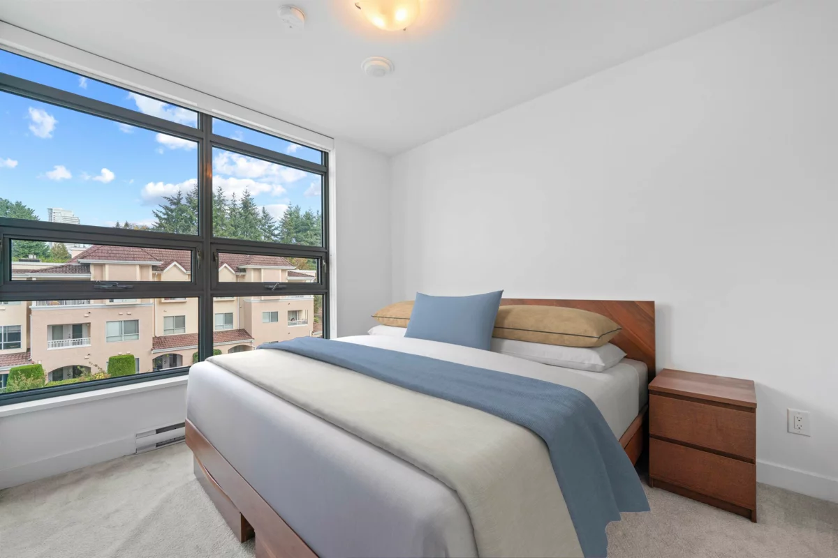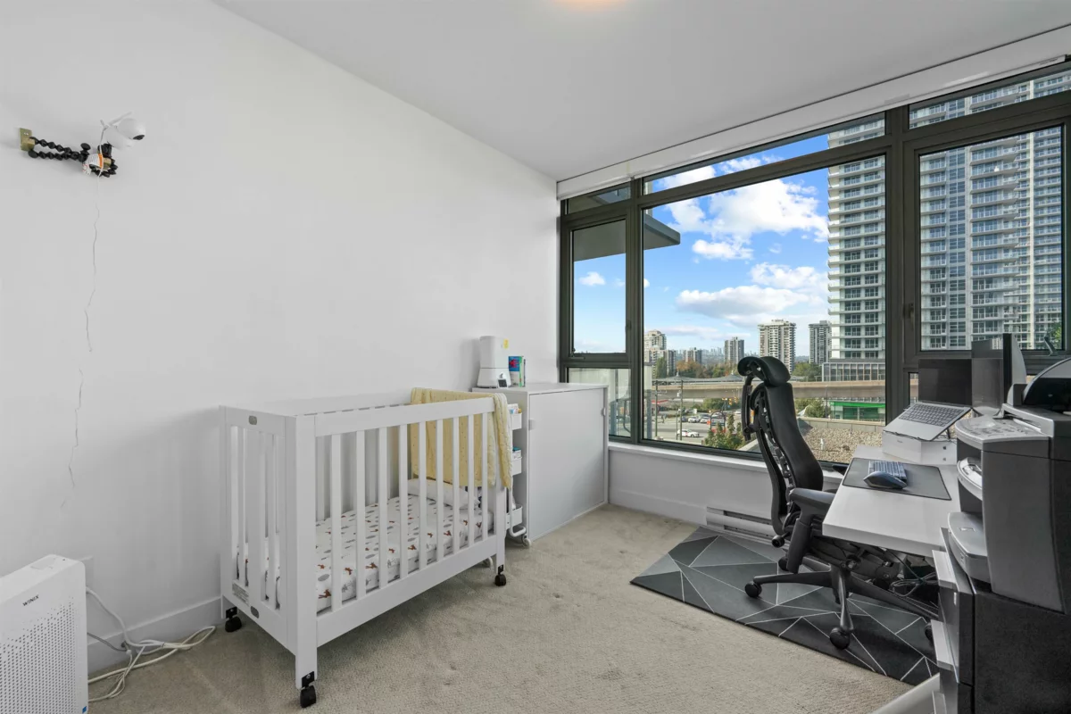 Welcome to the UNION, a boutique style high rise at the crossroads of Burnaby and West Coquitlam. This residence is ideally located for commuters, situated just one block away from the Skytrain, Hwy 1 & Lougheed Hwy. Step inside & fall in love w/ this 814 sq ft 2 bed 2 bath open concept floor plan with floor-to-ceiling windows that flood the space with natural light. Features include: gourmet kitchen, quartz countertops, gas cooktop & top-of-the-line appliances. Great bedroom separation - enjoy privacy in your ample-sized rooms, complete with a spa-like ensuite & walk-thru-closet. Amenities include a fully equipped fitness room, club house with pool table & table tennis, sky lounge for entertaining, club house and landscaped outdoor courtyard. Pets and rentals welcome. 1 parking included.