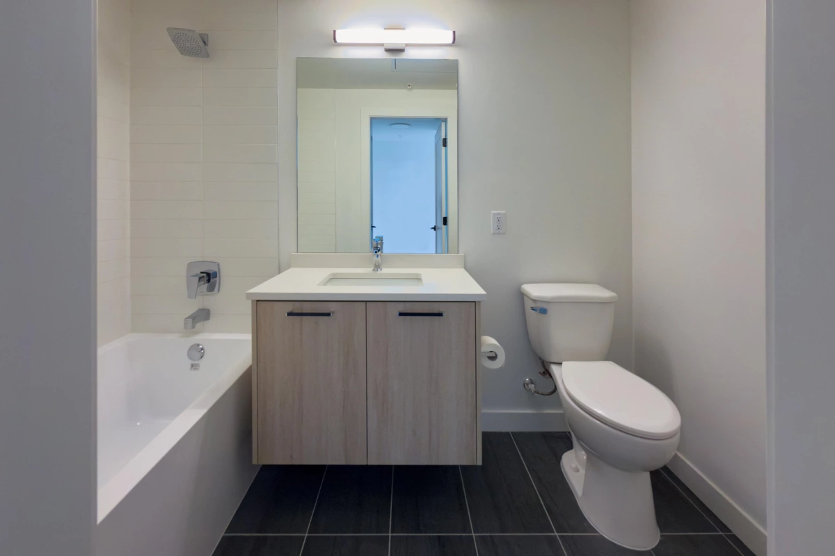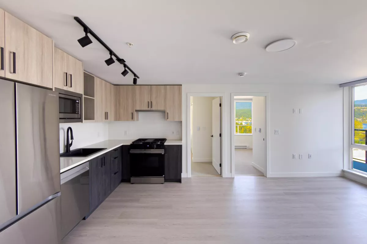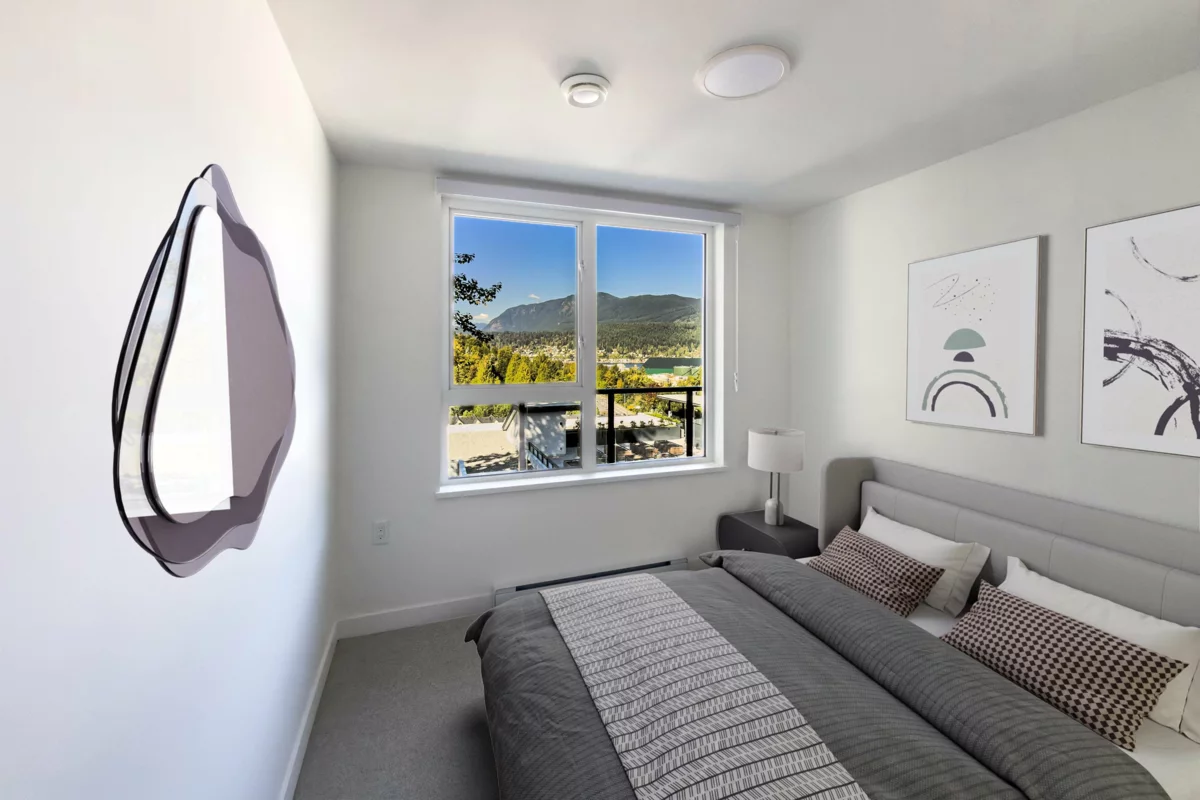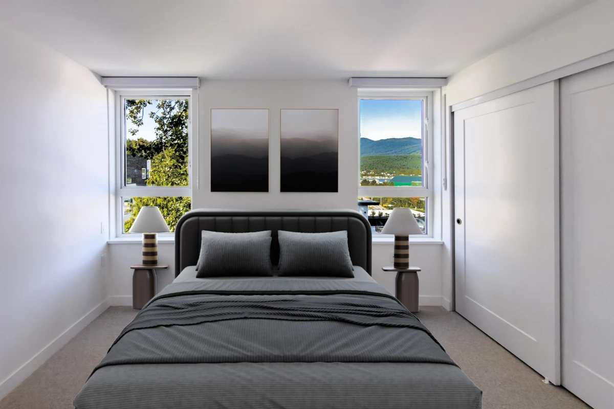 Mountain and water views, same-floor shared terrace access, and calm northeast exposure: this brand-new corner home at Anchor by Bold Properties brings together everything you want in one clear, modern design. Inside, 772 sq ft unfold with two bedrooms, two baths, and a modern kitchen with full-sized appliances and clean finishes. Unique to the 4th floor, residents enjoy convenient access to the shared terrace on the same level, plus another rooftop terrace above with panoramic views. A lounge, gym, and courtyard round out the amenities, with parking and storage adding daily ease. GST included. Virtually staged to inspire, this home is move-in ready. Book your private tour today.