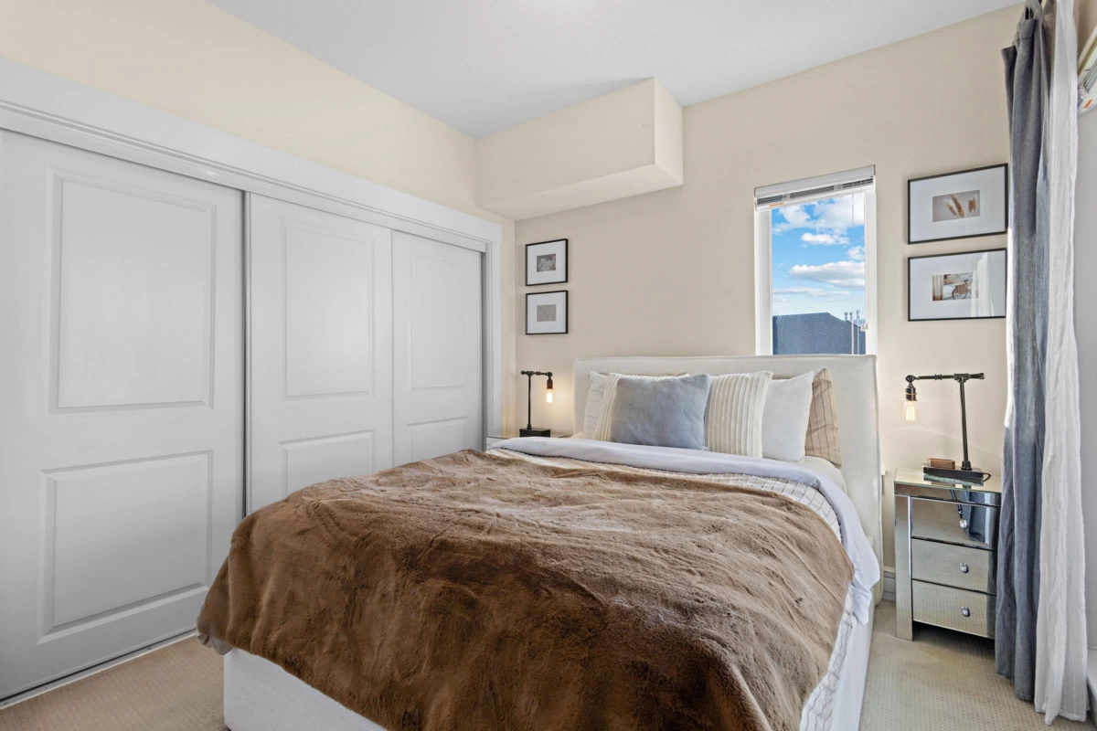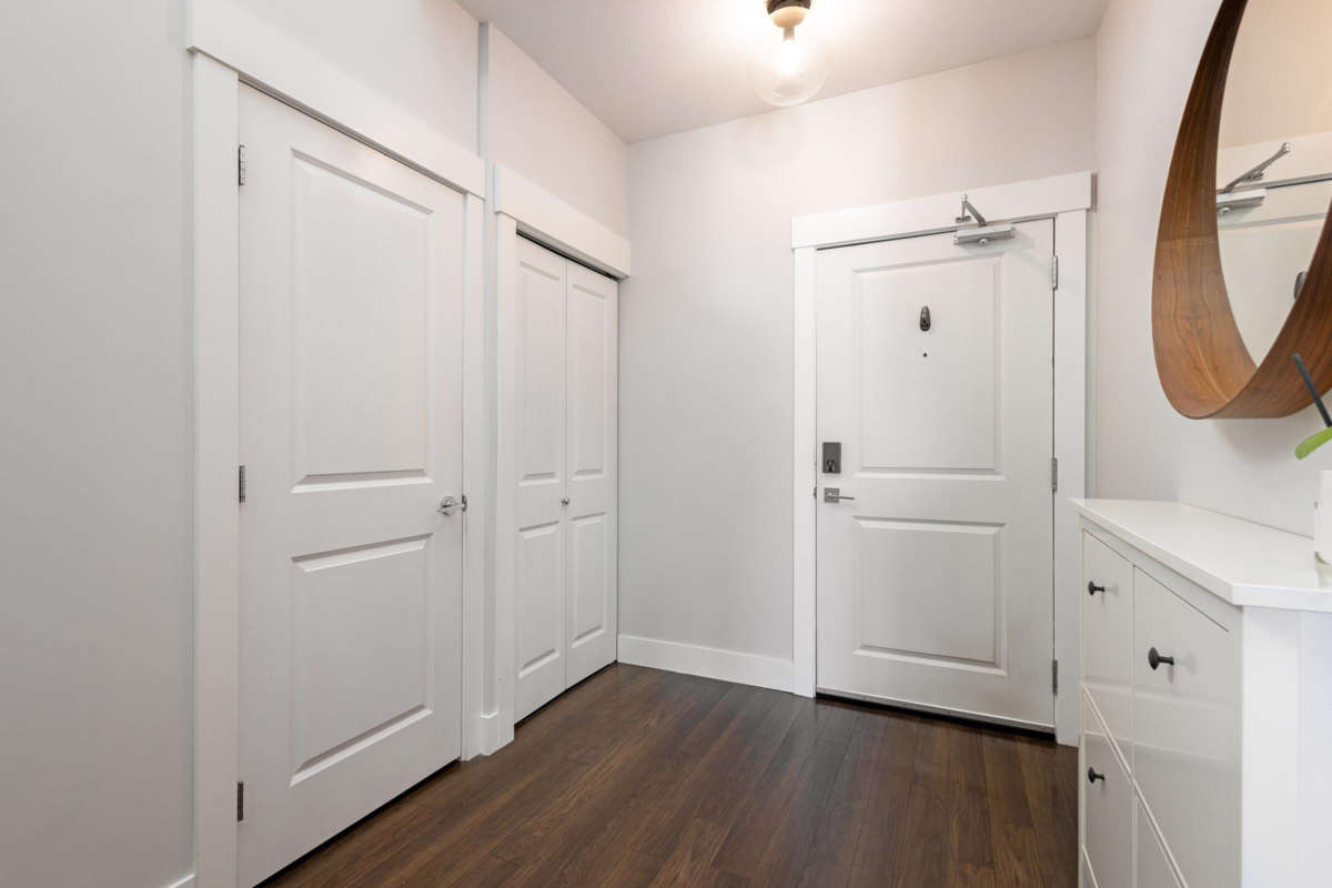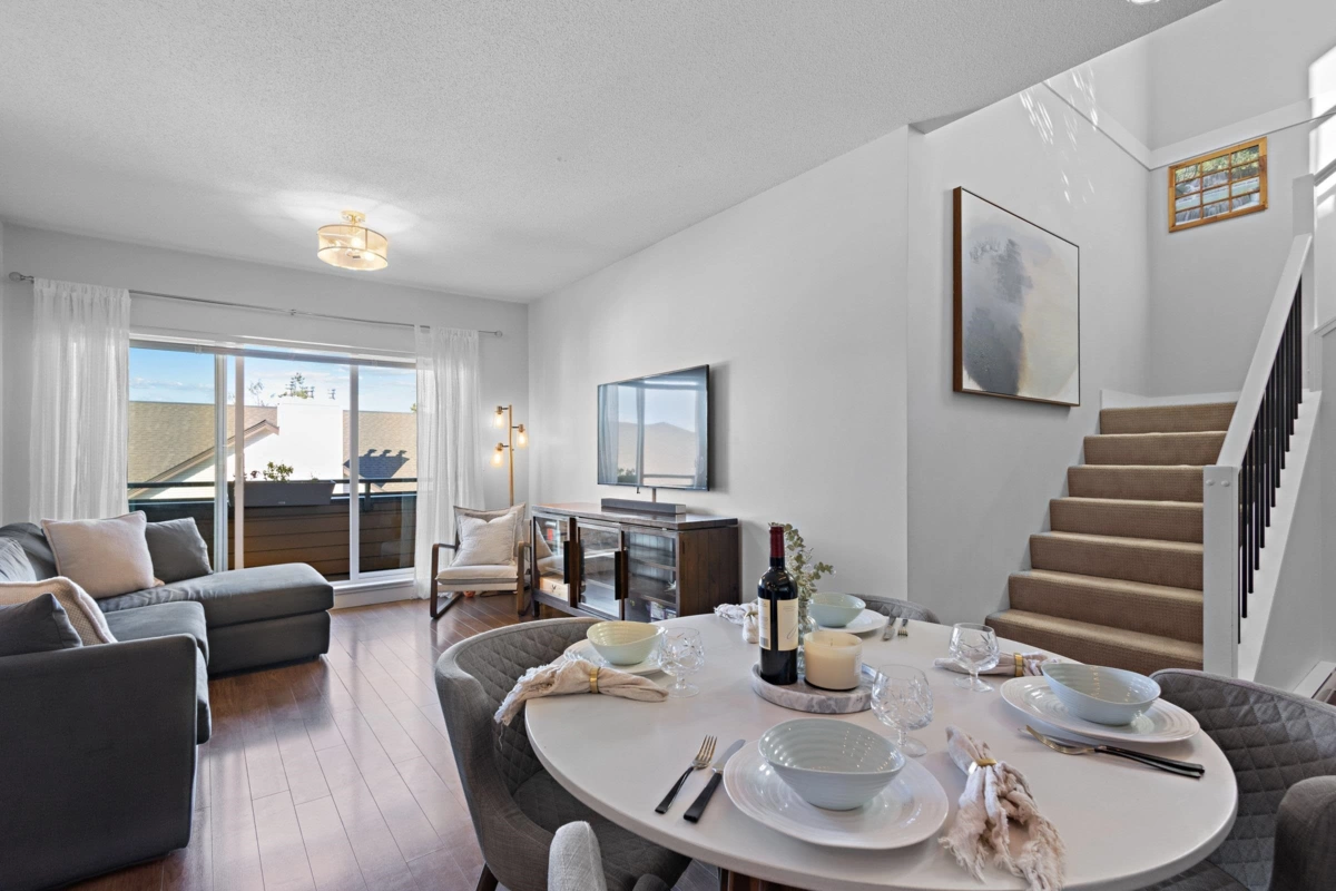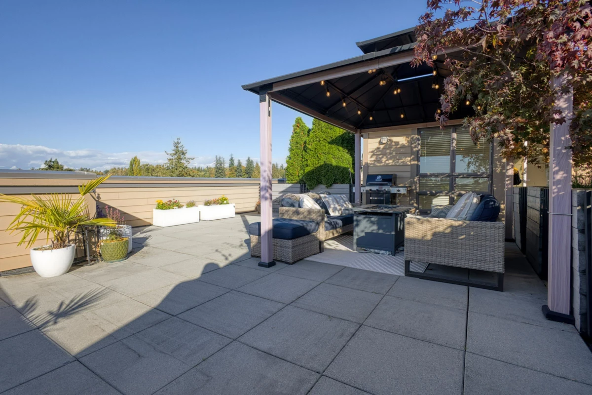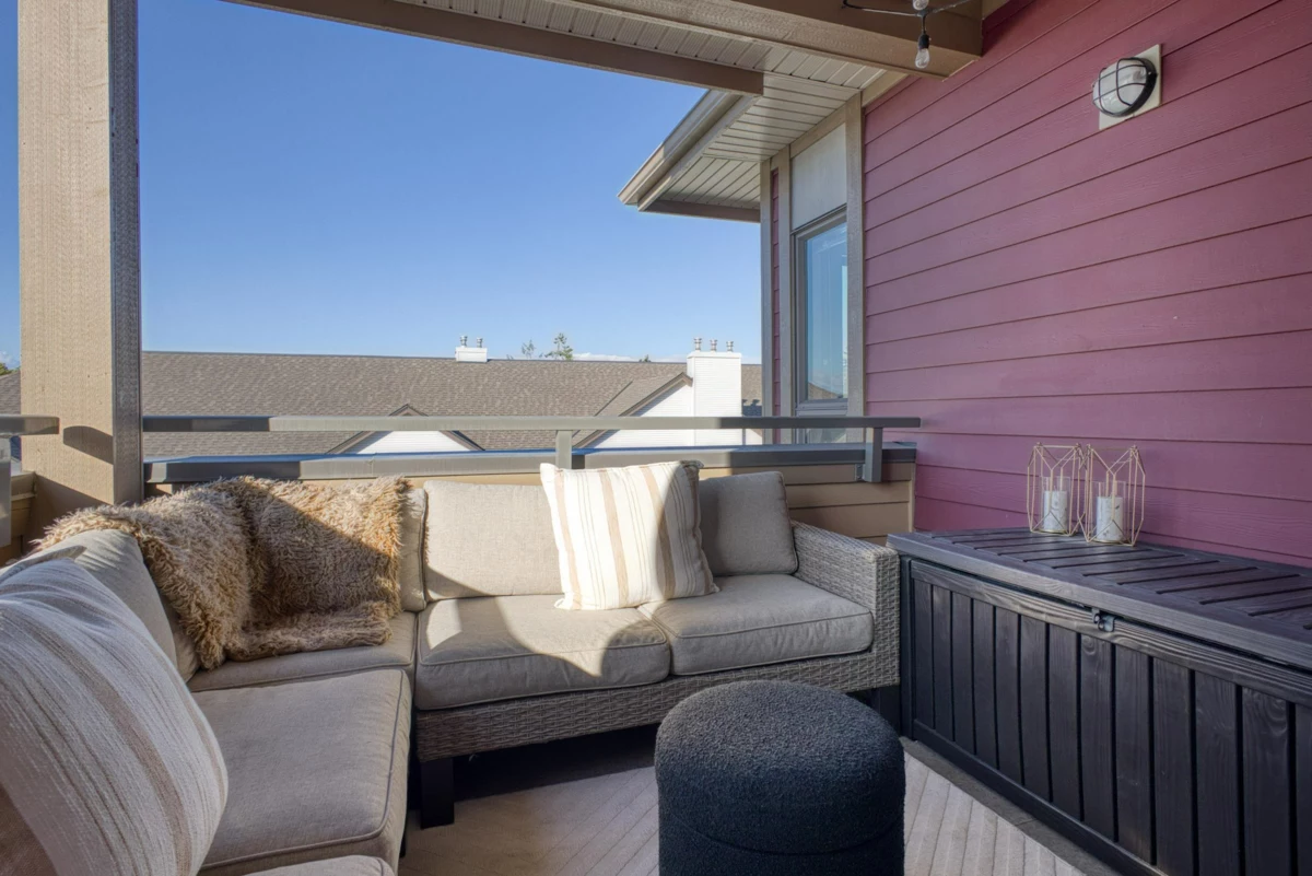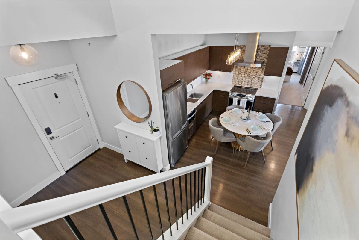 Spacious, bright and unique two level residence featuring 2 bedrooms and 2 full bathrooms. This home offers soaring ceilings, expansive windows and a abundance of natural light throughout. Thoughtfully curated from custom built-in closets, detailed bathroom features to generous in-suite storage and convenient same floor additional storage area. Enjoy 3 private outdoor spaces, including a spectacular rooftop patio with panoramic mountain views - perfect for entertaining, gardening, or just relaxing in complete privacy. Additional balconies extend your living space and invite indoor/outdoor living. Parking includes 2 underground side-by-side spots. Perfectly situated near the Cloverdale Core, Fairgrounds, Polytechnic University and future Hospital.
