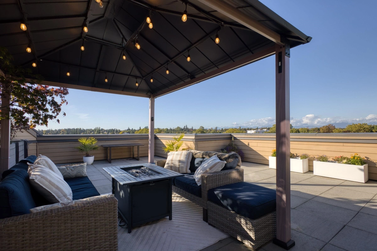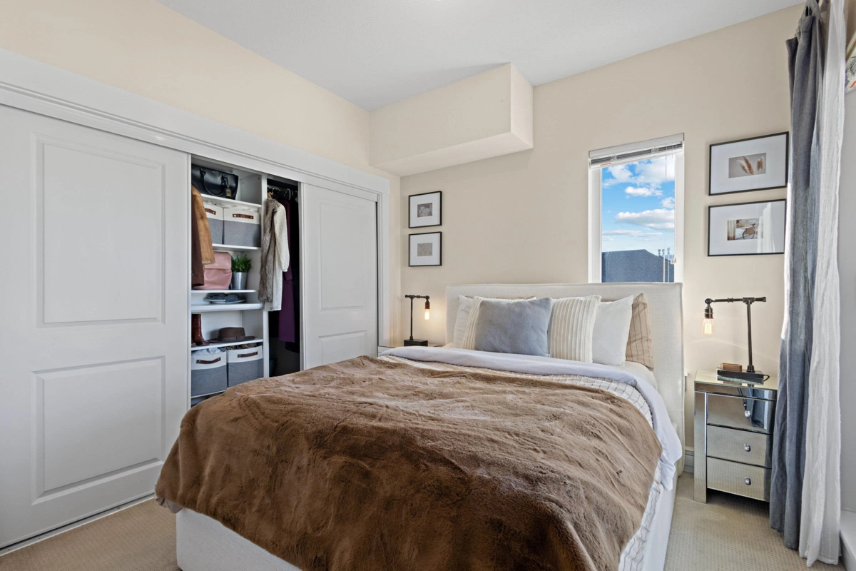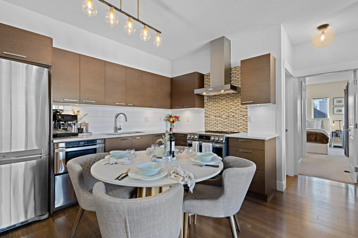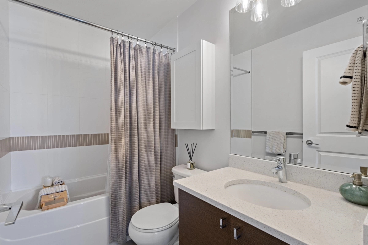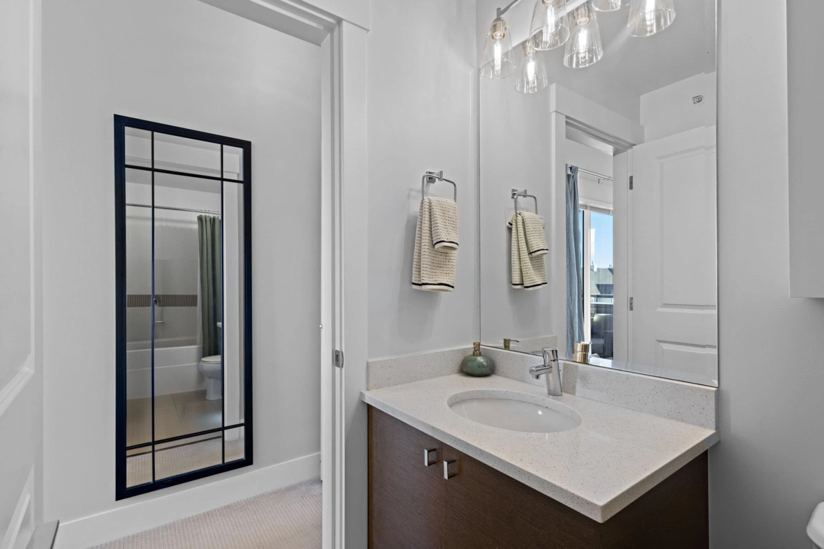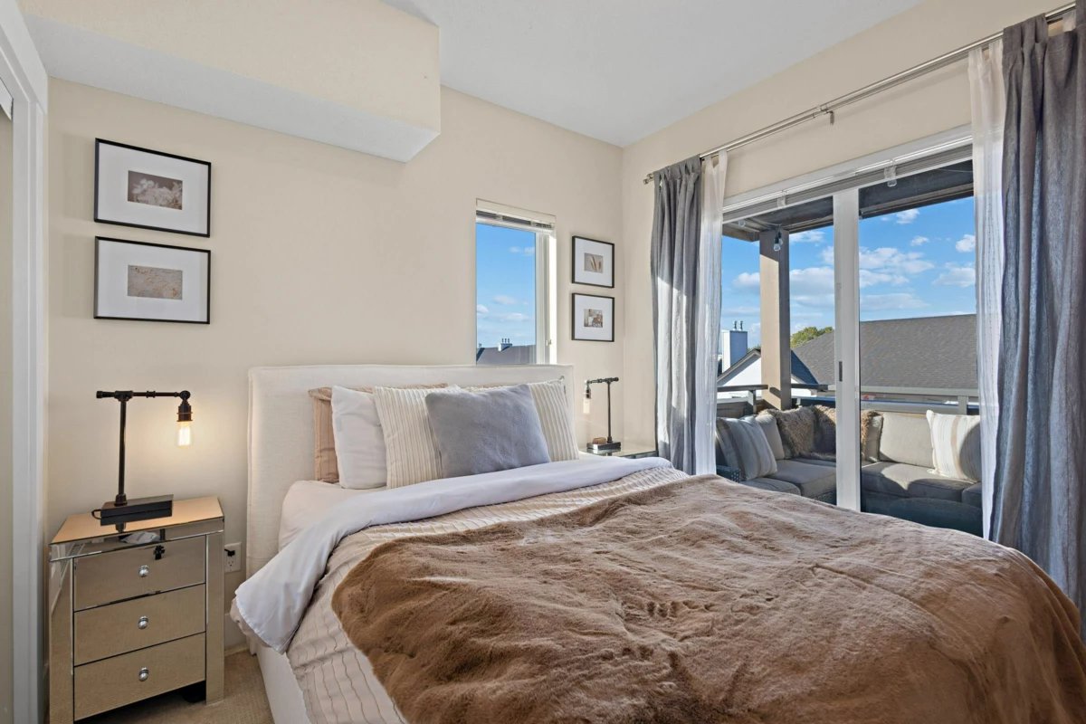 Spacious, bright and unique two level residence featuring 2 bedrooms and 2 full bathrooms. This home offers soaring ceilings, expansive windows and a abundance of natural light throughout. Thoughtfully curated from custom built-in closets, detailed bathroom features to generous in-suite storage and convenient same floor additional storage area. Enjoy 3 private outdoor spaces, including a spectacular rooftop patio with panoramic mountain views - perfect for entertaining, gardening, or just relaxing in complete privacy. Additional balconies extend your living space and invite indoor/outdoor living. Parking includes 2 underground side-by-side spots. Perfectly situated near the Cloverdale Core, Fairgrounds, Polytechnic University and future Hospital.