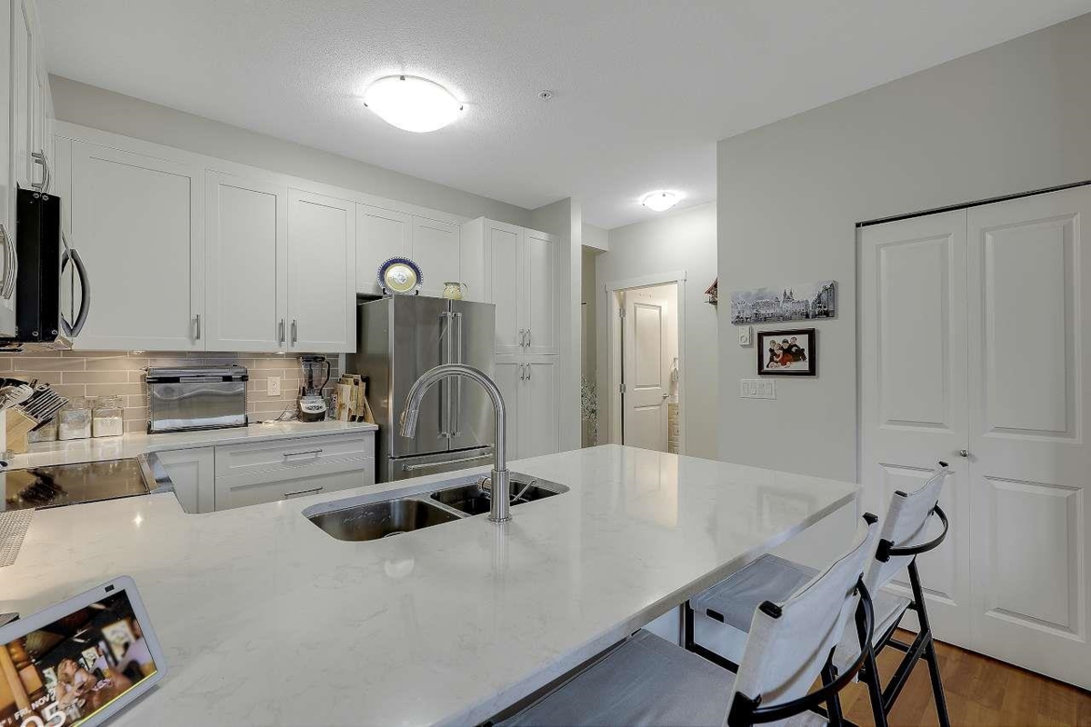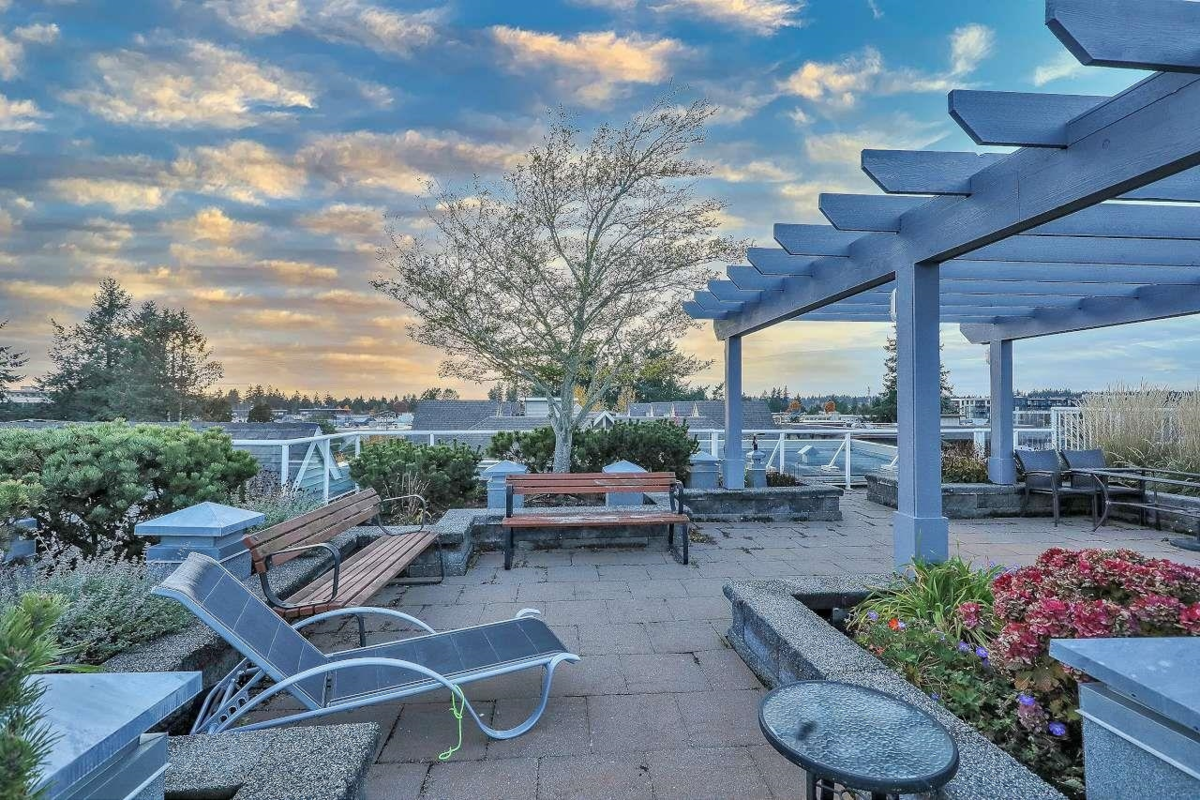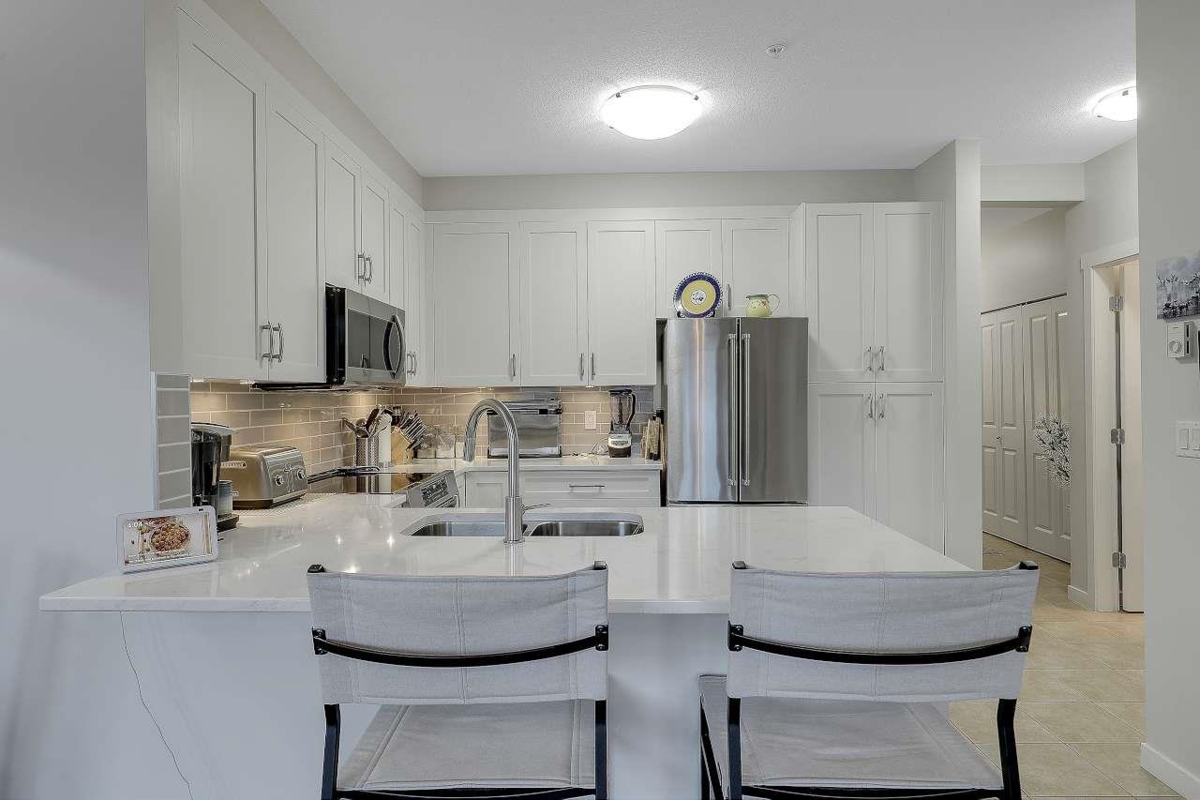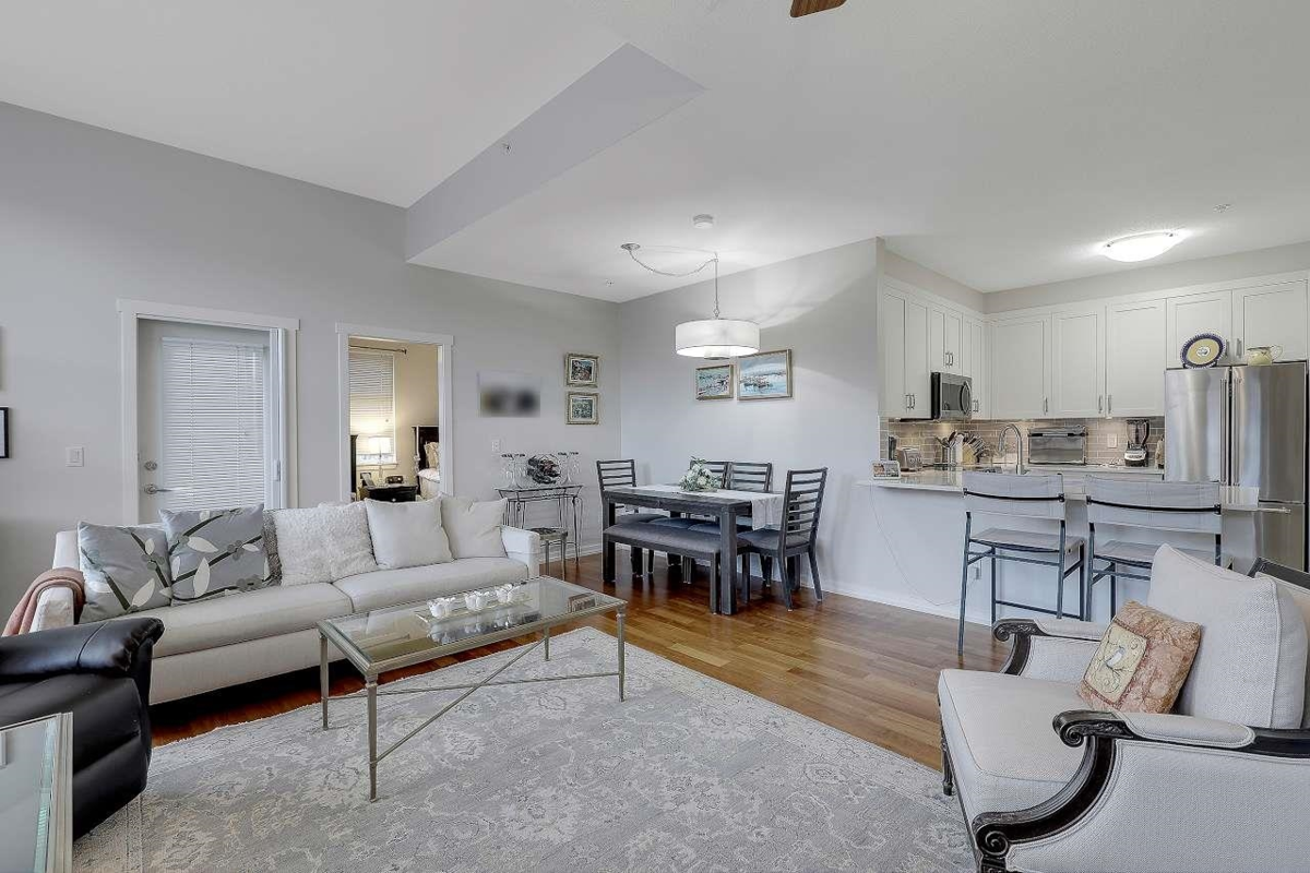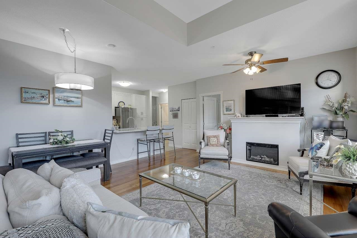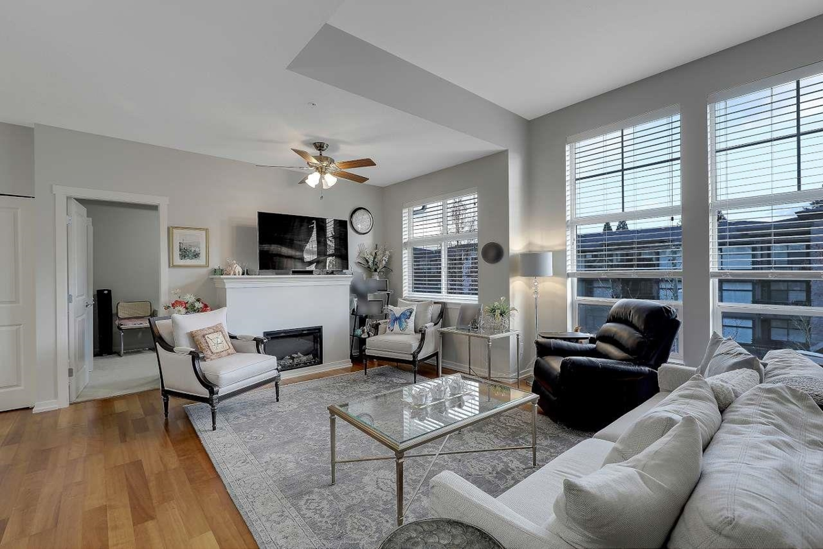 Welcome to this beautiful and bright top-floor unit, offering exceptional living space. The Southwest exposure floods the home with natural light, highlighting thoughtful upgrades which include chef-inspired kitchen featuring Quartz counters, backsplash, stainless appliances, a eating bar which flow seamlessly into the open-concept living area with vaulted ceilings, custom closet organizers, top-grade blinds, quartz bathrooms and new toilets, electric fireplace, and a 3yr hot water tank. A spacious primary bedroom with a luxurious ensuite, plus a second full bathrm perfect for guests. This well-maintained boutique building offers just 36 units and includes a rooftop deck , ideal for relaxing or entertaining. Steps from shopping, dining, library, entertainment, bus,2 pets any size. Act fast