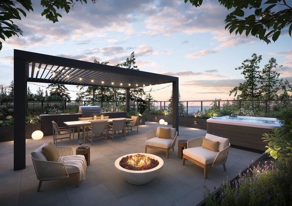 Discover luxury living atop the acclaimed ROCKFORD by Cressey in Ocean Park. Be the first to live in Penthouse 407, featuring 2 bedrooms, 2.5 bathrooms plus den. Loftly 10-foot ceilings enhance open floor plan with floor-to-ceiling windows and beautiful oak hardwood floors. Chef's kitchen offers integrated Italian appliance package, gas range, family-sized island and custom finished oak cabinets. King Size primary bedroom complete with custom closets, and leads to beautiful ensuite with double sinks, frameless glass shower and soaker tub. Enjoy summer entertaining on your private rooftop terrace complete with built-in grill and outdoor kitchen. Residents enjoy access to fitness centre, social lounge, Nordic Spa with sauna and cold plunge. Private 2-car garage. Make it yours today!