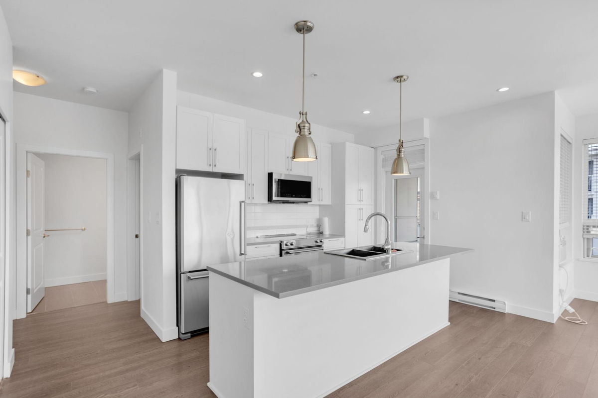 This gorgeous penthouse at The Residences in Sunstone Village offers bright open living with stunning views of the ocean and Gulf Islands. A wall of windows fills the home with natural light, while the modern kitchen features upgraded KitchenAid appliances, quartz countertops, and a spacious island that flows into the living and dining areas. With two large bedrooms complete with custom closets, two bathrooms, a den, and a private balcony with frosted glass, this home has it all. Bonus features include 2 parking stalls and a storage locker for added convenience.