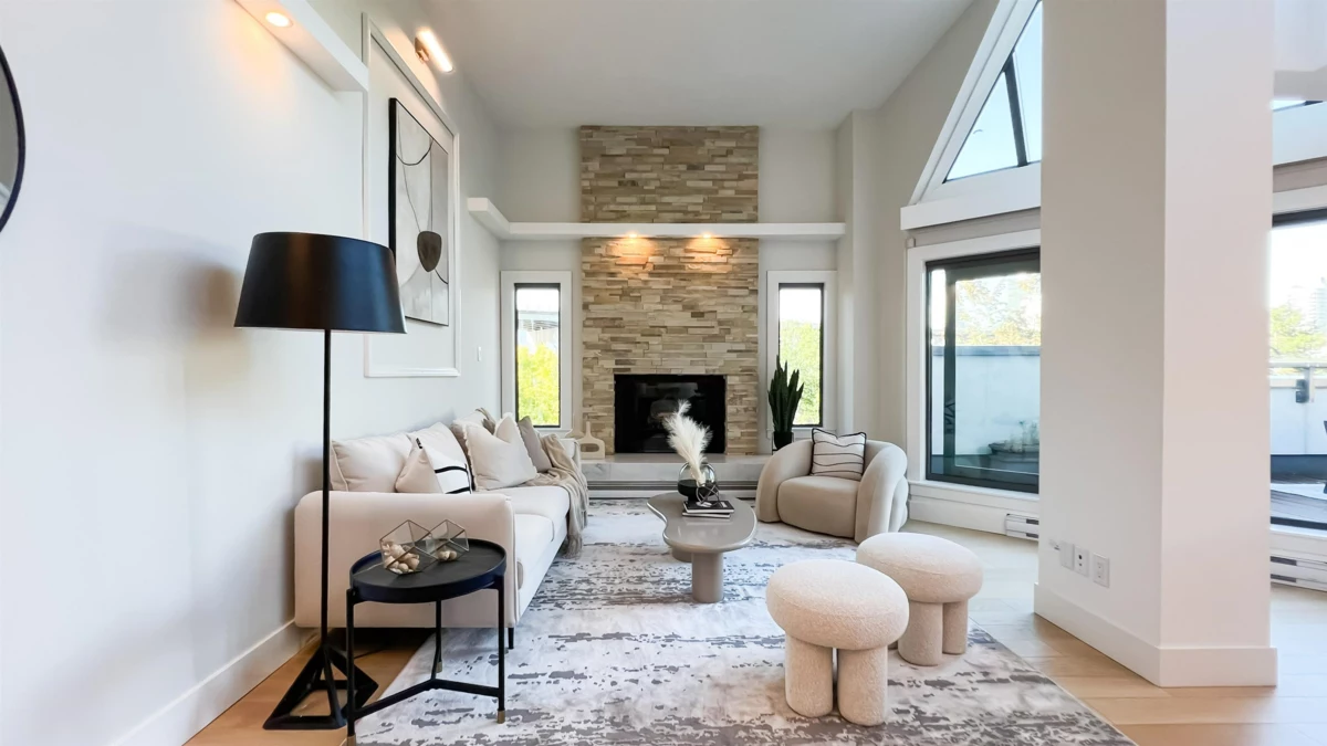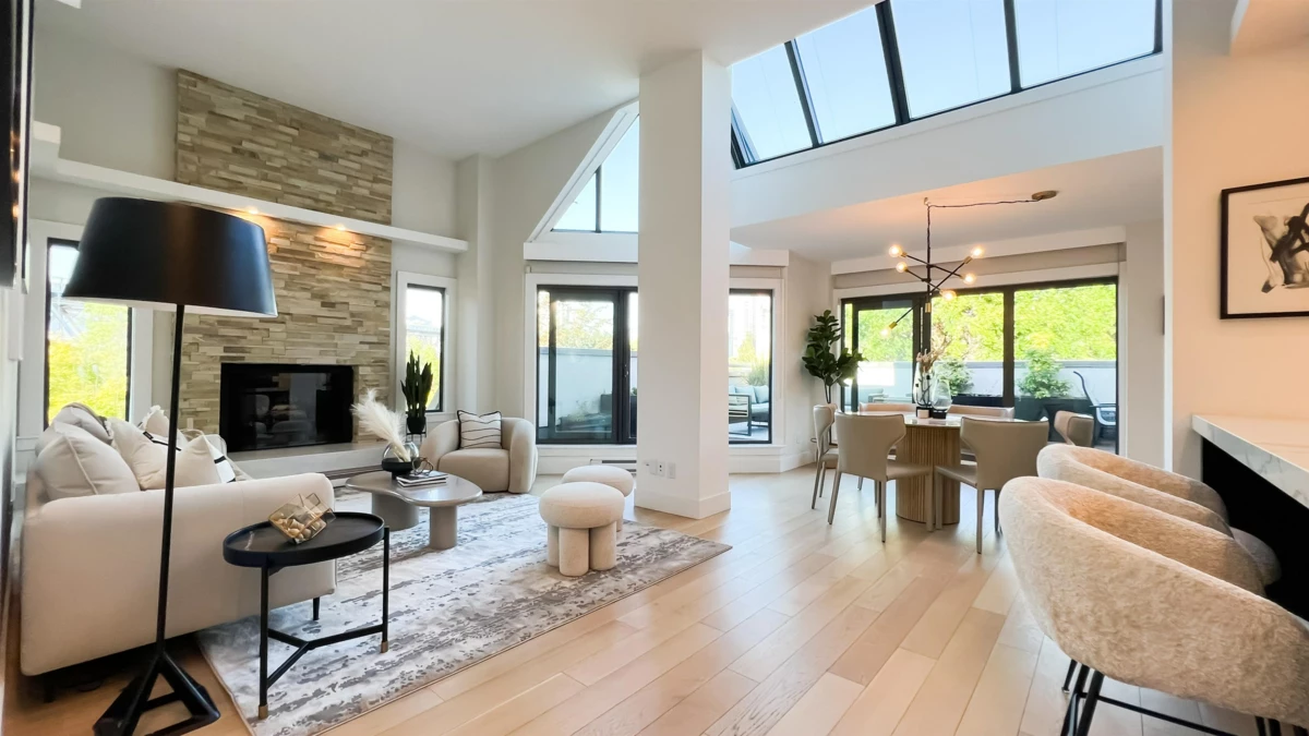 Showstopper on the Seawall! This reimagined 1,860 sqft 2 Bed + DEN (used as 3rd Bed) + OFFICE offers luxury one-level living in one of Vancouver’s most iconic waterfront communities. A tiered design offers a sub-penthouse feel & $300K in luxe renovations incl hardwood floors, quartz counters, serene ensuite & more. The chef’s kitchen opens to an expansive private terrace-perfect for long-table dinners, city views & sunset cocktails. All rooms on one level & a bright inspiring office or studio. Walk-in closet, in-suite storage, 1 locker & 2 parking. Rainscreened concrete build. Steps to the seawall, Granville Island & community centre - perfect for downsizers, families & those craving vibrant waterfront living! Pets OK. Prepaid lease to 2040, option to extend to 2060. OPEN Tues 10am-12pm.