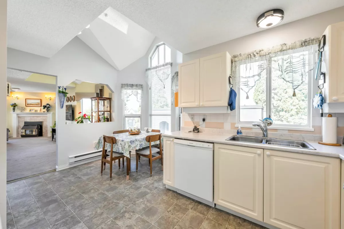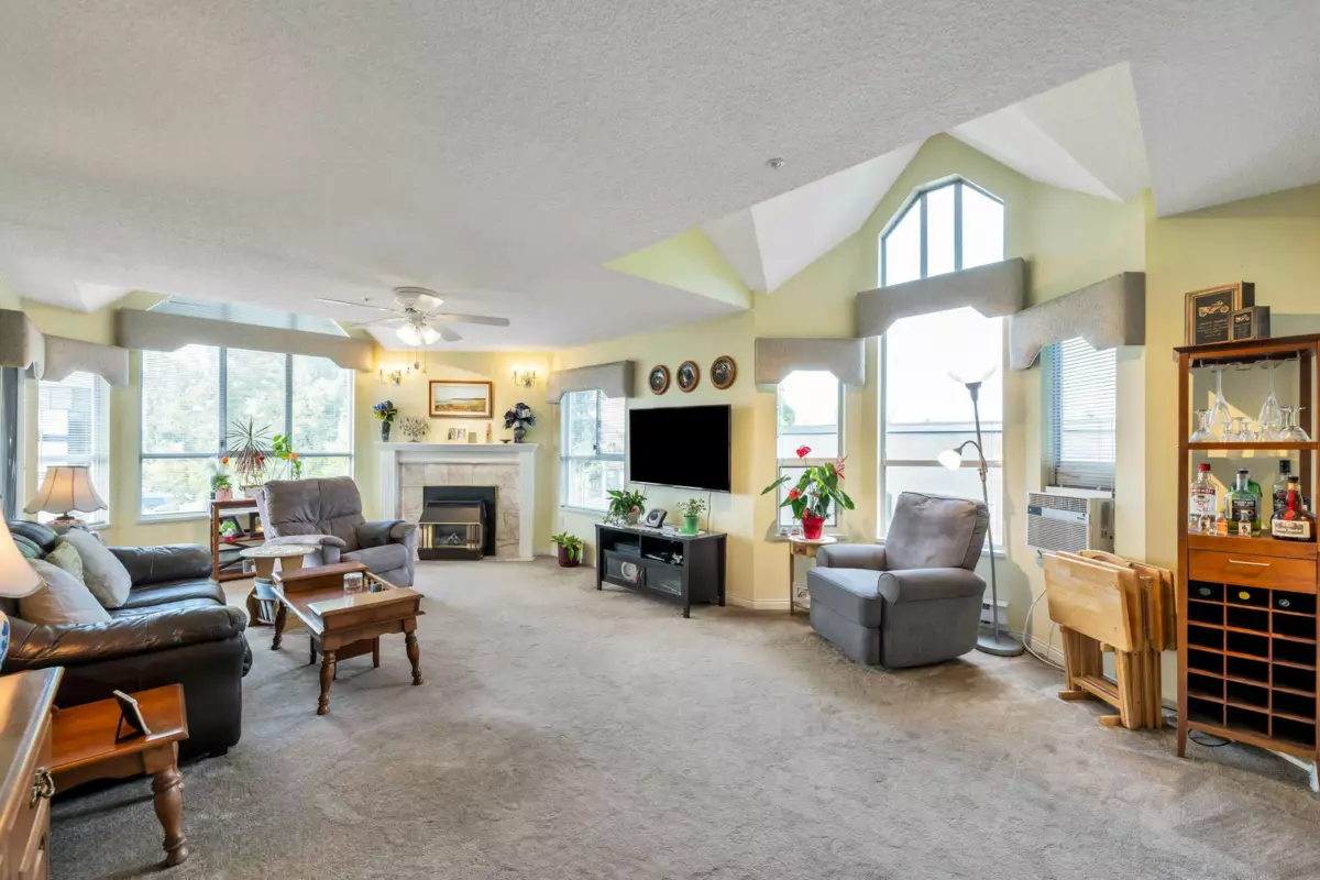 Great location & a very nice size suite. Top floor, end unit provides lots of windows & natural light. Great size rooms & yes you can bring your large furniture. Well appointed white kitchen with lots of cupboards. Lots of closets, insuite laundry & storage. Vaulted ceilings, gas & hot water are included in the strata fee & the fireplace heats the whole suite. Updates include some flooring, paint & light fixtures. Centrally located close to transit, restaurants & shopping. Pet restrictions: 1 cat, no dogs.