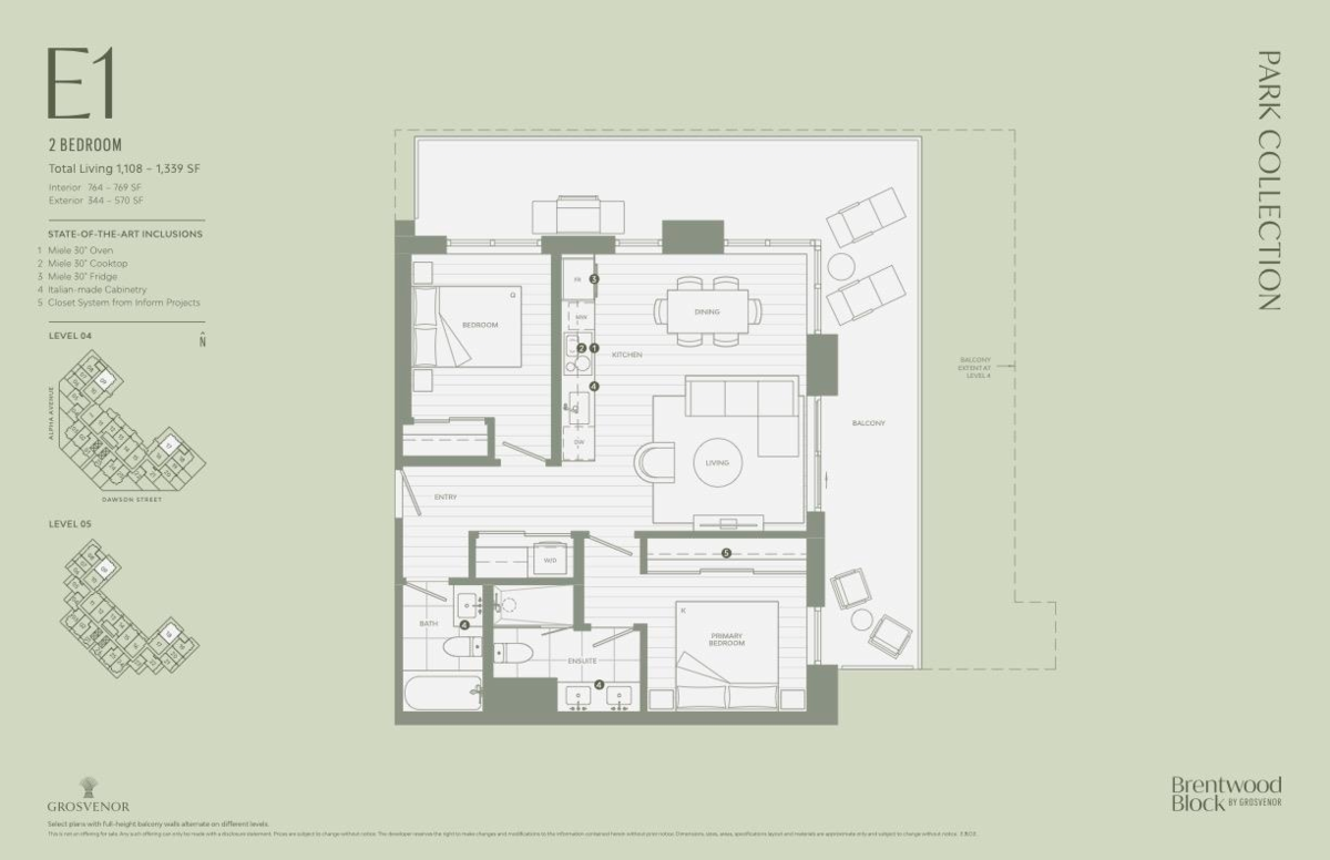 Live exceptionally at BRENTWOOD BLOCK BY GROSVENOR, a pedestrian-only community surrounded by 50,000 sqft of green space. This 2 Bedroom/ 2 Bath features a 570 sqft patio, Miele appliances, custom Italian cabinetry by Inform Projects, and Kohler sinks and faucets throughout. Enjoy comfort and quality air with MERV 13 filtration and premium amenities, including a 24-hour concierge, fully equipped gym, wet/dry sauna, coworking lounge, private dining room and outdoor terrace, children’s playroom, dog relief area, guest suite and bike/pet wash stations, EV-ready parking and a secure parcel room. Ideally located steps to Brentwood SkyTrain, The Amazing Brentwood, and the future Brentwood Community Centre and approx. 250,000 sqft of new retail, including a new grocer.