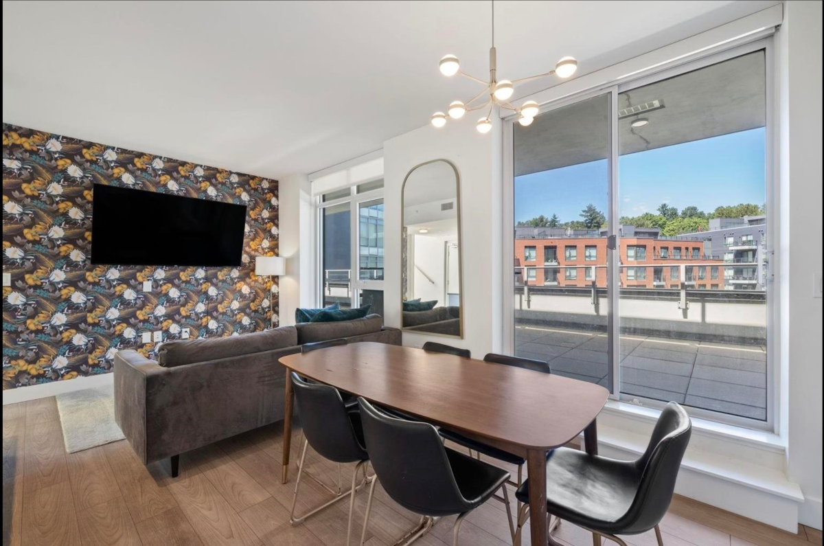 Rarely Available in River District! This stunning penthouse offers an outrageous 2,164 sq. ft. of two incredible outdoor spaces. Bring all your patio dreams—fire-pit seating, sun loungers, a kids' grass pad or sandbox, BBQ station with long-table dining, hanging egg chair, or even a sunny edible garden. You can have it all on the private rooftop deck overlooking the courtyard, or on the second outdoor space directly connected to your living and dining areas. Main floor enjoy 3 spacious bedrooms and 2 bathrooms, an open-concept kitchen with a gas range, and high-end appliances. Includes 2 EV parking stalls and 1 storage locker. Top-tier amenities include a gym, SkyLounge, party room, study room, and guest suites.