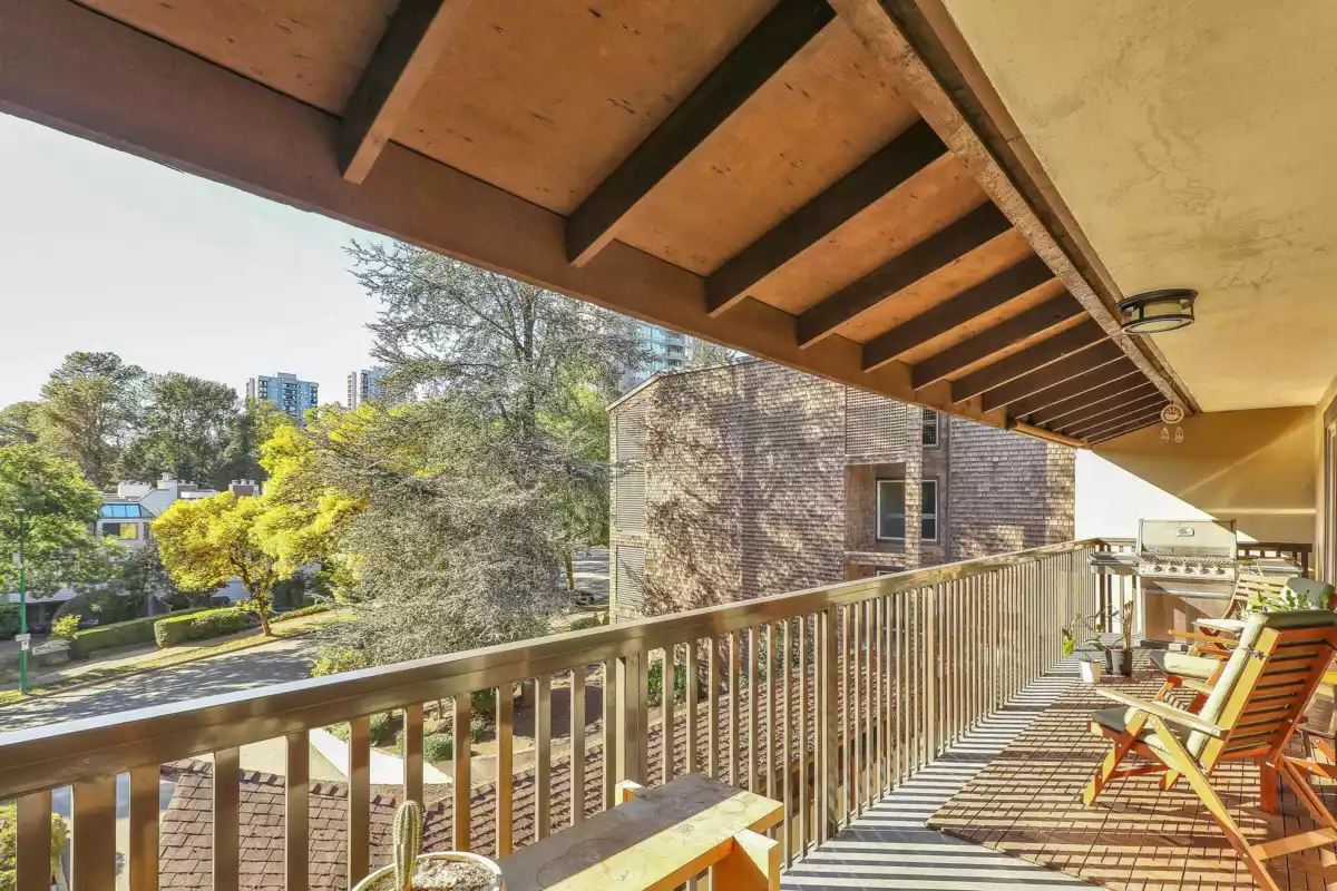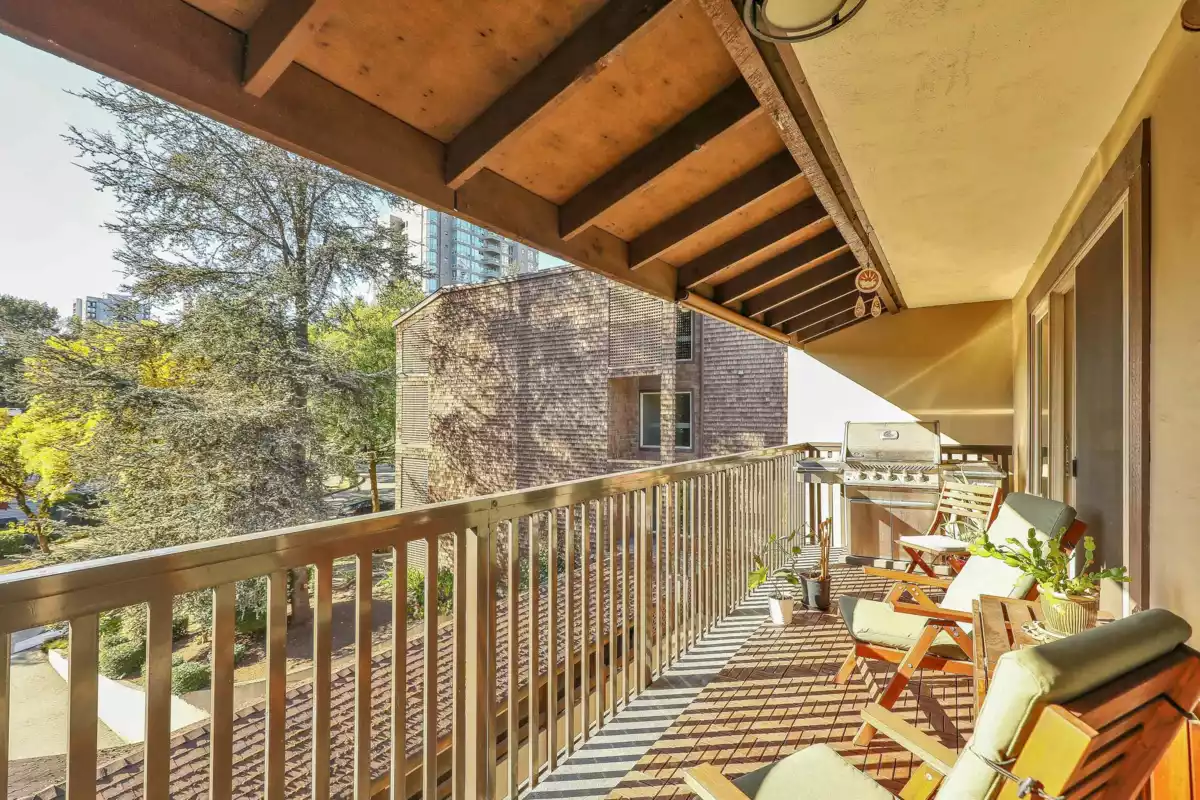 Move-in ready TOP floor 2 bed + flex/storage in highly sought-after Barclay Woods! Spacious 873 sq.ft. home with a massive 193 sq.ft. west-facing patio overlooking a quiet, treed cul-de-sac. Well-run, proactive strata with a full-time building manager and major updates already completed: windows (2013), plumbing (2014), common areas/lobbies/hallways (2015), balconies, sliding doors & elevators (in progress), and roofs (2018). Complex offers laundry on every floor, a fully equipped gym, and a renovated party room. Includes 1 secure underground parking stall. Pets and rentals allowed, making this an excellent choice for both homeowners and investors. Easy walking distance to SkyTrain, Lougheed Mall, schools, and local parks/trails. Truly a turnkey opportunity in a fantastic community!