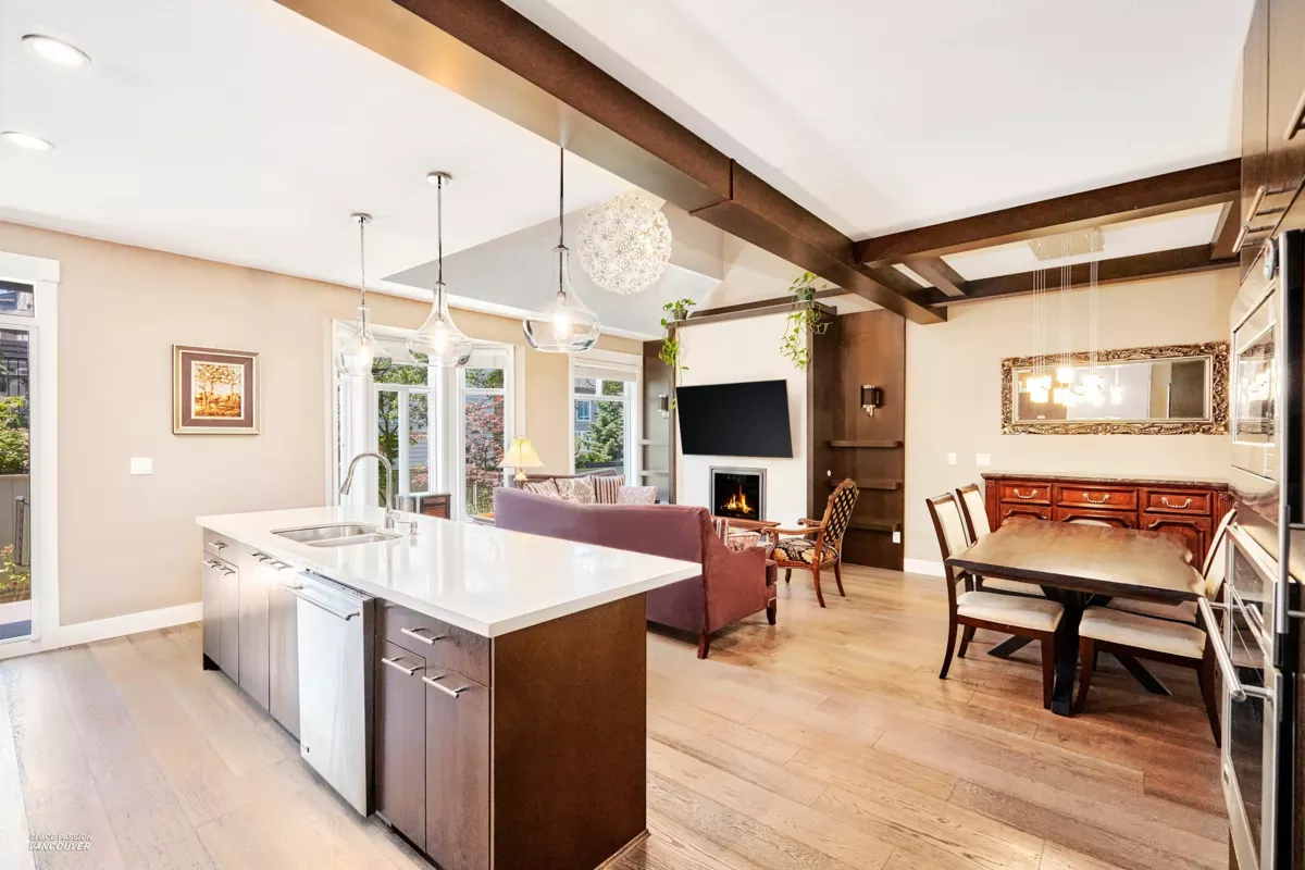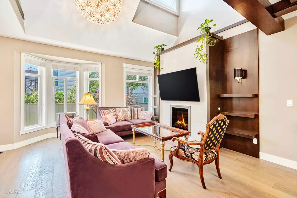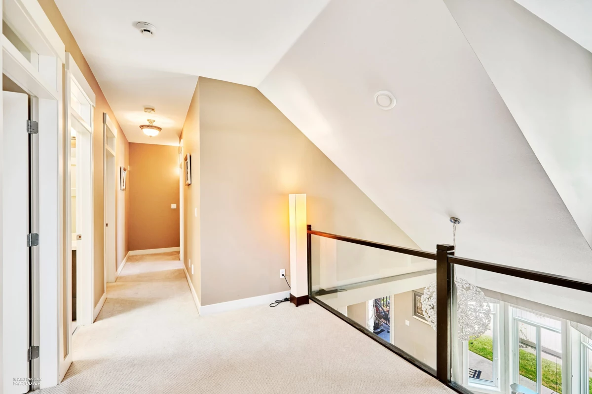 Welcome to BELCROFT – a duplex-style townhome that feels like a detached home in South Surrey's Grandview neighborhood. This 5 bed + Open Den, 4 bath home offers almost 2,400 sqft with a main floor primary bedroom, double garage. Features include vaulted ceilings, wide plank flooring, quartz counters, stainless steel appliances, built-in vacuum, and fenced west-facing yard backing onto green space. Ideally located in a quiet cul-de-sac, steps to Grandview Corners, Morgan Crossing, transit, and top schools including Southridge, Sunnyside Elementary, and Grandview Secondary. A perfect family home in a premium location! An ideal In-Law Suite on the entrance level. Could be a Mortgage helper or extra family members. Open House Sat Oct 25th 12-1pm