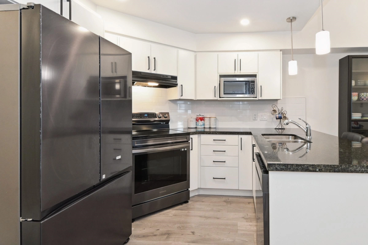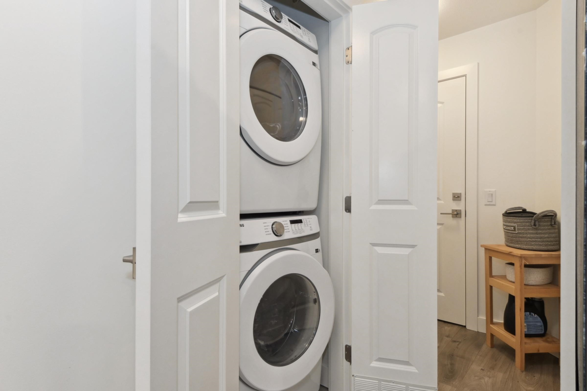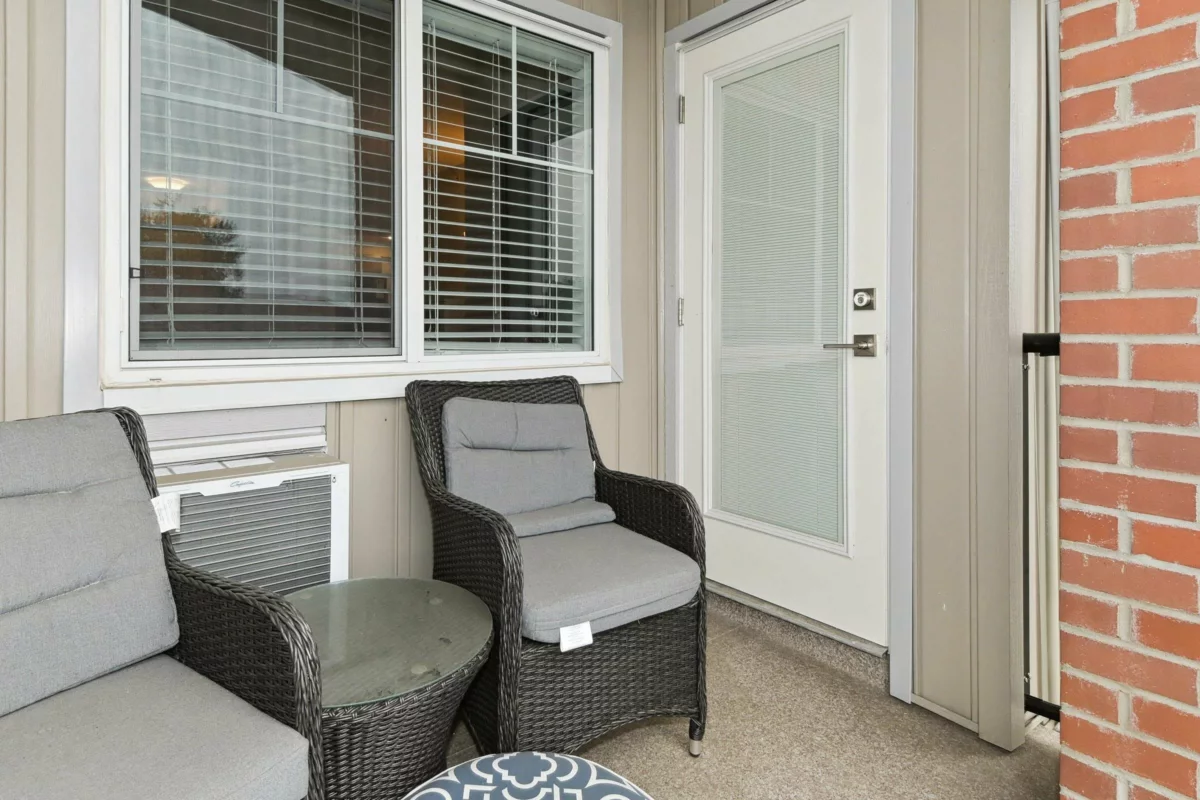 Newly rebuilt 1 Bdrm + Den Condo located in Madison Place. Completed in 2024 & located on the quiet, SE facing side of the building w/a modern design & upgrades throughout. Enjoy the open layout in the main living area w/vaulted ceilings & opens onto a covered patio;perfect for relaxing/entertaining.Kitchen boasts a breakfast bar, SS appliances, including a new never used stove & dishwasher & has AC. The versatile den offers the perfect space for a home office or guest room. This centrally located unit is just steps away from all major amenities, offering unmatched convenience without compromising peace and privacy. Inc. 2 parking stalls and access to a fully equipped gym!