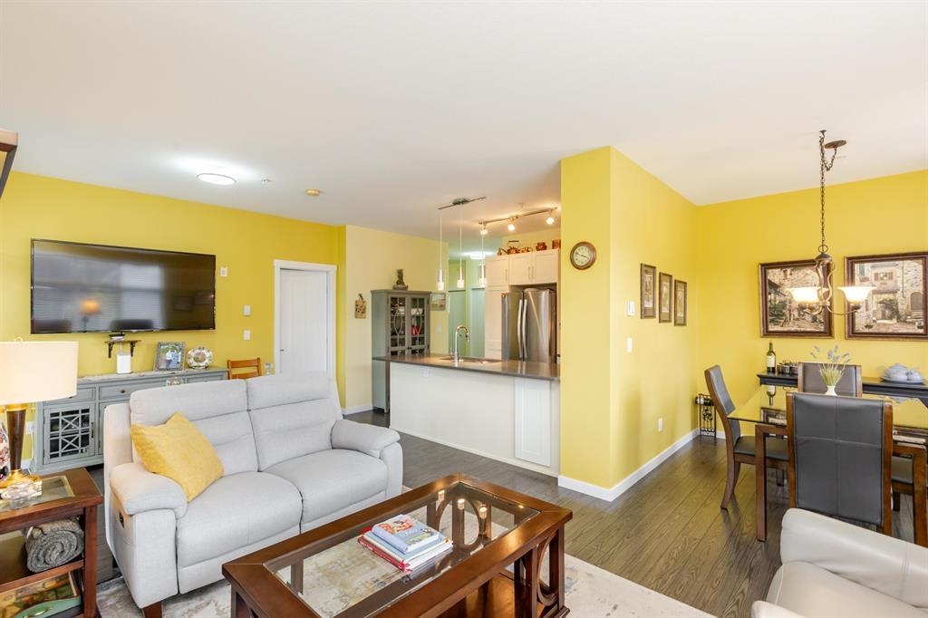 Bright & modern 2 bdrm, 2 bath corner unit at the Heights by Lakewood in Morgan Crossing. This 1,200+ sq ft home offers an open-concept living & dining area with large windows & fresh paint. The kitchen includes quartz countertops, stainless steel appliances, pull-out drawers. The primary bedroom features an extra large walk-in closet, 5-piece ensuite, and a sitting area of 10' by 10' that can be made into another bedroom or women's lounge. A 144 sq ft south-facing balcony overlooks green space & the community garden. Additional features include in-suite laundry, storage, and one extra-wide indoor parking stall with room for a motorcycle, plus 20+ outdoor parking spots available on a first-come basis. Pet-friendly building with rentals allowed. Shops, Schools and transit nearby.