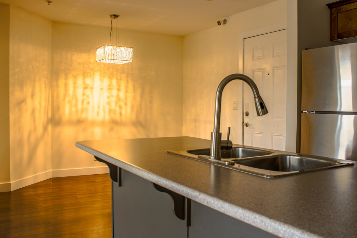 Top-floor 2 bed, 2 bath unit with soaring ceilings and mountain views! Vacant and CMHC-friendly—perfect for first-time buyers. This bright, functional home features a massive laundry room, smart layout, and 2 parking spots. Located on the quiet side of the complex, just steps from transit, schools, the hospital, and the trendy new shops and restaurants at District 1881. Don’t miss this rare top-floor gem!