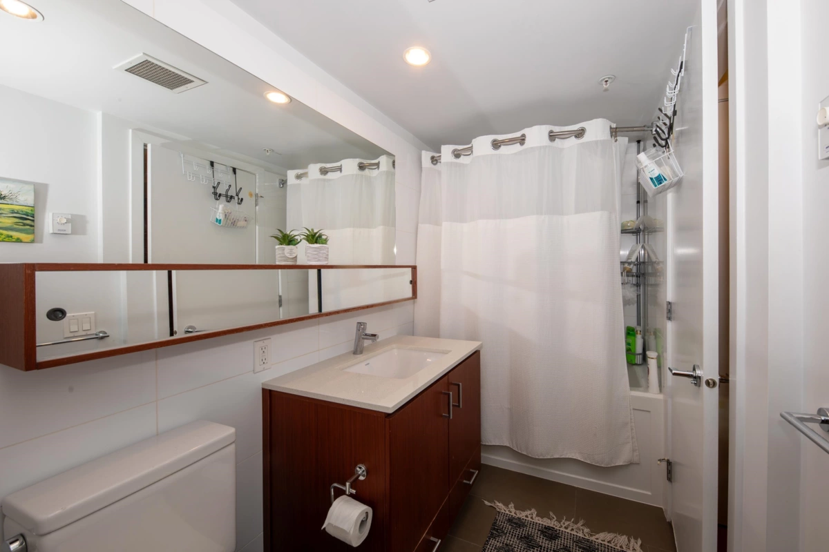 Luxury Condo in Lower Lonsdale! Live steps from Lonsdale Quay Market in this spacious 1-bedroom, 1-bath home with floor-to-ceiling windows and breathtaking North Shore views. The modern kitchen boasts quartz countertops, a large island, stainless steel appliances, and abundant storage, with additional built-ins at the entry and in the bedroom. A bright, open layout maximizes natural light, while the private deck and rooftop patio with BBQs, lounge, fire pit, and panoramic mountain and partial ocean views offer endless relaxation. The bedroom features a walk-through closet leading to a spa-inspired bathroom. Building amenities include a fitness centre, EV charging,Bike storage, car wash, and dog wash. Just a short walk to the SeaBus, Shipyards District, shops, and restaurants.