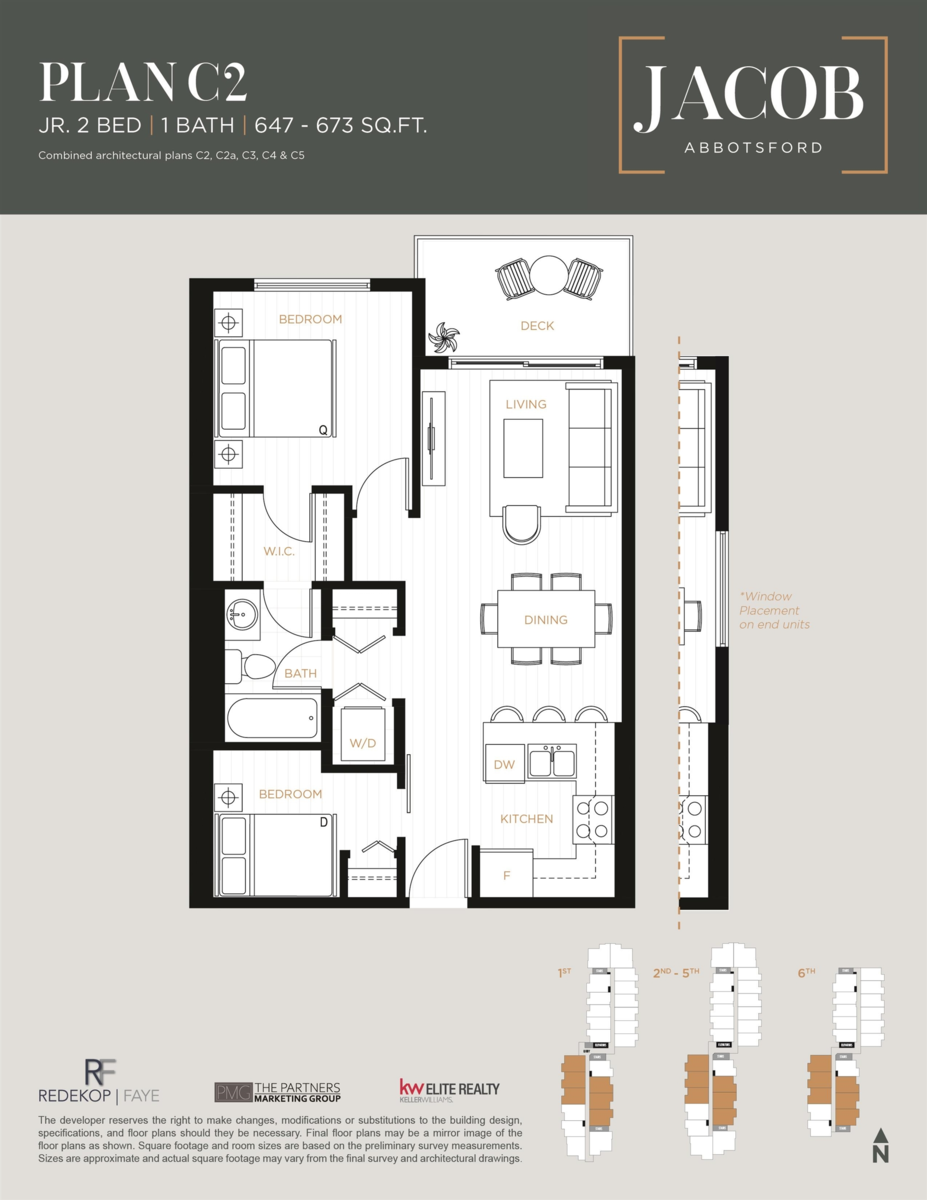 Move in Ready! Introducing Jacob. This stunning new development is only a short drive from historic downtown Abbotsford, schools, parks and trendy local businesses. The high-quality finishes and modern design contain sleek cabinets, stainless steel appliances, and laminate flooring. The building features an expansive courtyard called the Gathering Place. Nestled in a suburban neighbourhood, Jacob caters to young families as well as first-time home buyers, as this up-and-coming area develops and grows. This unit has 1 storage locker included, and carpet in both bedrooms have been upgraded to laminate. Please reach out to our sales team for more information and appointment availability.