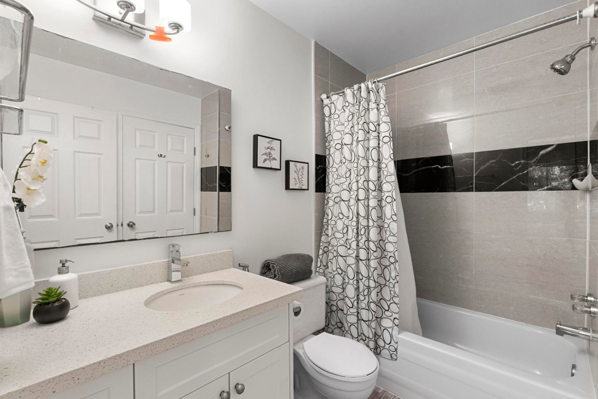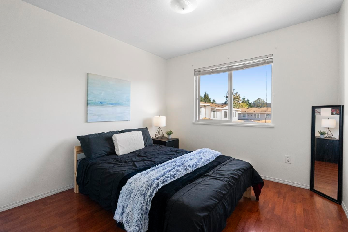 This 3BR/2BA end-unit townhouse in Bishop Mews offers a smart, family-sized layout w/ all the lifestyle perks: a fenced backyard that opens to green space, room to entertain, & privacy for play or pets. Upstairs: a spacious primary BR w/ cheater ensuite + 2 large BRs. Laminate flooring throughout, tons of natural light, & parking for 2 under cover + visitor spot nearby. Walk to Guildford Mall, T&T, schools, library, rec centre & transit. Well-run, family-oriented complex. Pets welcome w/ restrictions. Priced to move, don’t miss this.