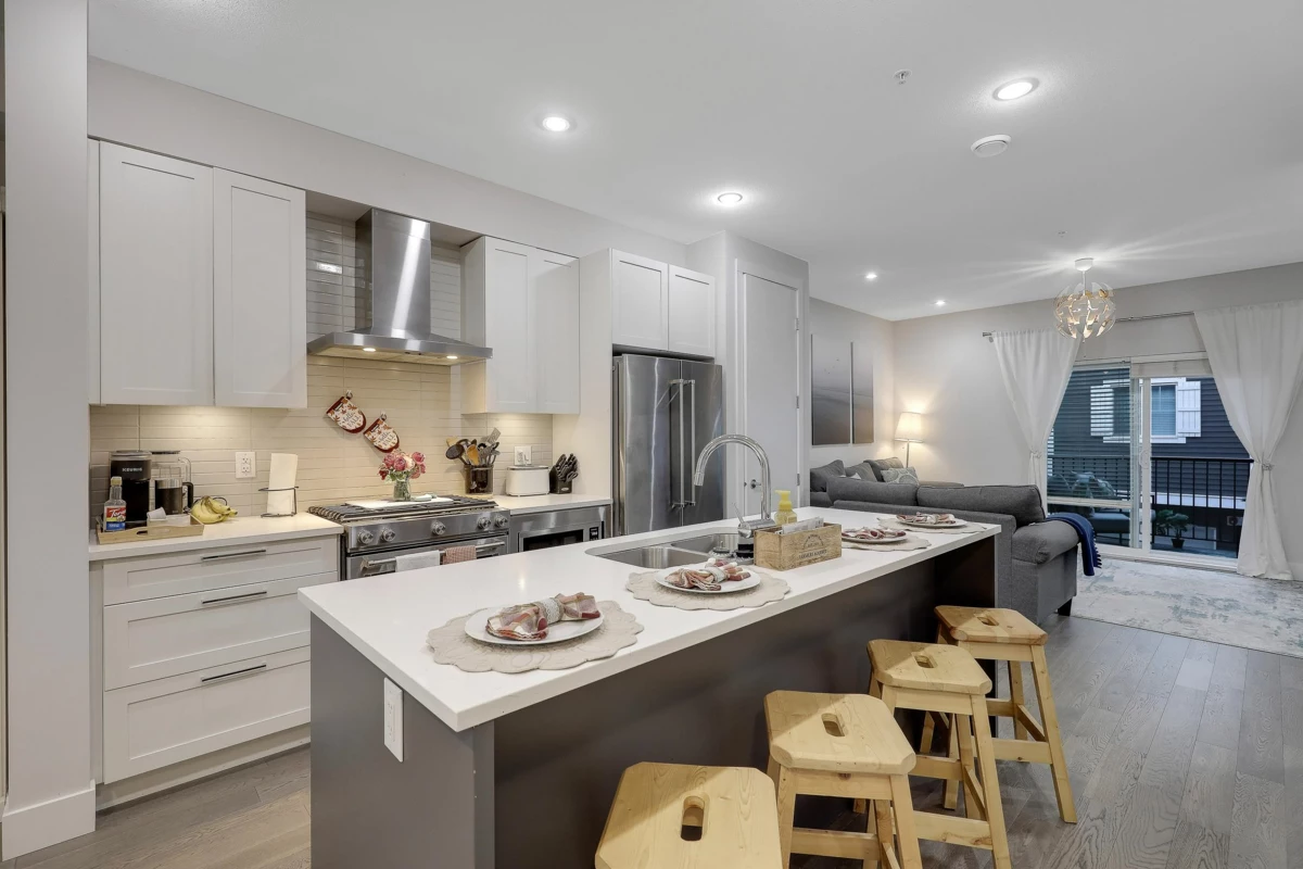 Welcome to this 3 bdrm, 2.5 bath townhome at the craftsmen inspired 'Walden' in the heart of Langley's Yorkson neighborhood. Charm, tranquility and urban convenience at your doorstep. Bright & spacious home with an open concept interior with plenty of room for the whole family! 9' ceiling, engineered hardwood flooring on the main floor, gourmet chef's kitchen with large island, gas stove, quartz counter tops, S/S appliances & built in wine fridge. Master with WIC & ensuite. Street front entry with fenced yard, double tandem garage with space for storage or workshop and an additional parking stall. Pets and rentals are allowed. Close to all amenities, walking trails, bus loop, shopping, schools, parks and easy access to Hwy.1. A MUST SEE! PUBLIC OPEN: Sat/Oct. 25th from 1 to 4:00pm.