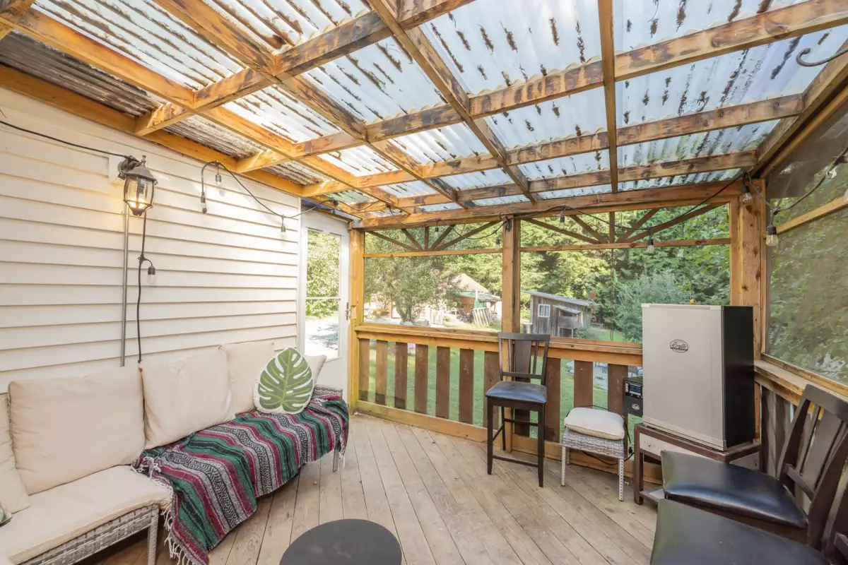 Tucked away at the end of a no-thru road, this private 1 Acre retreat offers peace and charm. Updated 3 bed, 2 bath home w/newer roof, fresh flooring & moldings, propane stove, and kitchen island. Enjoy gated entry, fenced yard, 2 patios including a covered back patio, chicken coop, and outbuildings. The last house on the street, just 20 minutes from Mission. Quiet, private, and ready to enjoy!
