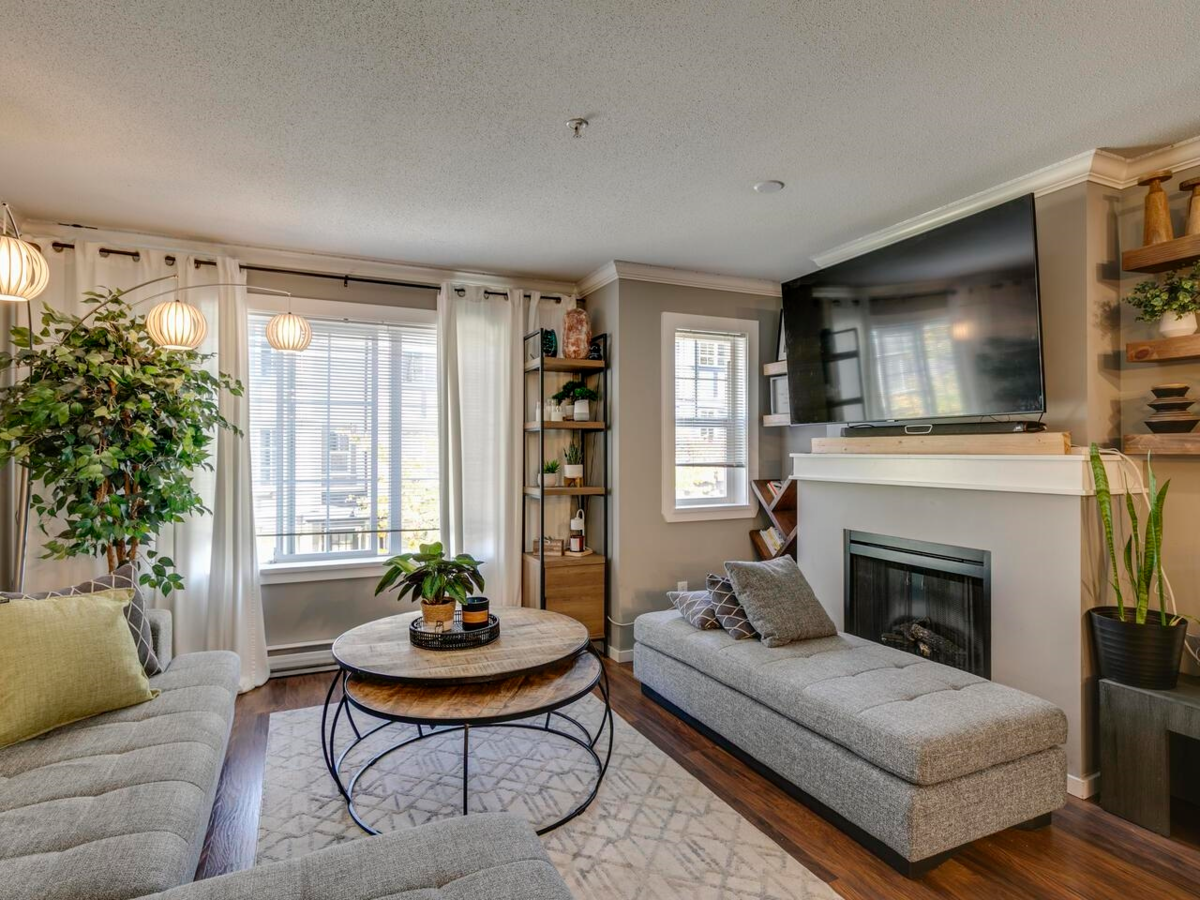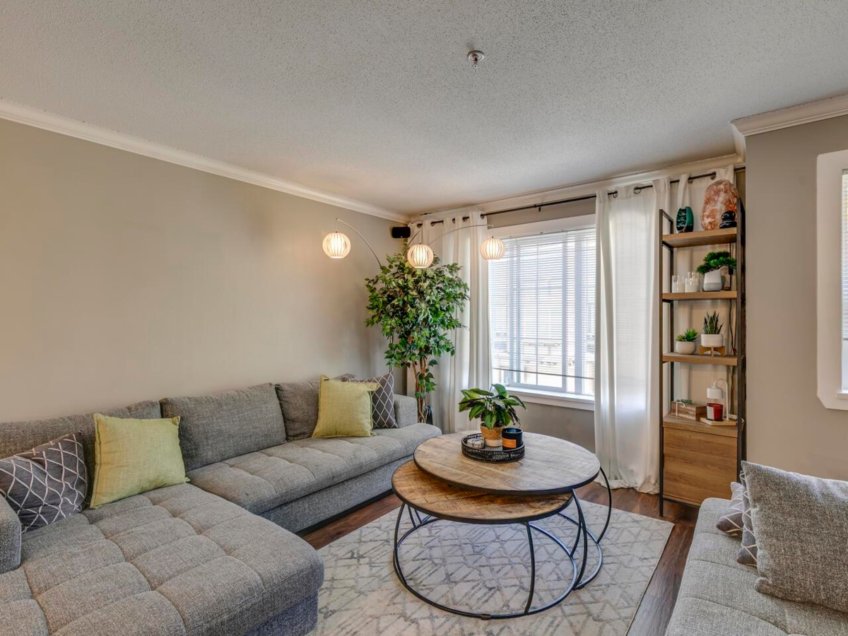 Popular Pepperwood! This bright 3-bedroom townhouse features a spacious kitchen that opens to the living/dining area with electric fireplace and large windows. The primary bedroom offers double closets and an ensuite with oversized shower. Enjoy brand-new flooring throughout, a fenced backyard backing onto the park, and views of the playground right from the kitchen. Parking for 3, walking distance to schools, transit, and resort-style amenities: pool, gym, indoor hockey, billiards & more. Easy to view—call today!