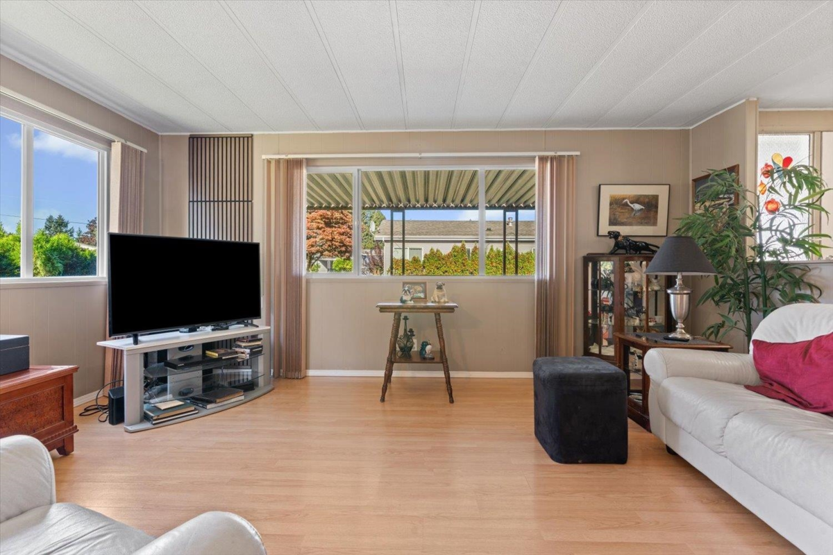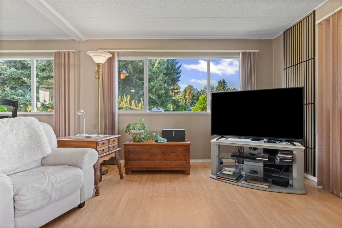 Welcome to Paradise Park! One of Abbotsford’s most friendly and secure 55+ communities. This well-cared-for double-wide home offers 2 bedrooms, 2 bathrooms, and a bright, inviting layout filled with natural light and warmth. Enjoy peace of mind with numerous exterior updates and the charm of a cozy, functional floor plan. The enclosed patio opens to a spacious backyard with two storage sheds and room for your garden or outdoor retreat. Manicured grounds, wonderful neighbors, and the bonus of one small pet allowed make this community truly special. Attractively priced for a senior budget, this home is a must-see!