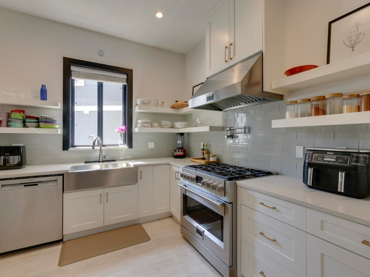 Located on a quiet cul-de-sac in the coveted Auguston community, this 7,151+ sq ft contemporary home sits on a 12,272 sq ft lot backing onto greenbelt and is just a 5-minute walk to Auguston Elementary. With nine beds and eight baths, it features a dramatic great room with floor-to-ceiling windows and a fireplace. The chef’s kitchen includes high-end appliances and a spacious spice kitchen. A luxurious primary suite is on the main floor, while upstairs offers four master suites with walk-in closets and a flex room with private patio access. The lower level includes a 2-bedroom in-law suite with potential for a second guest suite.