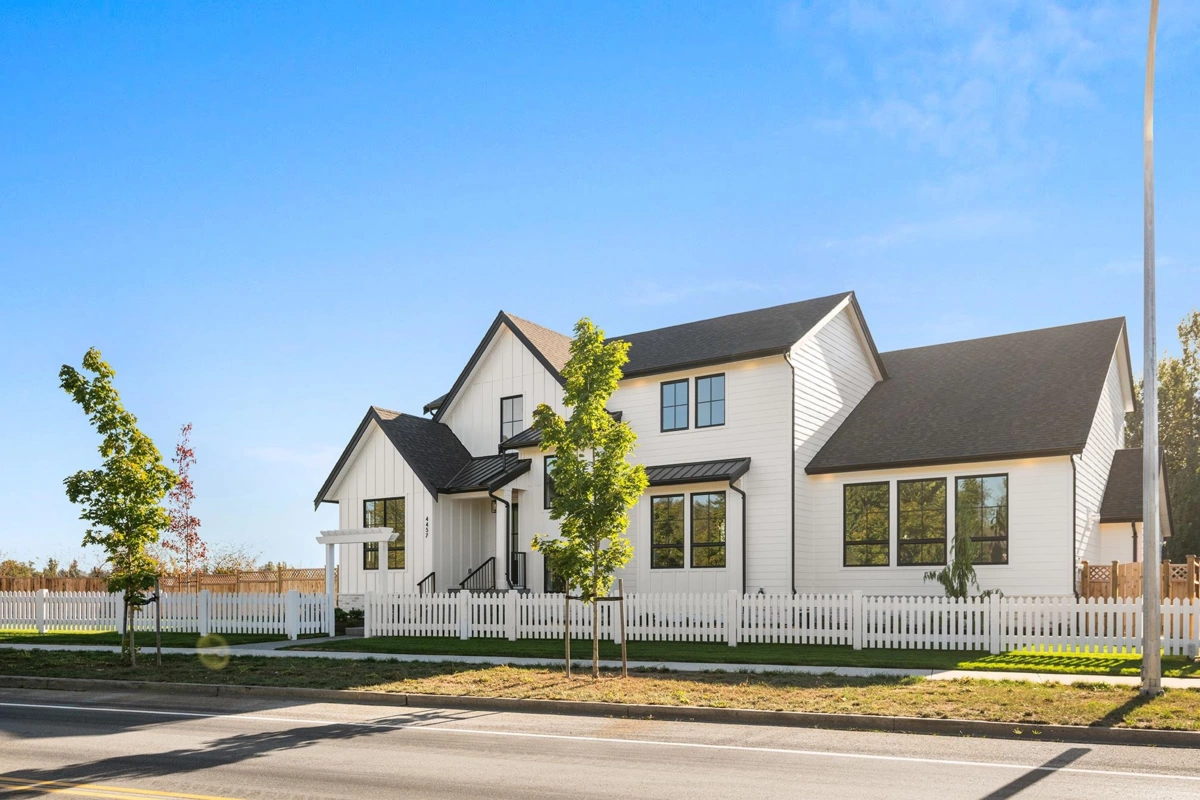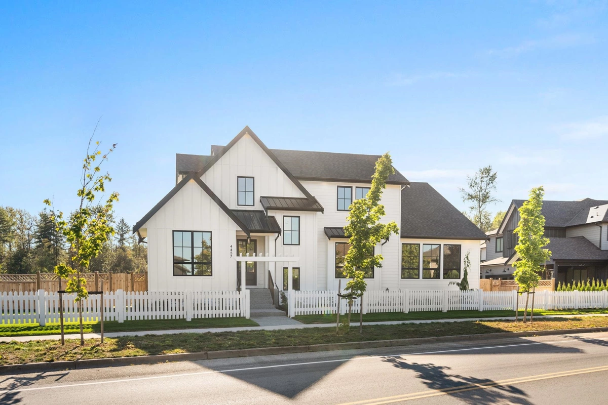 JAMES HILL - Estate homes in sought-after Murrayville, established family community bordering greenspace & James Hill Park. Large ¼ acre lots. Modern farmhouse exterior w/ triple garage. Spectacular open floor plan, vaulted ceiling in the Great Room, black framed windows in & out, custom cabinetry & millwork. Spacious kitchen w/ large sit-up island, Fulgor Milano appliances & custom W/I pantry with beverage fridge. Upstairs features Master w/ vaulted ceiling & elegant 5 pce. ensuite, plus 3 more bdrms & 2 full baths. Basement has a large media room w/ wet bar PLUS a luxurious 2 bed LEGAL SUITE. The sunny south-east facing, large back yard offers a private, peaceful setting. Enjoy the view from the spacious covered deck. Lot 13 is move-in ready!