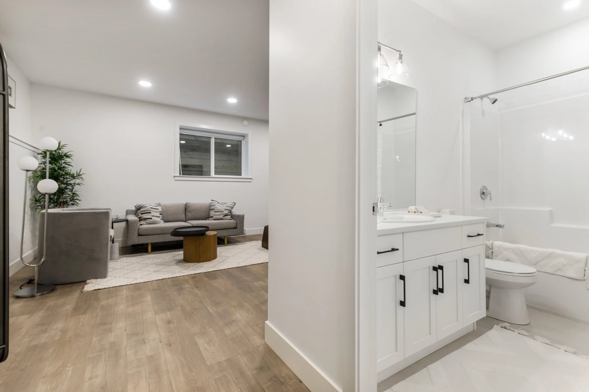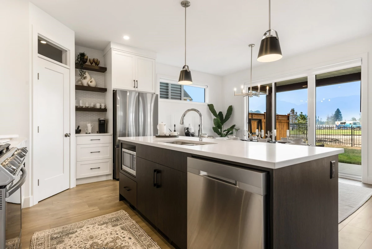 Welcome to Cedarbrook, named Residential Community of the Year and built by award winning developer, Westbow Construction. This brand new Trail Home offers a thoughtfully designed layout with 3 bedrooms and 2 bathrooms in the main home, plus a legal 1-bedroom suite—perfect for rental income, extended family, or guests. Inside, the open-concept floor plan seamlessly connects the kitchen, dining, and living areas, creating a bright and inviting space for everyday living and entertaining. Step out onto the spacious balcony and enjoy the peaceful backdrop of Cedarbrook’s private trail network, offering a true connection to nature. Beyond your doorstep, the community park is just a short walk away, featuring a splash park and playground where kids can play and families can gather.