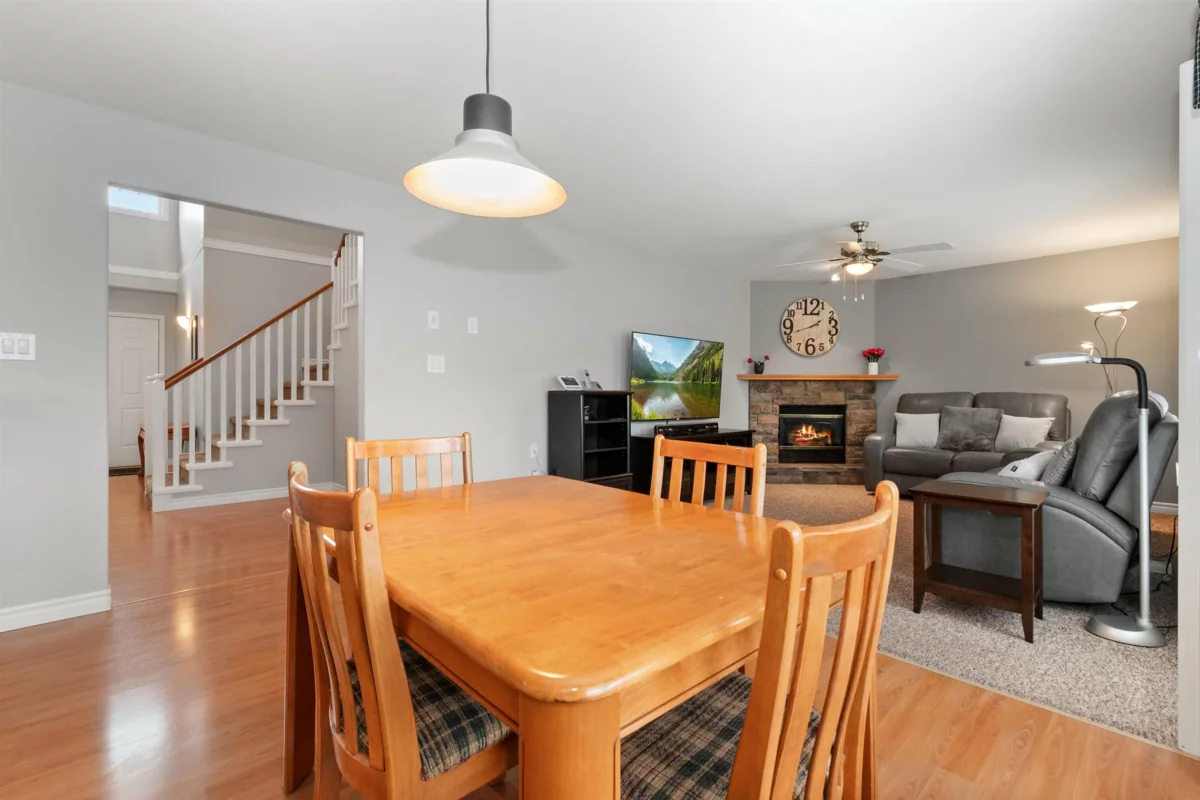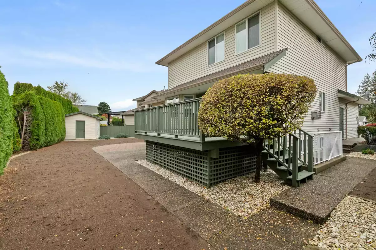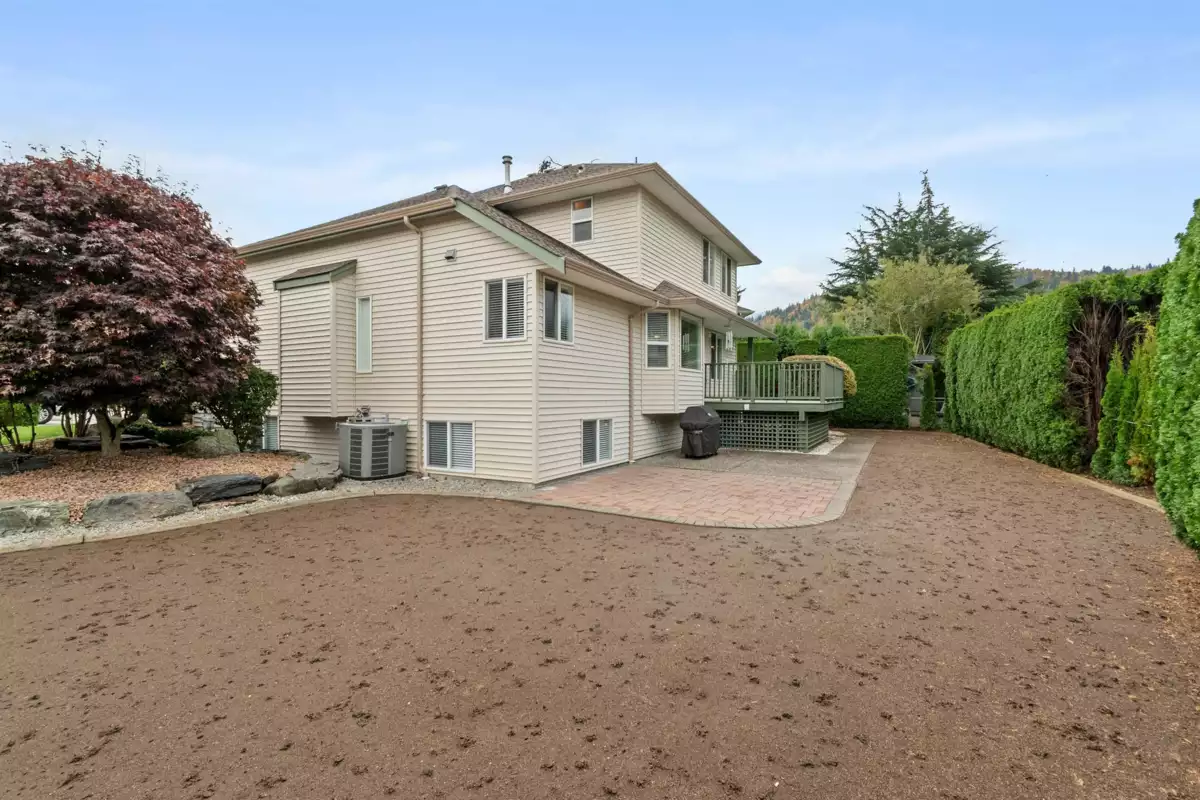 Welcome to this spacious 3,119sqft 2-storey home w/fin bsmt -perfect for your family! Main floor features a bright living room w/formal dining area (incl hutch alcove), a large white kitchen w/an island & plenty of cupboards & counter space. The kitchen opens to a generous eating area and a cozy family room with a natural gas fireplace, plus access to a large deck and patio. Large laundry room & 2pce bath round out the main. Upstairs offers 3 roomy bdrms, incl primary suite w/walk-in closet & ensuite feat soaker tub & separate shower. The bsmt is easily suitable, w/open-concept layout, 2 additional bdrms & full bath. Enjoy the private, hedged backyard w/storage shed, double garage & heat pump -all located on a quiet cul-de-sac close to schools, Vedder River fishing & trails.