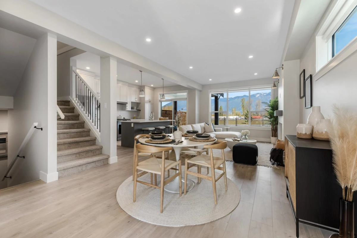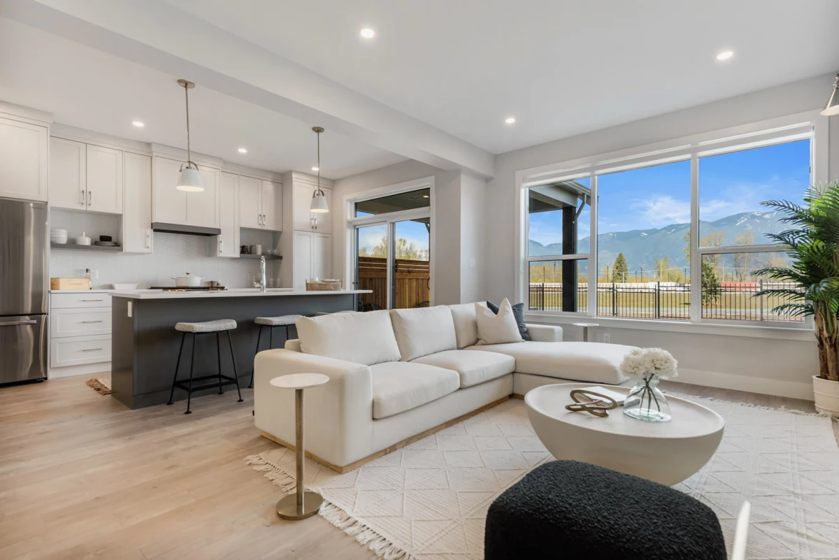 Welcome to Cedarbrook—Fraser Valley's Residential Community of the Year—built by Multi-Family Home Builder of the Year, Westbow. Looking for a brand new duplex that has never been live in? This is the only one in Chilliwack and still includes warranty. It features 4 bedrooms, 3 bathrooms, and a full basement perfect for a media room, home gym, or kids play area. Step inside to high ceilings, an open-concept layout, and large windows that fill the home with natural light. Enjoy a covered patio and a large fenced backyard backing onto a walking trail, green space, mountain views, and the best playground and splash park Chilliwack has to offer. This is more than a home—it’s where families thrive, with community events, walkable amenities, and a lifestyle designed for family and connection.