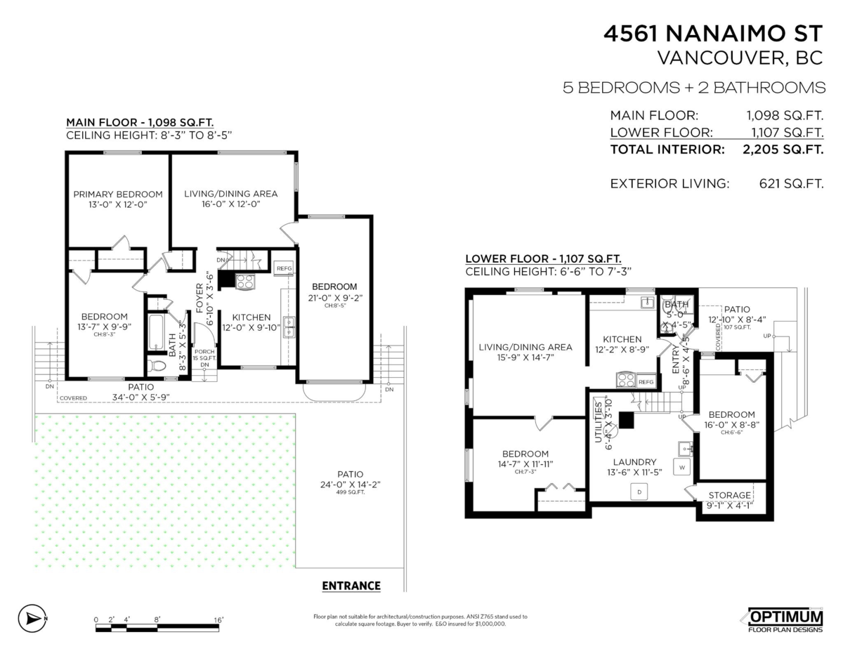 Spacious 5-Bedroom Bungalow on Generous Lot–a Rare Gem! With a legal 1-bedroom garden suite perfect for rental income. Bright upper 3-bedroom suite with park views, classic layout, wood floors and a sunny backyard for gardening or play. A valuable opportunity for families upsizing, investors, or developers. Recent updates include double glazed windows, roof, hot water tank & fire sprinkler system. This larger 50'x102' (5100 sq’) lot with back lane access can accommodate a laneway home in this prime East Vancouver location. Great amenities nearby and steps to parks, schools, restaurants, groceries, banking, and transit. Excellent long-term hold or development site, currently zoned for Duplex or coach house potential, inside TOD Tier 3 for future development upside! Buyer to verify with COV