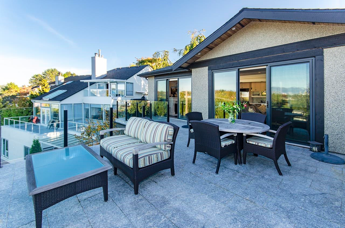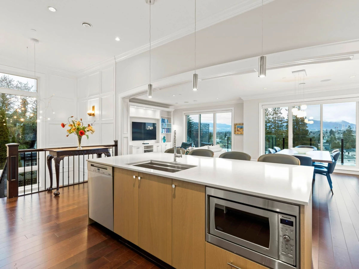 Perched on the hill of Puget Drive; this impressive 4,473 sq ft residence presents breathtaking city & mountain vistas. The 6 bed, 7 bath home features a thoughtfully designed 4-level split layout, enhanced with modern updates throughout. Tasteful renovations include new kitchens, bathrooms, light fixtures, flooring, and paint. The home's high-end construction & quality craftsmanship are evident in every detail.1,282 sq ft of terrace patios offer panoramic views that make outdoor living and entertaining a true pleasure. Convenience of a 1 bed ground level suite fully equipped with custom kitchen, laundry, and access to private patio. Additional studio suite in the bsmt level. Exceptional home combines comfort & style, in one of Vancouver's most sought-after neighborhoods.