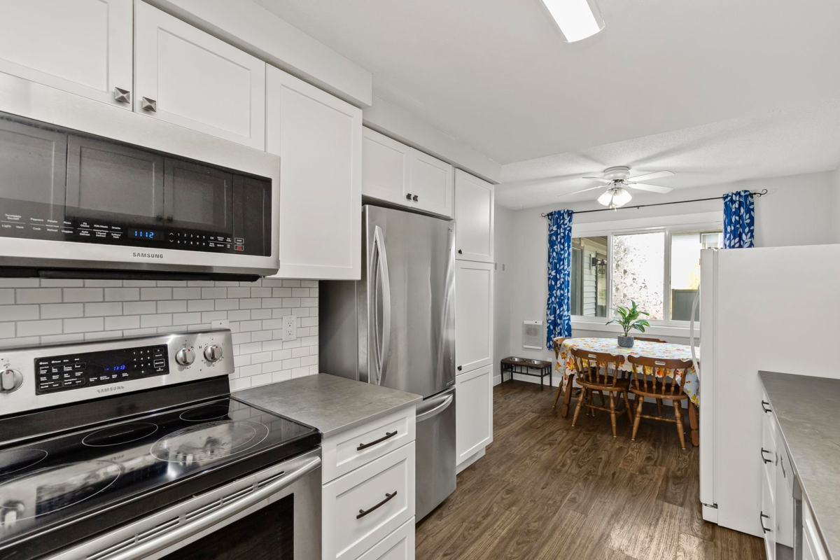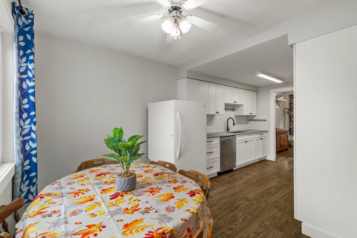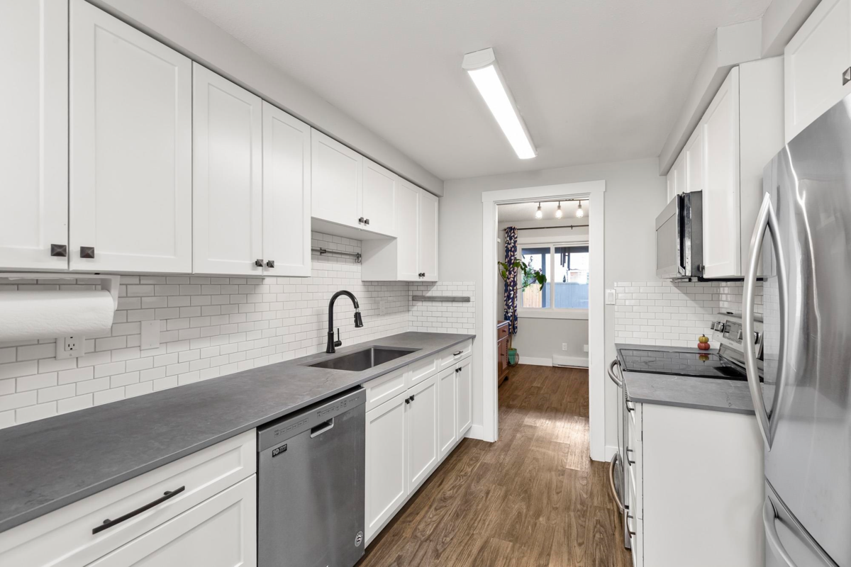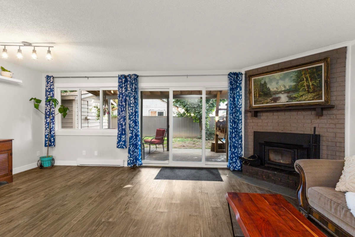UNBEATABLE VALUE HERE! Beautifully renovated 3bed, 2bath quiet Corner unit in Mount Baker Estates, blending comfort, style, and affordability. Main floor features stunning kitchen w/ stainless-steel appliances, flowing into a spacious living area warmed by a WETT-certified wood-burning fireplace. Outside, enjoy a fenced front patio and one of the largest back yards in the complex, fully fenced w/ bonus side access, covered deck & large storage shed. Thoughtfully updated and Move-in-ready w/ new flooring, bathrooms, lighting, paint, windows, and enclosed garage w/ access from inside. Family-friendly complex w/ playground, outdoor pool, and close to schools, shopping, recreation, and transit. PLUS Three pets allowed here with NO size restrictions!
