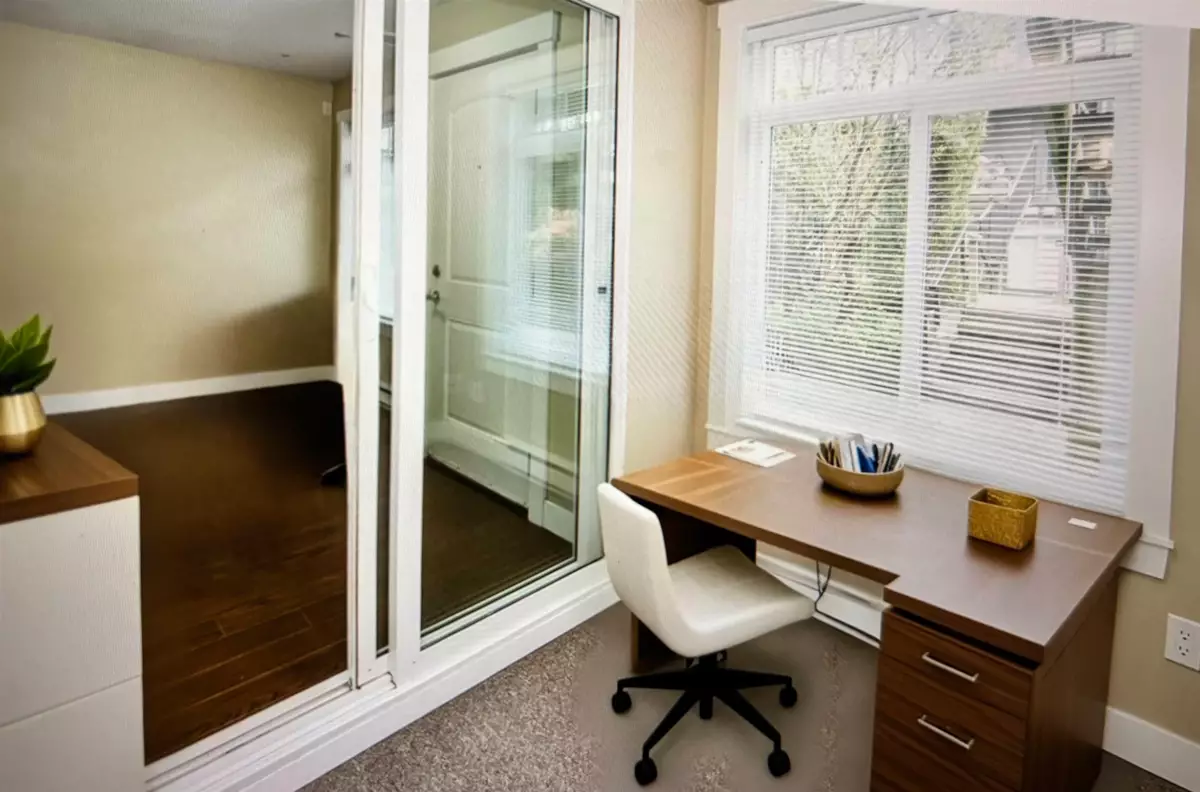 1 BEDROOM+DEN garden townhome, with huge private patio is perfect for first time home buyers or pet lovers, investors. Step into your 638 sq ft of smartly designed living space featuring: large house sized kitchen with stainless steel appliances, granite counters & breakfast bar. Southeast-facing living/dining area with laminate floors, bay window. A large primary bedroom, plus a versatile den with window, perfect for home office. Offers 160 sq ft private patio for BBQs with quiet courtyard setting. Pet and rental friendly, one parking is included. Low maintenance fee. Prime Burnaby location at Kingsway & 14th Avenue, close to shopping, restaurants, library, Edmonds Community Centre, schools and minutes to Sky train station, transit.
