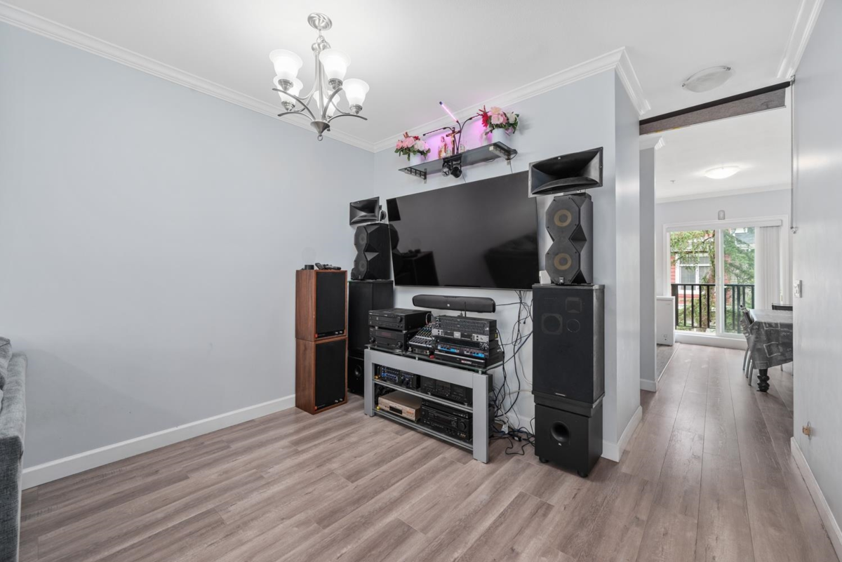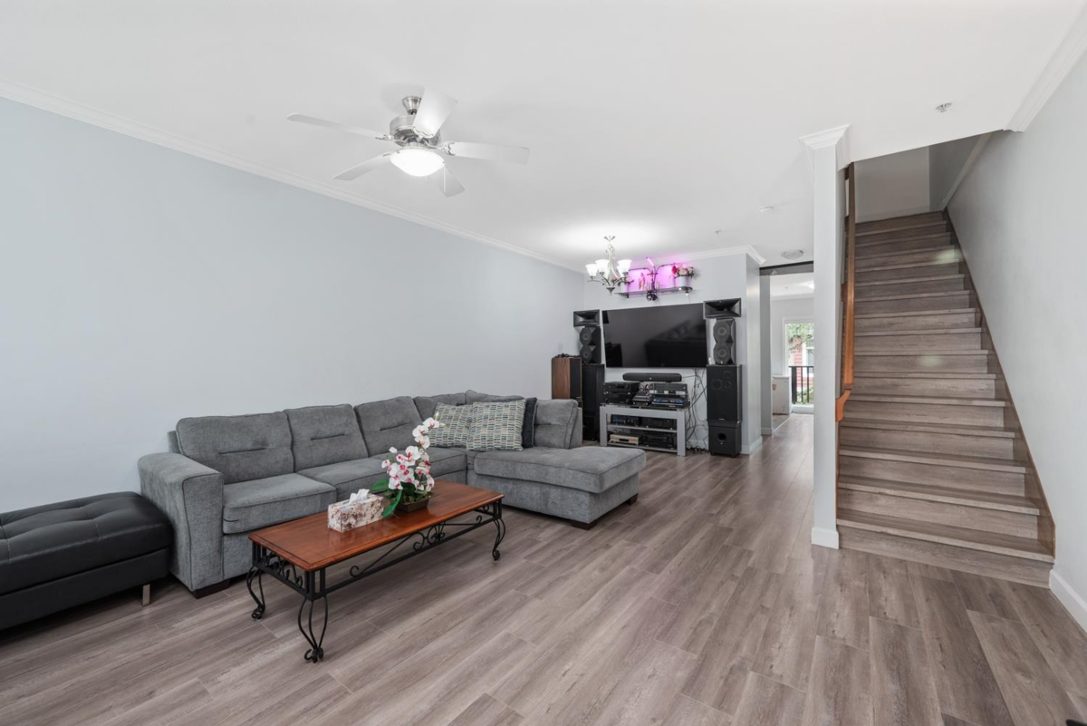 Welcome to Fleetwood, just off Fraser Highway. Bright, south facing, spacious 1677sqft townhouse in Fleetwood Rose Garden, offers 3 bedrooms, 2 and 1/2 bathrooms. Possibility to make 4th bedroom in the basement. Quiet inside unit. This unit was show room, more fine finishing than other units, 8'11" ceiling, cozy fire place, rich laminate floor and crown moulding throughout main warm carpet on bedrooms; maple cabinets, Sakura hood fan, balcony off kitchen; fenced yard, and security system installed. Close to shopping mall, Recreation centre, community centre, library, , Starbucks, restaurants, park, bus and easily access to Skytrain. Frost Road Elementary and North Surrey Secondary at walking distance.