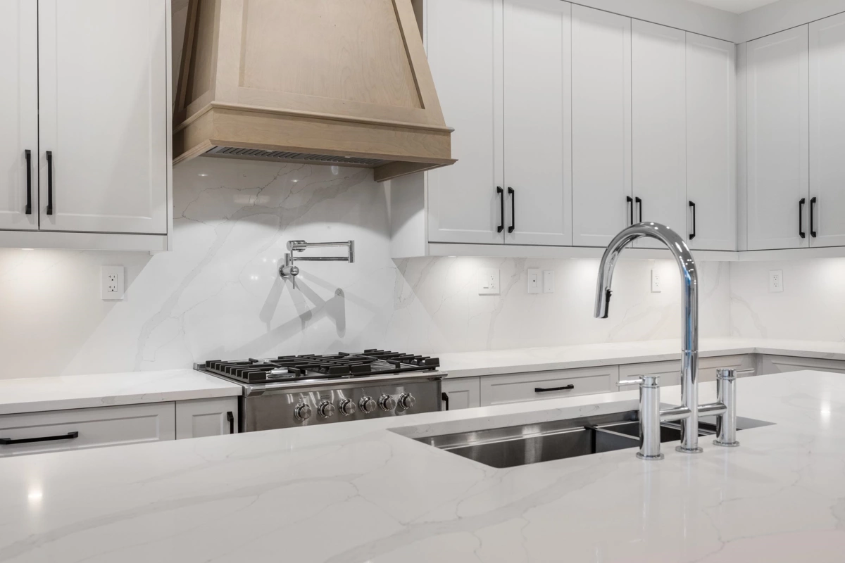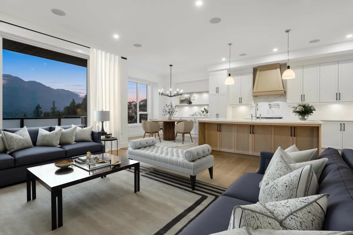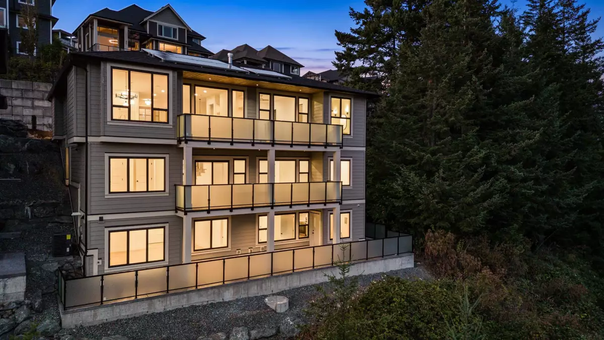 IMPRESSIVE CUSTOM BUILT HOME w/UNOBSTRUCTED VIEWS from all 3 levels! This 5 bdrm, 5 bth executive home features exquisite finishes! Kitchen boasts custom cabinetry, built-in Fisher Paykel appliances, w/panelled fridge & dishwasher. Den, laundry & PRIMARY, also on MAIN, w/large W/I closet, luxurious ensuite w/free standing soaker tub. Over 4000 SQ FT this home offers 4 more bdrms, huge rec room, entertaining space w/custom built in bar (w/dishwasher, mini freezer & ice maker!), bonus space for in-laws or guests & heated bunker under garage w/exterior access! White oak engineered hardwood floors, solid core doors, Italian tile, are just some of the features that take it to the next level. 3 lrge covered patios, quiet no thru street & attractive low maintenance landscaping top this one off!