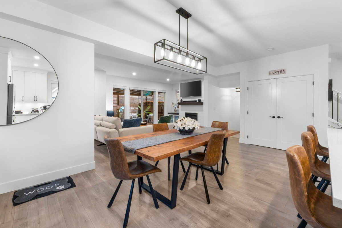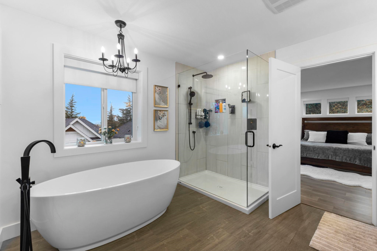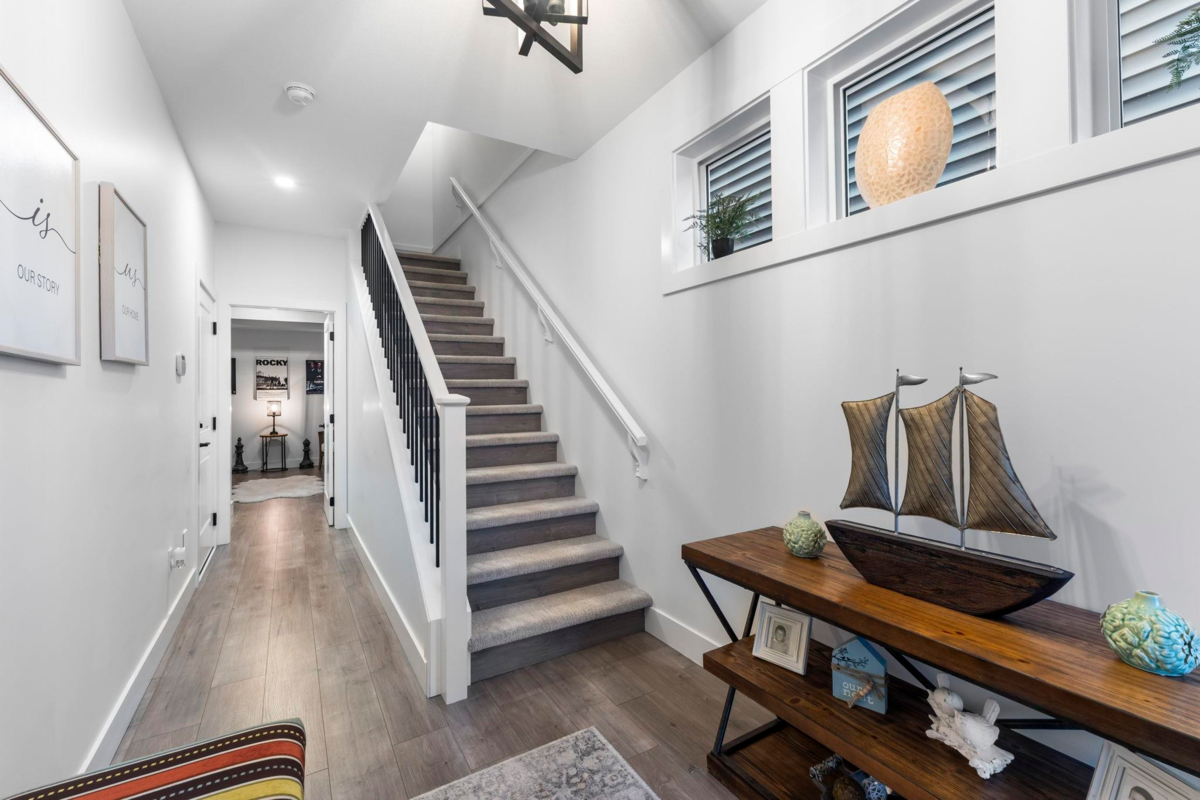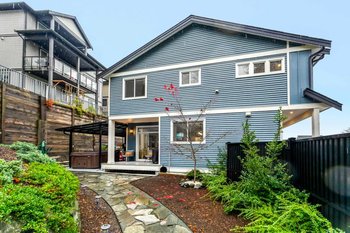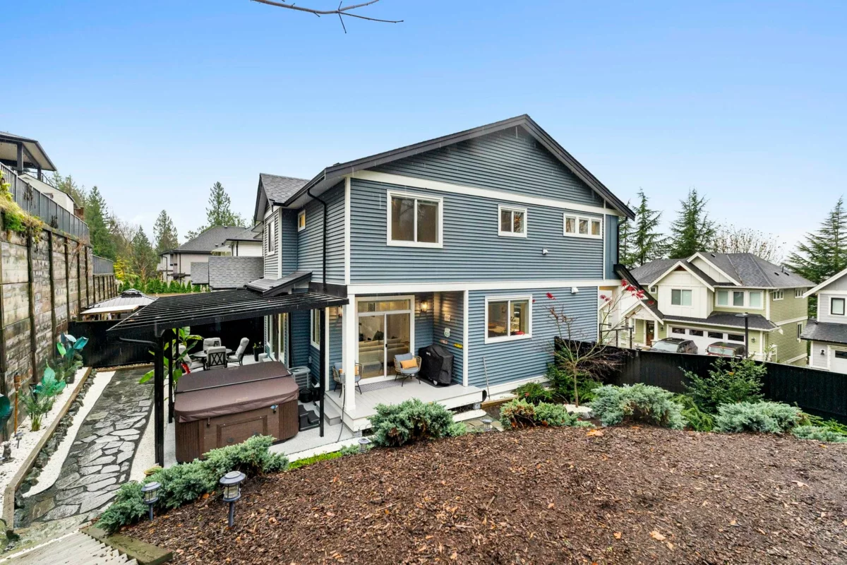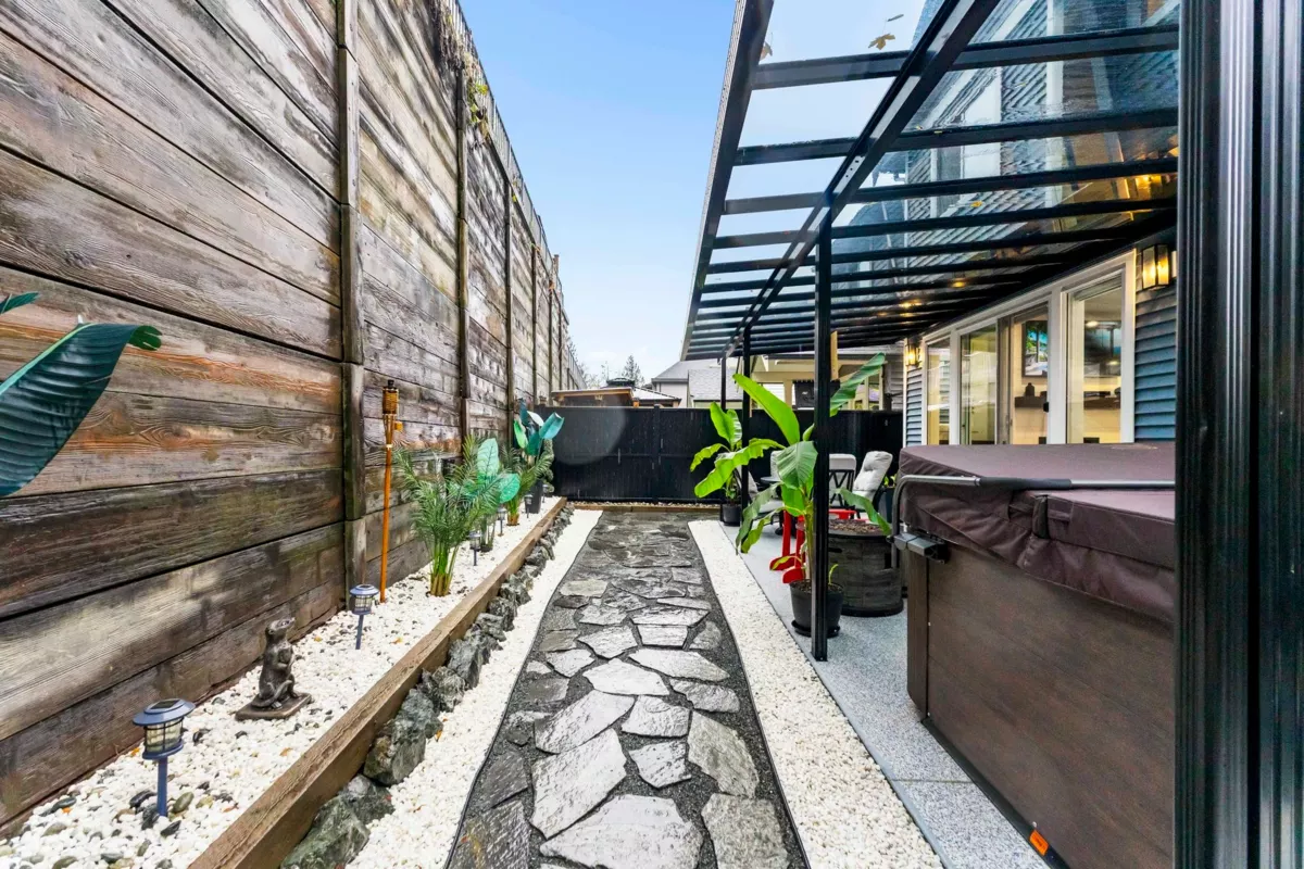A rare offering of elevated luxury in exclusive Sunspring Estates. This custom built 3 bed 3 bath home showcases a grand Vuba Stone driveway, full rock façade, and elite, meticulously designed landscaping. Refined living inside unfolds with high-end appliances, a statement Tuscan navy island, upgraded pantry, black Kohler fixtures, custom cabinetry, premium lighting, and a curated shiplap feature wall. Modern comfort includes hot water on demand, AC with high-efficiency furnace, central vac, and designer shade blinds. The outdoor private dream retreat boasts an oversized steel pergola with sun-proof plexiglass, upgraded deck, rock pathways, and a Coast Spas hot tub all set on an exceptional double lot beside a serene greenbelt. Best location in the complex. Take advantage!!!
