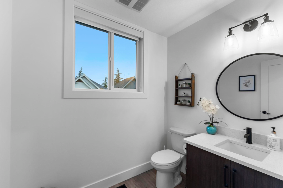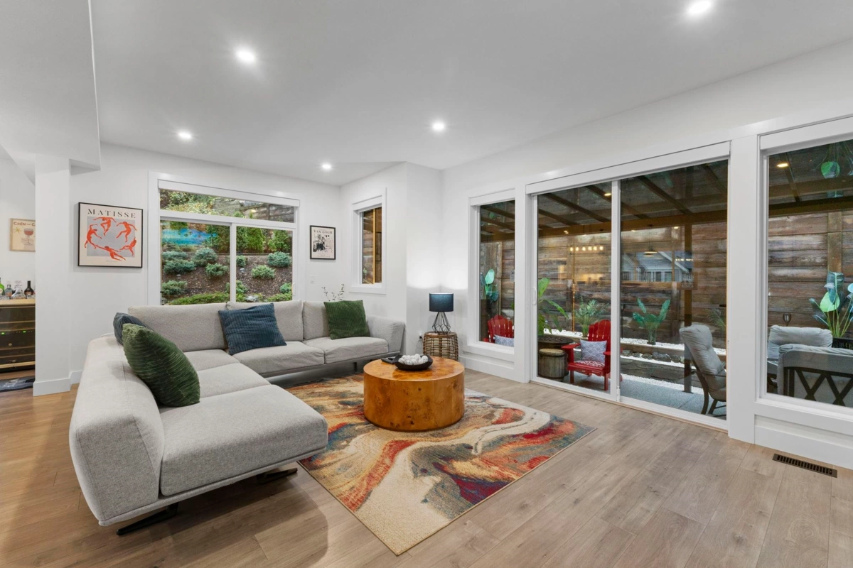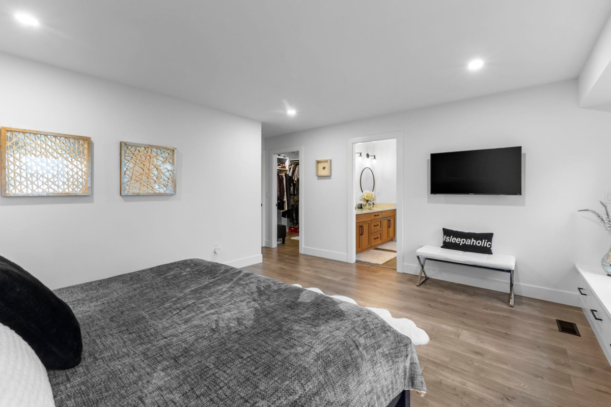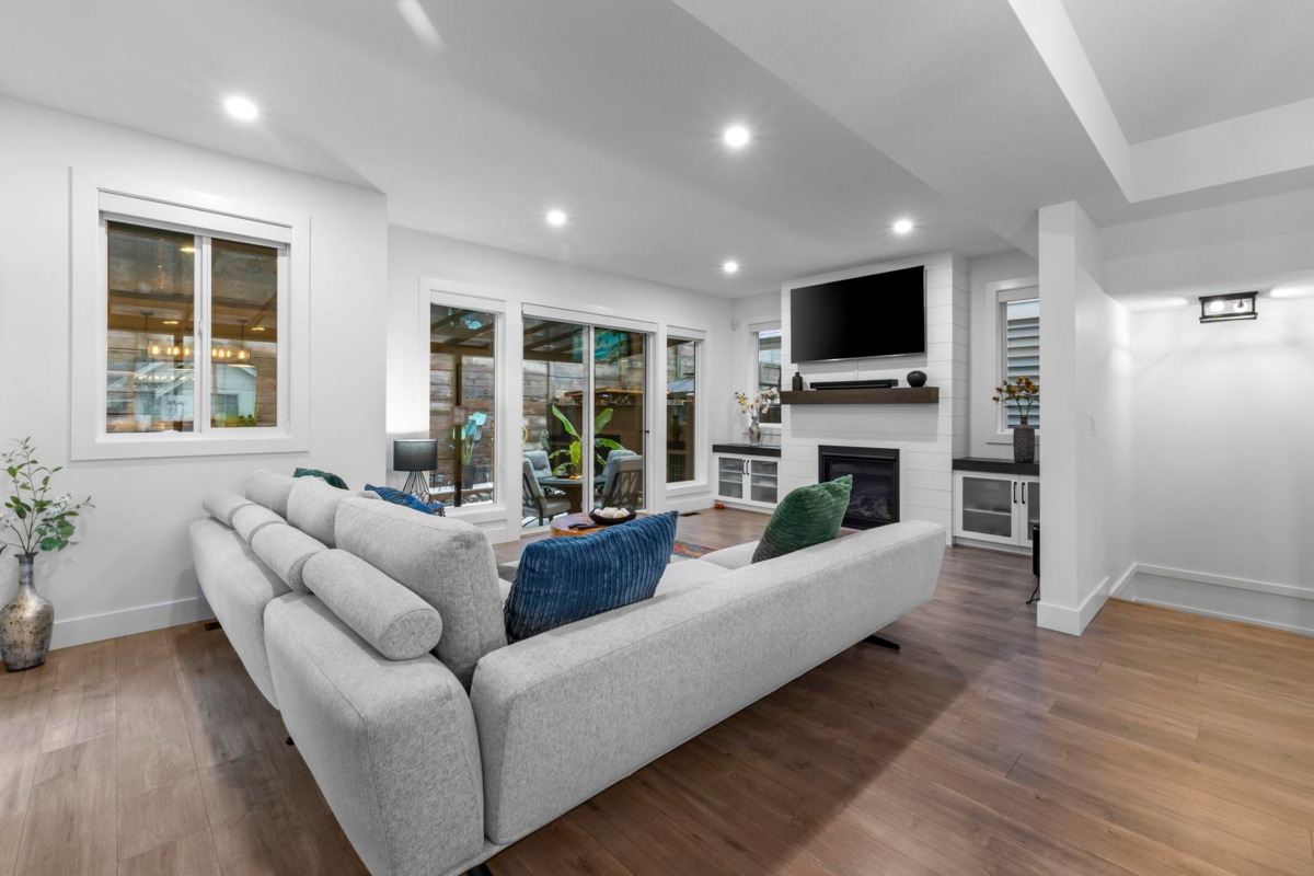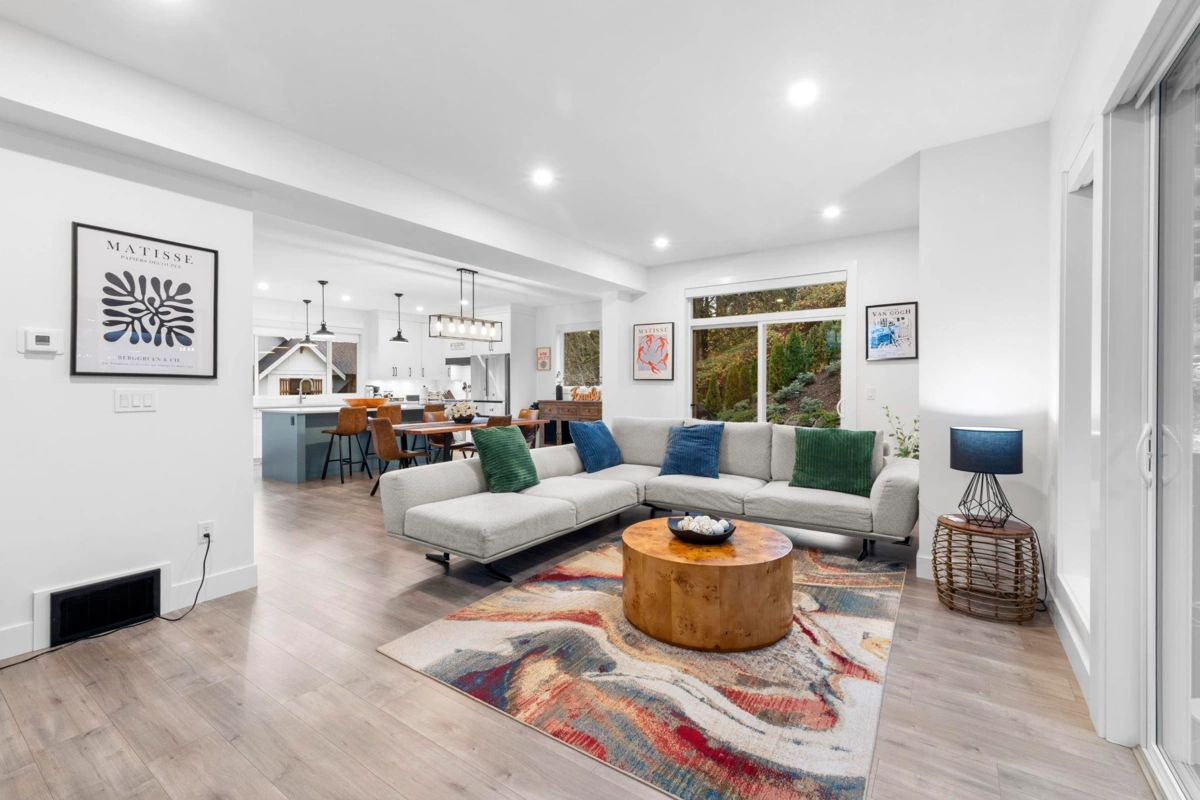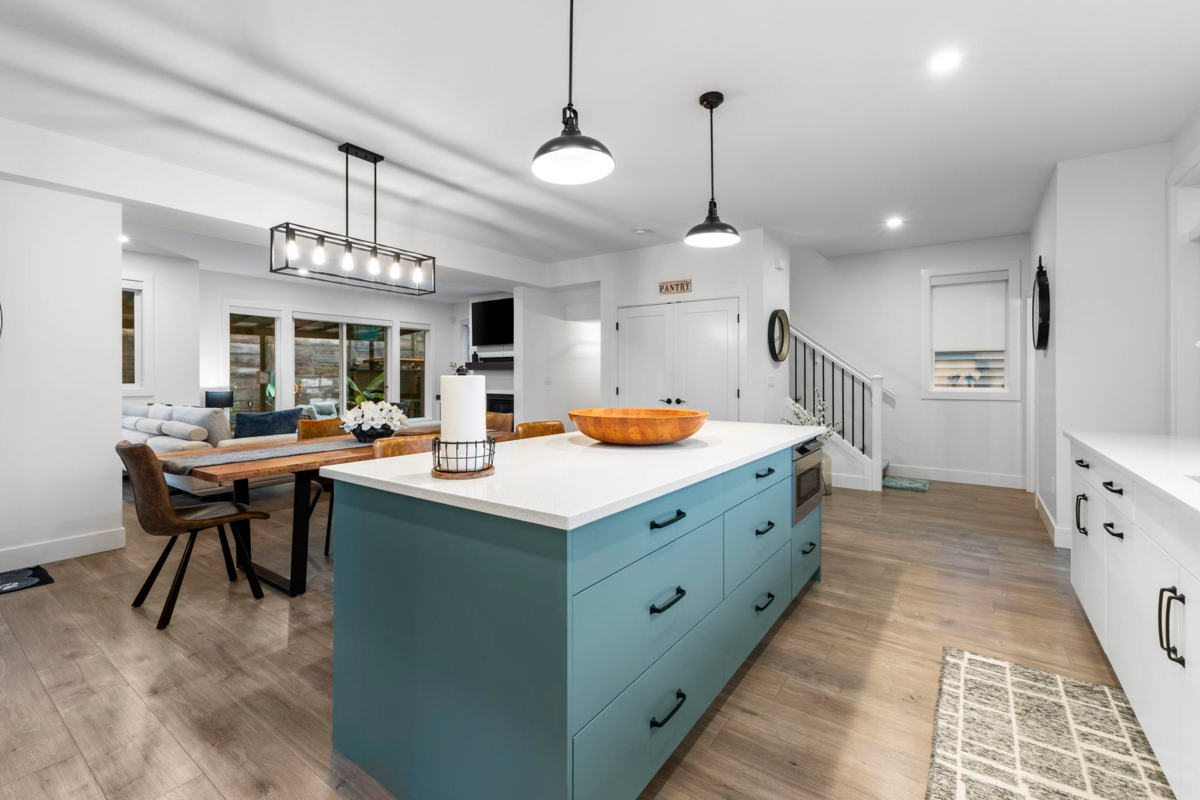 A rare offering of elevated luxury in exclusive Sunspring Estates. This custom built 3 bed 3 bath home showcases a grand Vuba Stone driveway, full rock façade, and elite, meticulously designed landscaping. Refined living inside unfolds with high-end appliances, a statement Tuscan navy island, upgraded pantry, black Kohler fixtures, custom cabinetry, premium lighting, and a curated shiplap feature wall. Modern comfort includes hot water on demand, AC with high-efficiency furnace, central vac, and designer shade blinds. The outdoor private dream retreat boasts an oversized steel pergola with sun-proof plexiglass, upgraded deck, rock pathways, and a Coast Spas hot tub all set on an exceptional double lot beside a serene greenbelt. Best location in the complex. Take advantage!!!