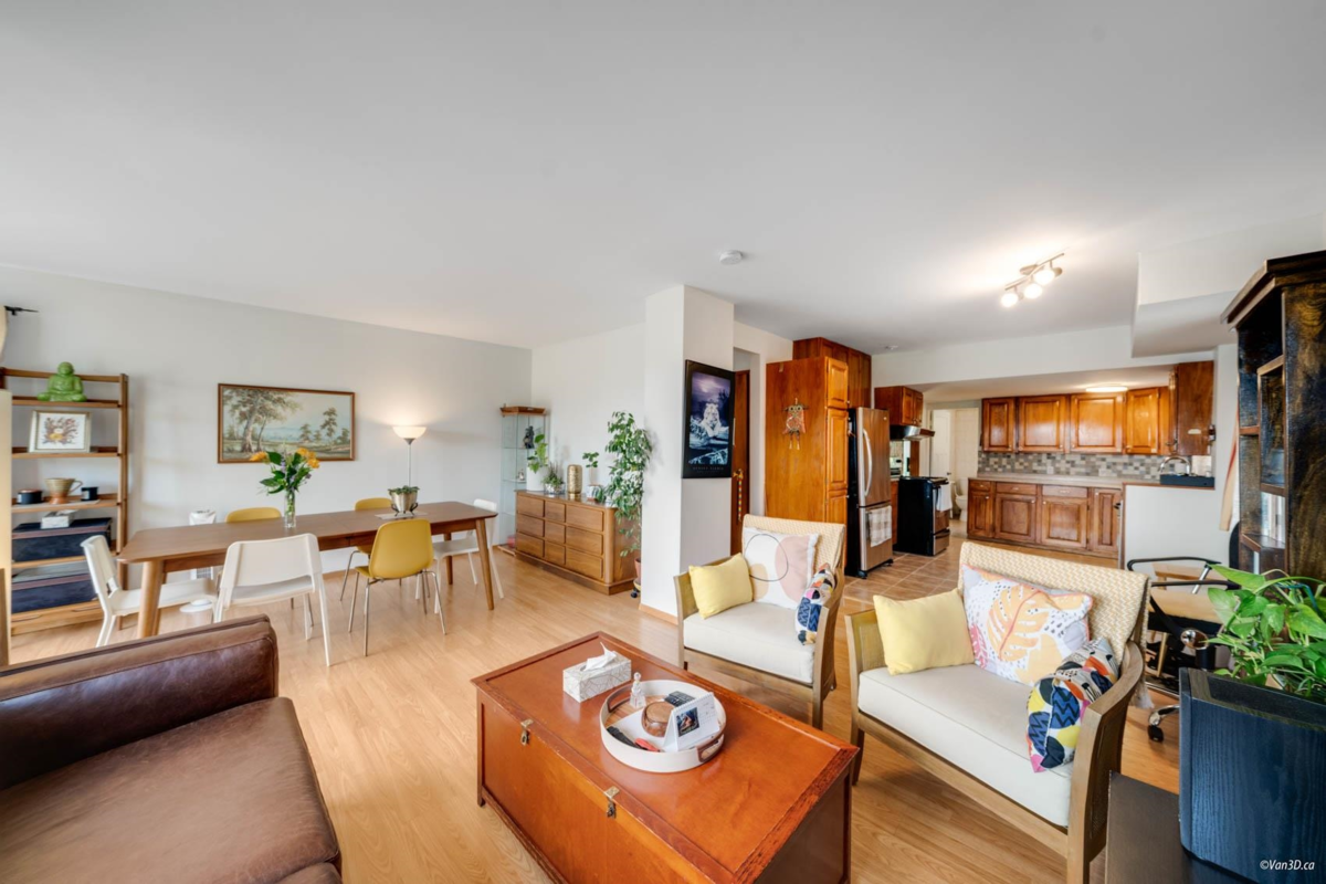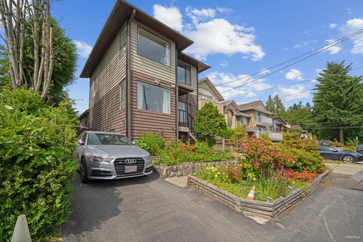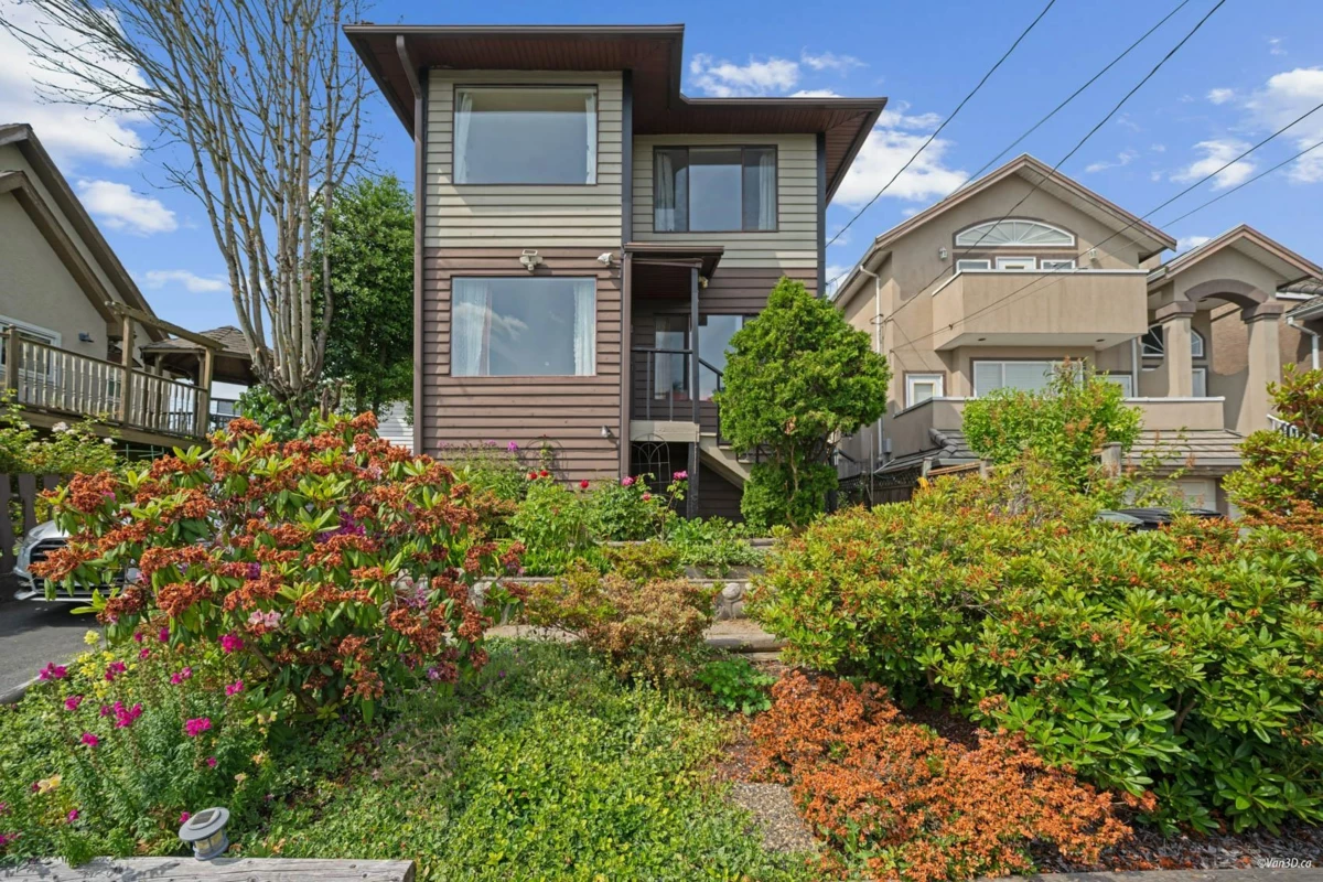 Well-priced, clean, and well-kept 3-bedroom, 2-bath family home in South Slope! Features a newer kitchen with oak cabinets, stainless steel fridge/stove/dishwasher, and hood fan. Newer washer and dryer. Updated 4-piece bathroom on the main floor. The top floor boasts a spacious, newer 3-piece bathroom with skylight, and two bedrooms with panoramic views of Mt. Baker and Richmond. Older double-pane windows. Laminate and tile flooring throughout. No rear lane—adds extra security. Landscaped front and backyard with champagne grapes. Cedar siding. Cozy, dry unfinished basement with included freezer. Furnace replaced 2012.