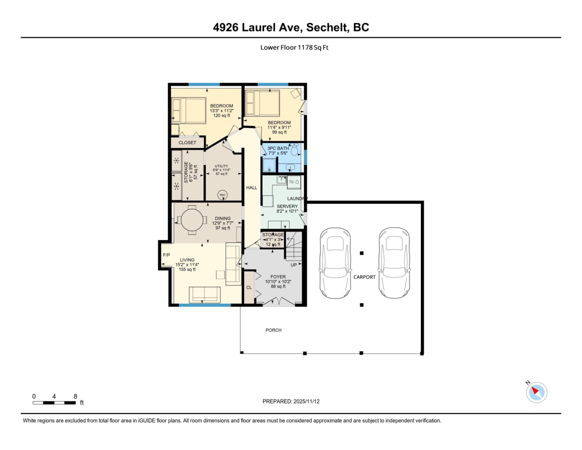 | Main Level | Bedroom | 12'10 x 12'10 ft |