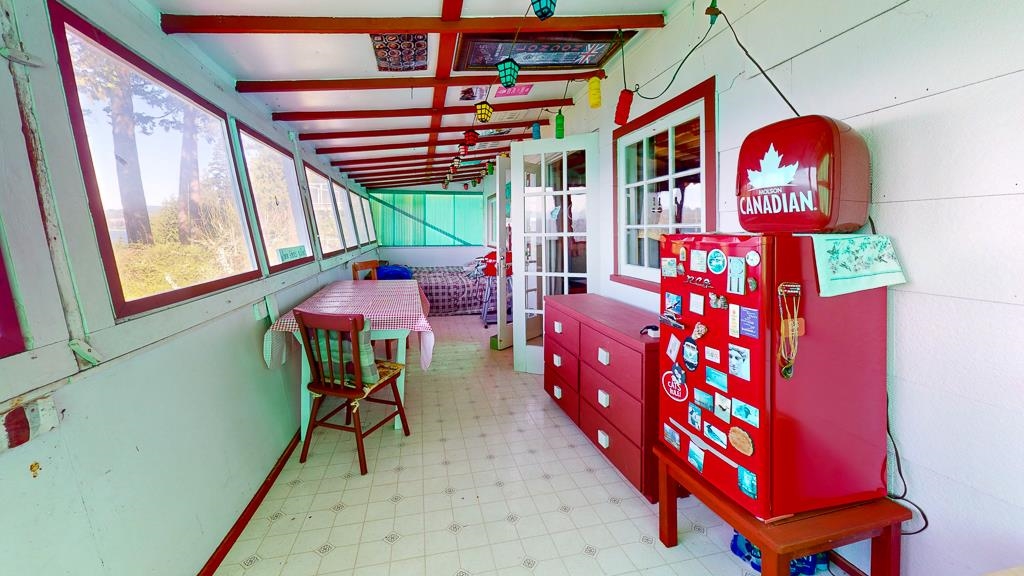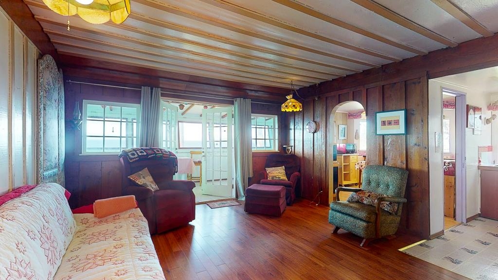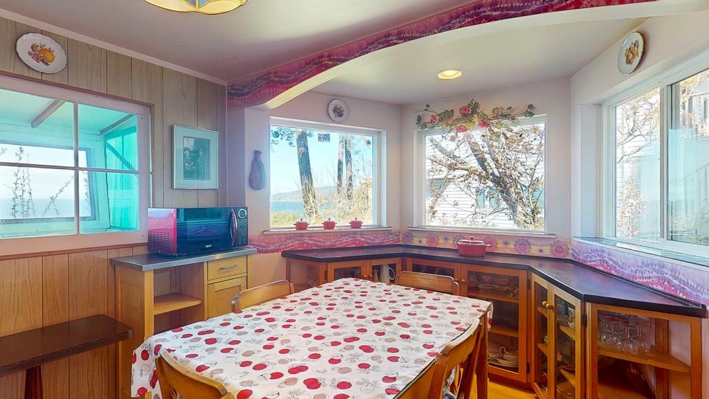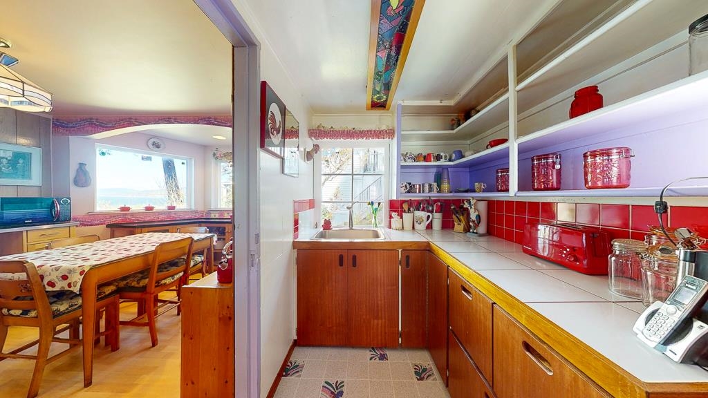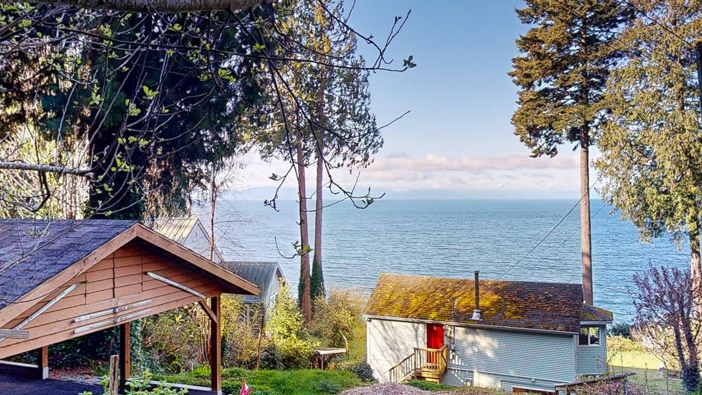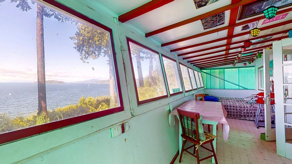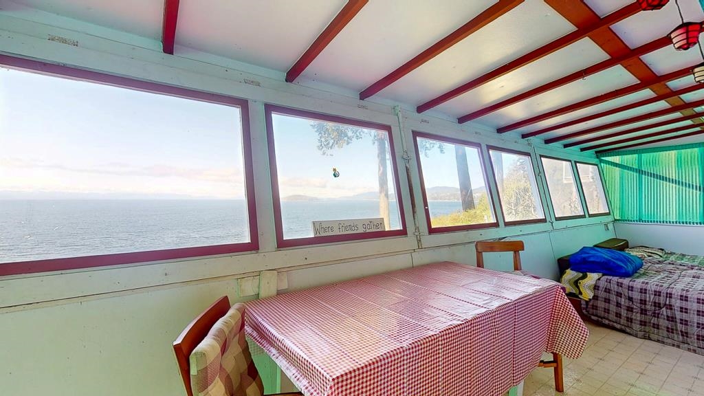 CHARMING WATERFRONT HOME! This adorable 2 level sits on over a ½ acre of high bank oceanfront & boasts unobstructed panoramic views. Enjoy a superb central location between Davis Bay & Sechelt & soak in all day long sunshine! Own a piece of Sunshine Coast history, as this cozy character home is one of the last remaining Union Steamship cabins which was lifted up to make it a 2bed/1bath/1den. Open the French doors to an additional 230 sq’ of enclosed decking for pure ocean viewing & extra summer living space. Two living rooms with modern gas and wood fireplaces plus hot water on demand adds warmth and comfort to this unique gem. Enjoy BBQ’ing on the outdoor deck & lawn while taking in the ocean breeze.