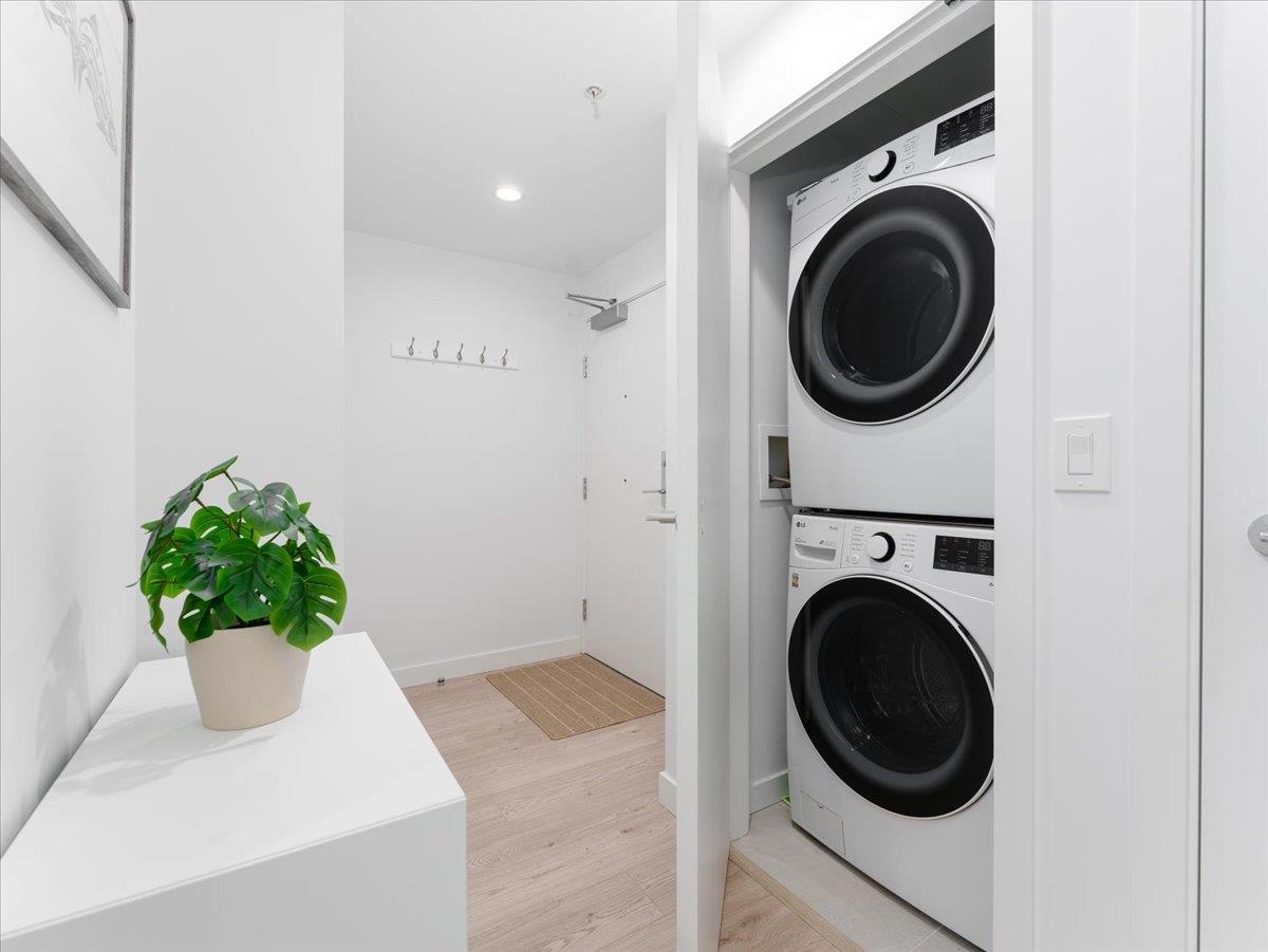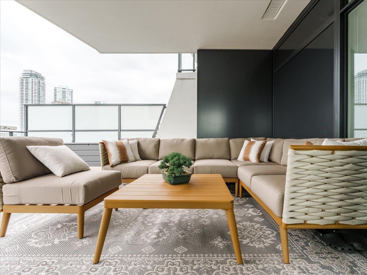 Rare patio home at Akimbo in Brentwood! This 2 bed, 2 bath corner unit features no shared bedroom walls, 9’ ceilings, floor-to-ceiling windows, air conditioning, and a massive 603 sq. ft. west-facing wraparound patio overlooking green space—perfect for outdoor living and entertaining. The sleek kitchen includes quartz countertops, a gas cooktop, and integrated appliances. Both bedrooms are well-separated for added privacy. Includes 1 parking and 1 storage locker. Akimbo offers premium amenities including 24/7 concierge, fully equipped fitness centre, party lounge, guest suite, garden, and rooftop BBQ area. Unbeatable location steps to Gilmore SkyTrain, The Amazing Brentwood, Whole Foods, shops, parks, and restaurants. Pet and rental friendly. OPEN HOUSE SAT NOV 29th 3pm-5pm
