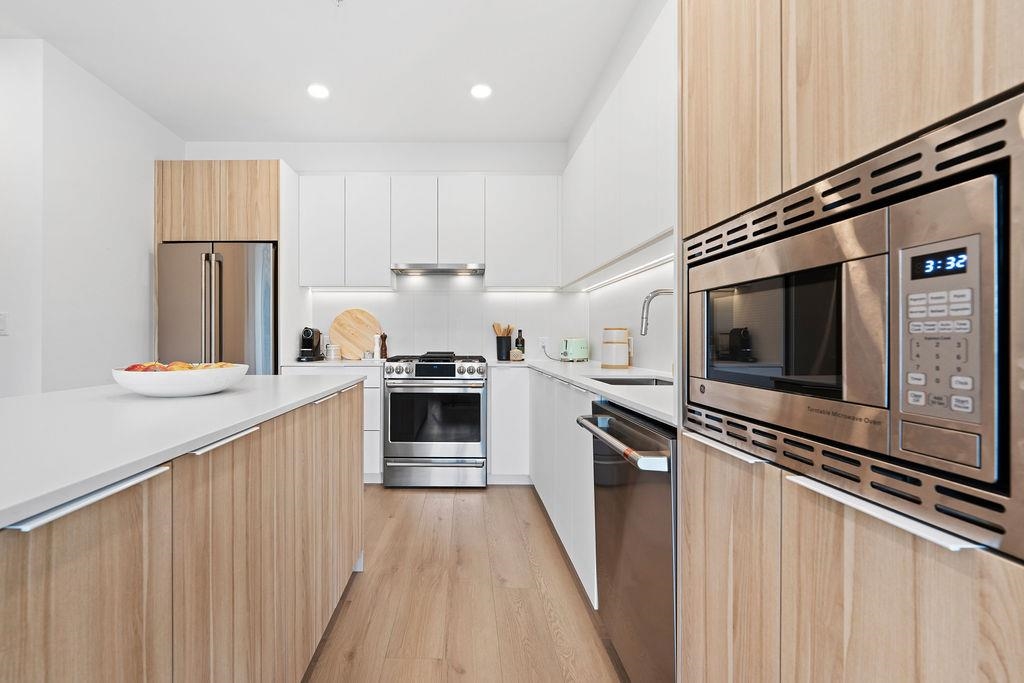 OVER 1870 SF of indoor-outdoor living awaits you with this sub-penthouse at Grafia by Porte! This NW corner home w/stunning MOUNTAIN & city views features 3 bedrooms, large den PLUS flex, air conditioning, wide-plank laminate floors, full-size S/S appliances, EV parking - & the definition of indoor/outdoor living! Designed by award-winning BYU, your home at Grafia is located in one of East Van's most coveted pockets - a 10 minute walk to skytrain, Commercial Drive w/ all of its restos & retail, minutes to great schools, trails, & parks including scenic Trout Lake! Amenities incl. social lounge, garden & rooftop terrace, gym, dog wash station & more. This is truly a one of a kind home w/space for the entire family - with the convenience of one-level living! Book your showing today!