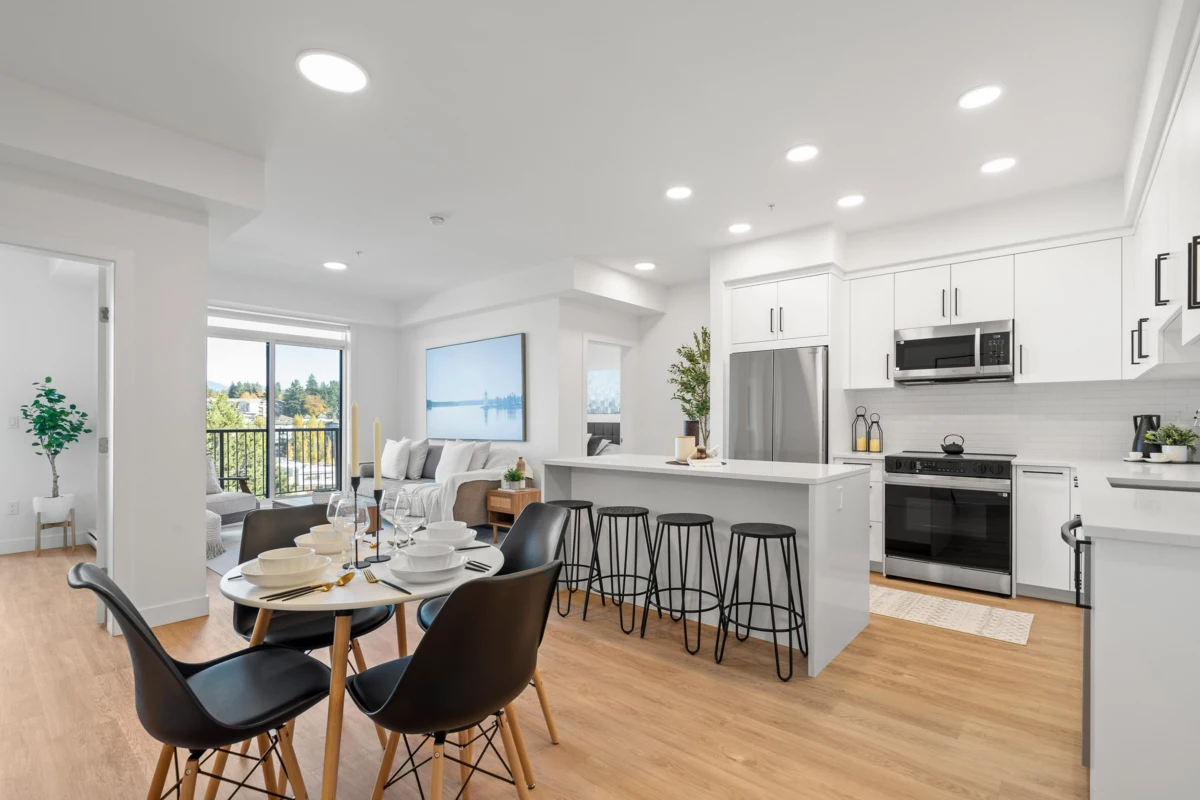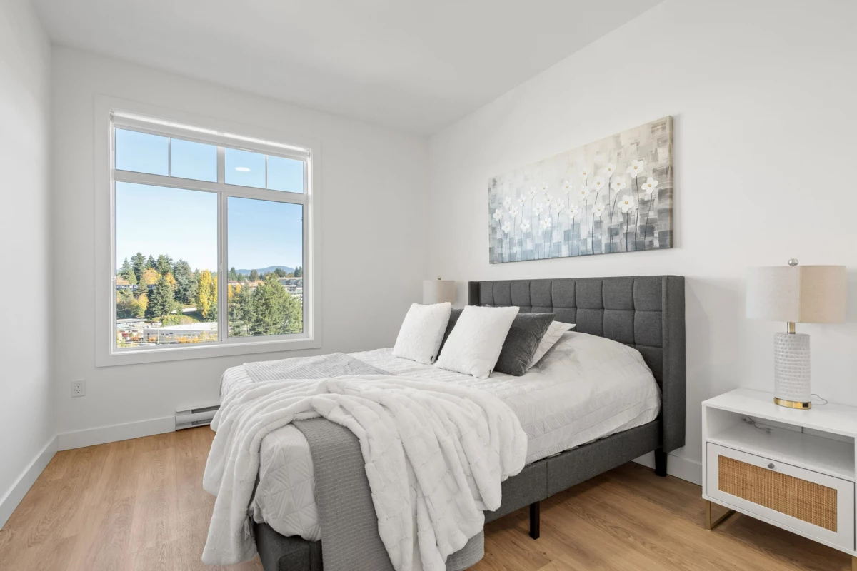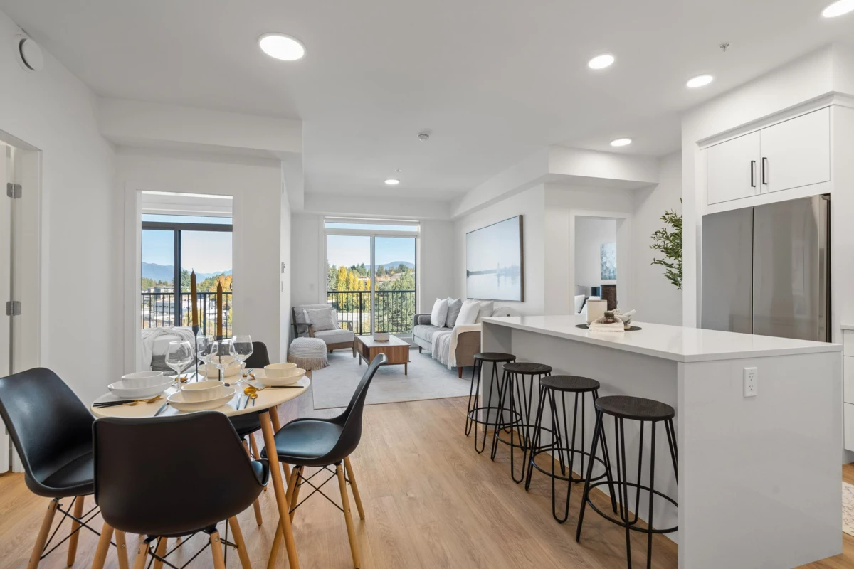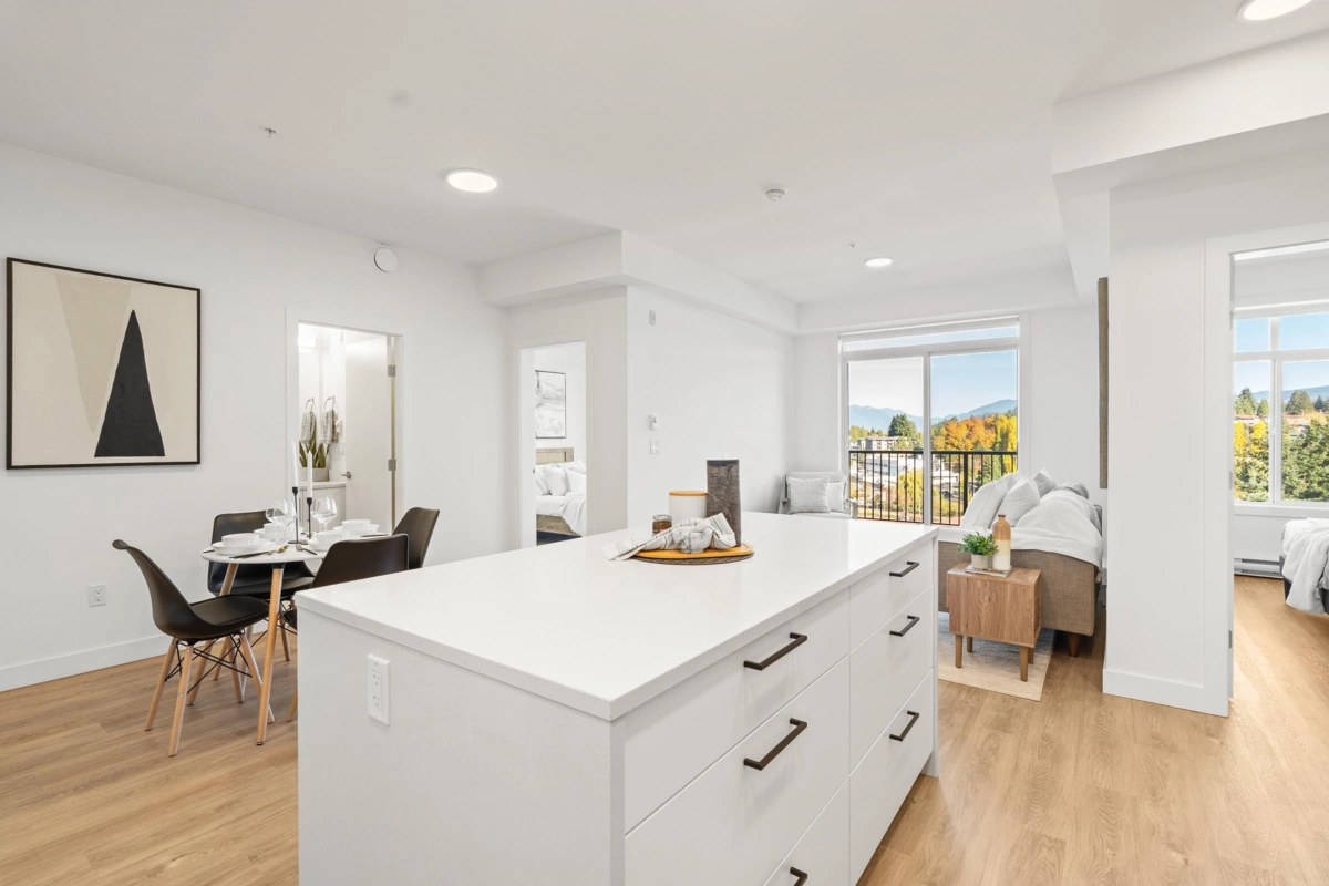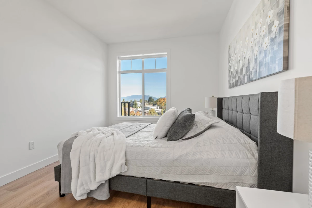 Brand new, move-in ready top floor living at Montvue! Enjoy sweeping views of the Mission Mountains from your large balcony, with access from both the living space and one of the bedrooms. This bright, open layout showcases a massive kitchen with an oversized island — perfect for cooking, entertaining, or gathering with friends. The ensuite features double sinks and a frameless glass walk-in shower, blending function and luxury. Located in Historic Downtown Abbotsford, you’ll be surrounded by walkable amenities and local charm.