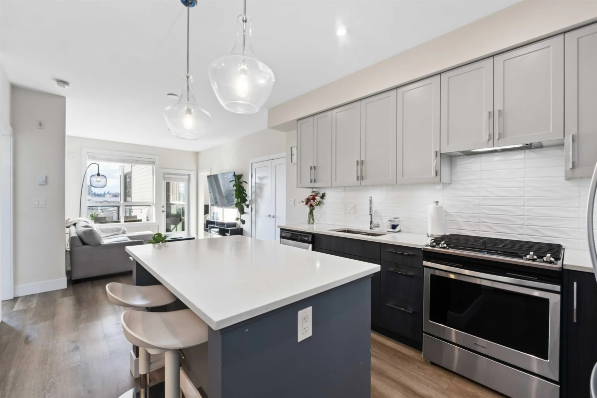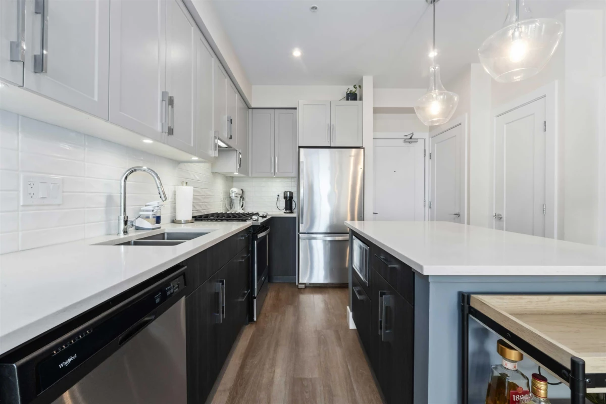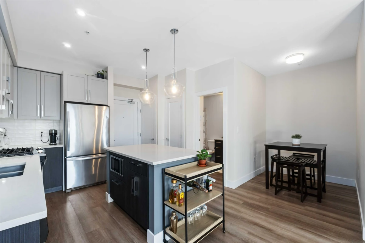 Welcome to Ventura – where modern living meets convenience! This stunning corner unit offers a spacious layout and southwest exposure, filling your home with natural light. Step onto your 10' x 9'5" patio, perfect for enjoying courtyard and city views. The sleek kitchen boasts modern finishes, a gas range stove, and an open-concept design ideal for entertaining. Enjoy fantastic amenities, including a gym, dog wash station, bike room, party room, and a large grass area with and outdoor covered BBQs. Located in the heart of Abbotsford, you're just minutes from transit, shopping, dining, and recreation. Don’t miss this opportunity—call to schedule your showing today!