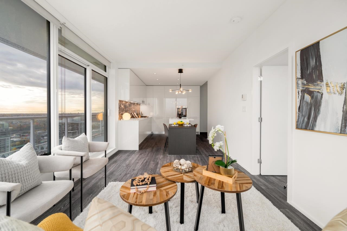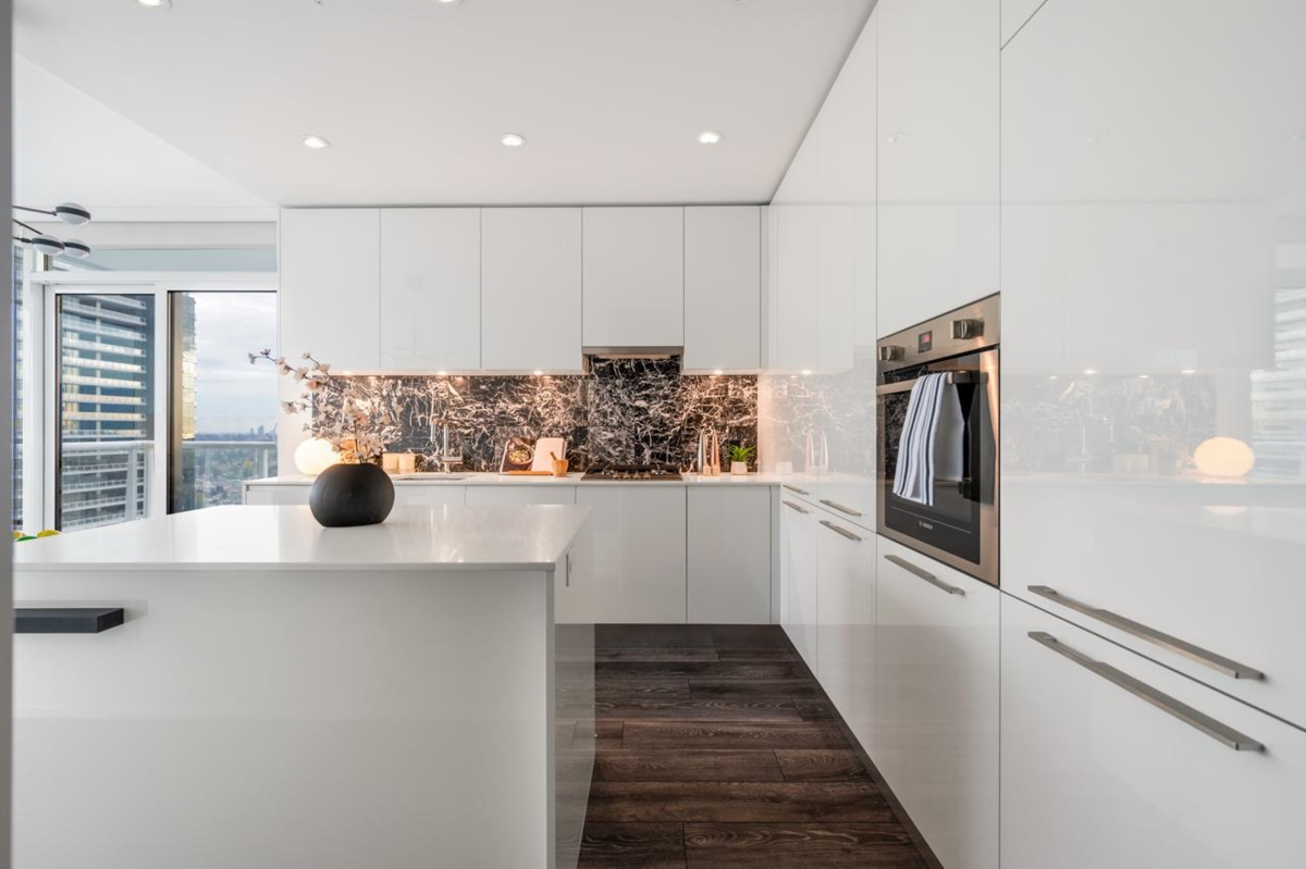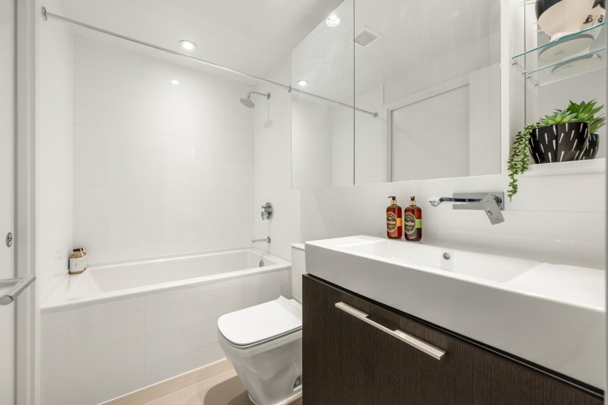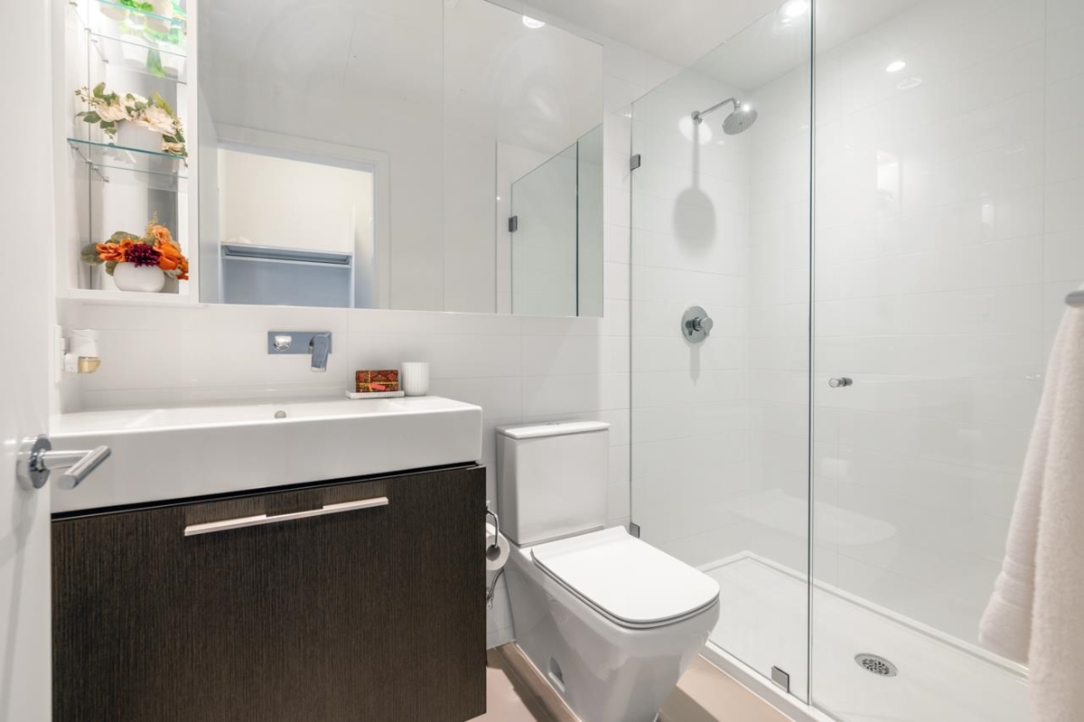 IMMACULATE CONDITION - SHOWS JUST LIKE NEW! Bright SE CORNER 2BED 2 FULL ENSUITE BATH + DEN home with breathtaking city & mountain views from every room. Modern kitchen with plenty of cabinets, quality integrated appliances, gas cooktop & large island with built-in dining and office nook. Flooded with natural light plus over 160 sqft covered balcony. Includes 1 parking & 1 storage. Resort-style amenities: 2 guest suites, business center, games room, private kitchen, huge gym, outdoor terrace & concierge. Direct access to mall, SkyTrain, Cineplex & dining—no need to step outside! Fantastic value & prime Brentwood location.
