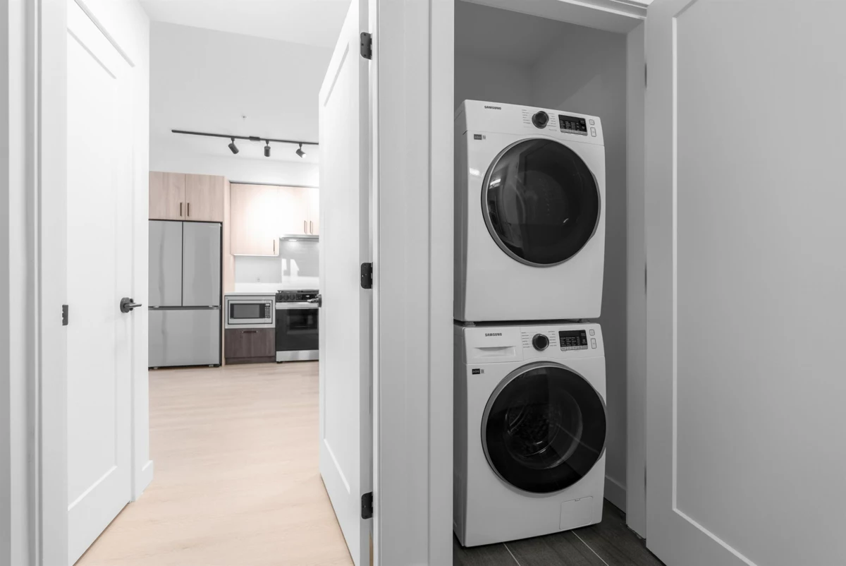 Welcome to ANCHOR by BOLD Properties, a modern 2 beds & 2 baths home in the heart of Port Moody, just steps to shops, SkyTrain, and outdoor adventure. This bright condo features soaring 9’ ceilings, spa-inspired bathrooms with quartz countertops, and a sleek SAMSUNG WiFi-enabled appliance package with SmartCare Technology. Entertain on your massive 128 sf balcony with water and mountain views. Includes 1 EV pre-wired parking stall and storage locker. Amenities: rooftop BBQ & lounging with Burrard Inlet views, fitness centre, lounge, bike repair room, and dog wash. Open house sun Nov 23 2-4